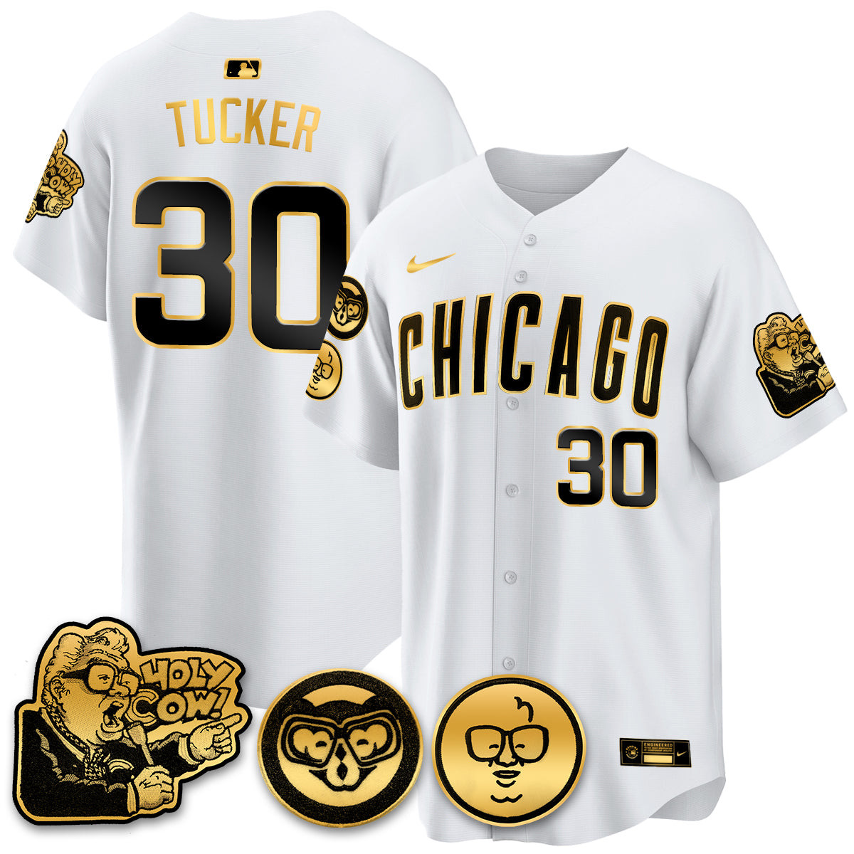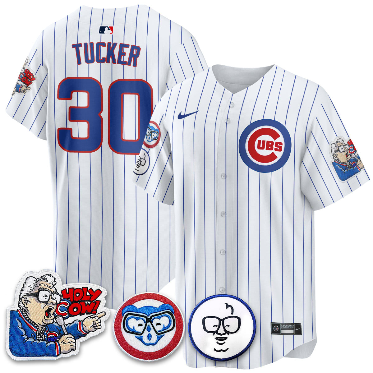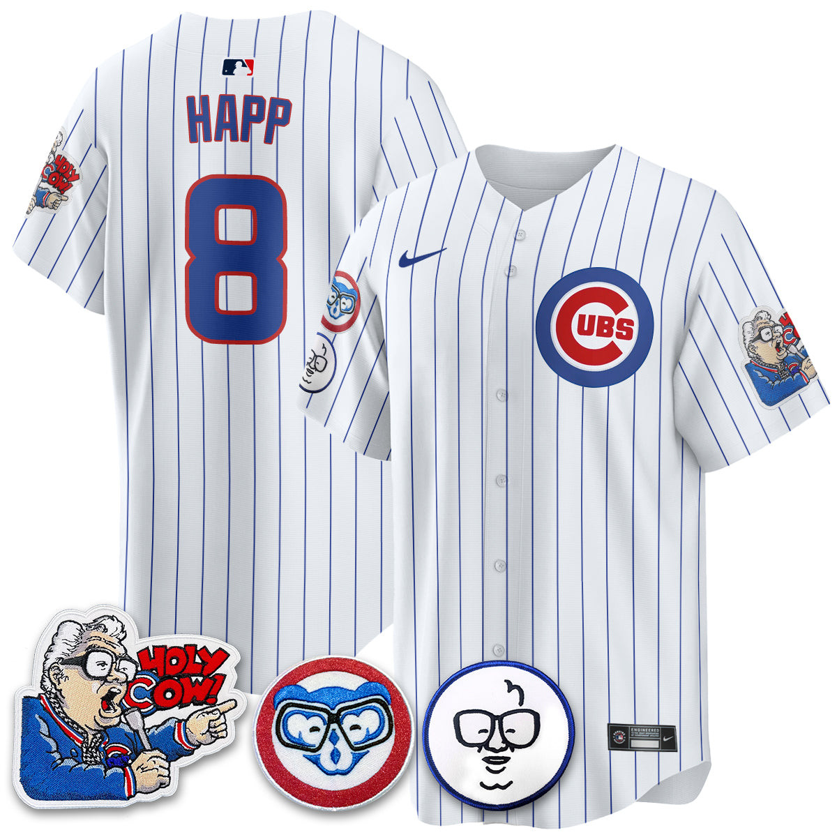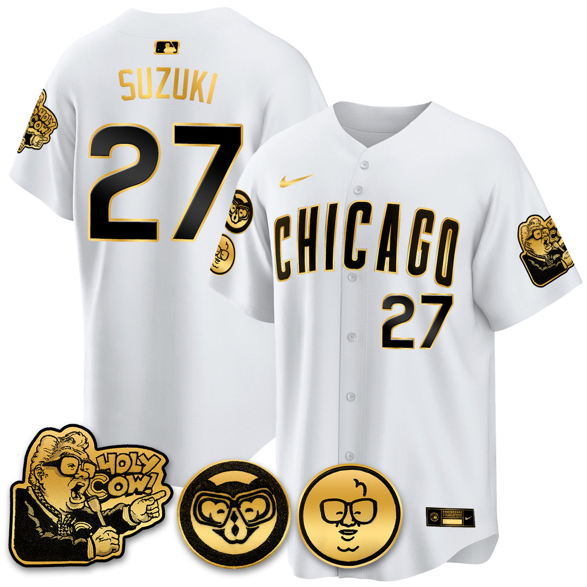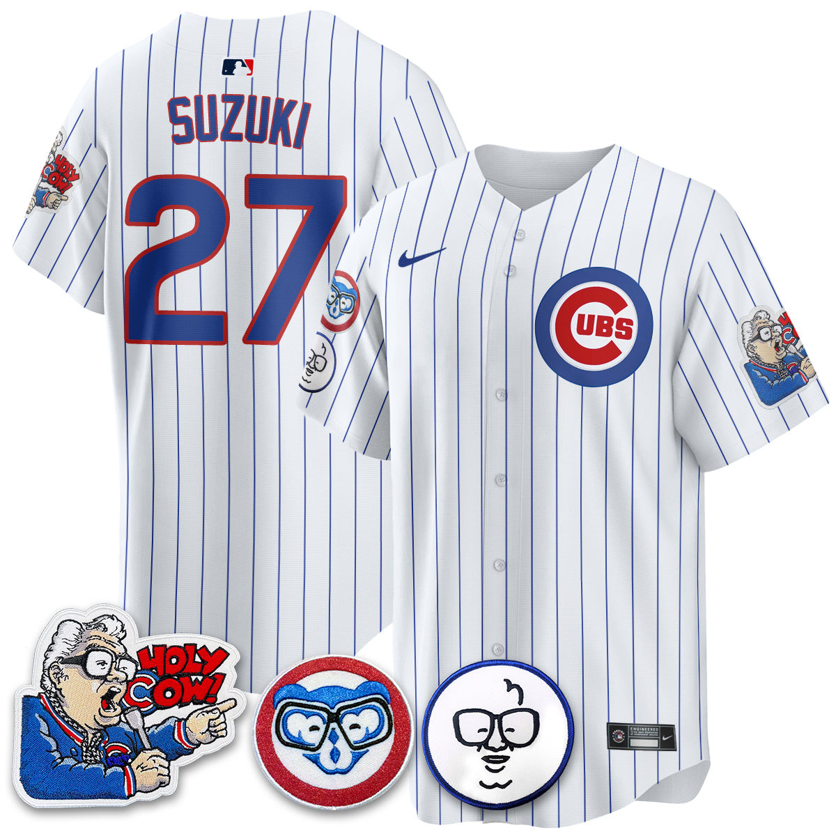 Men’s Chicago Cubs Harry Caray Holy Cow Patch Premier Limited Jersey – All Stitched