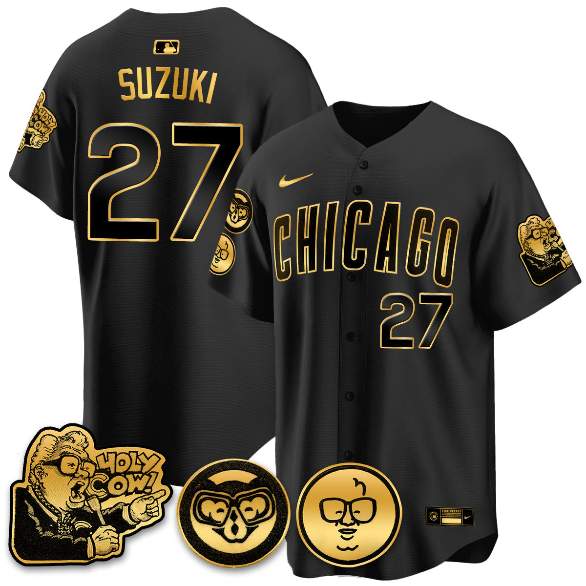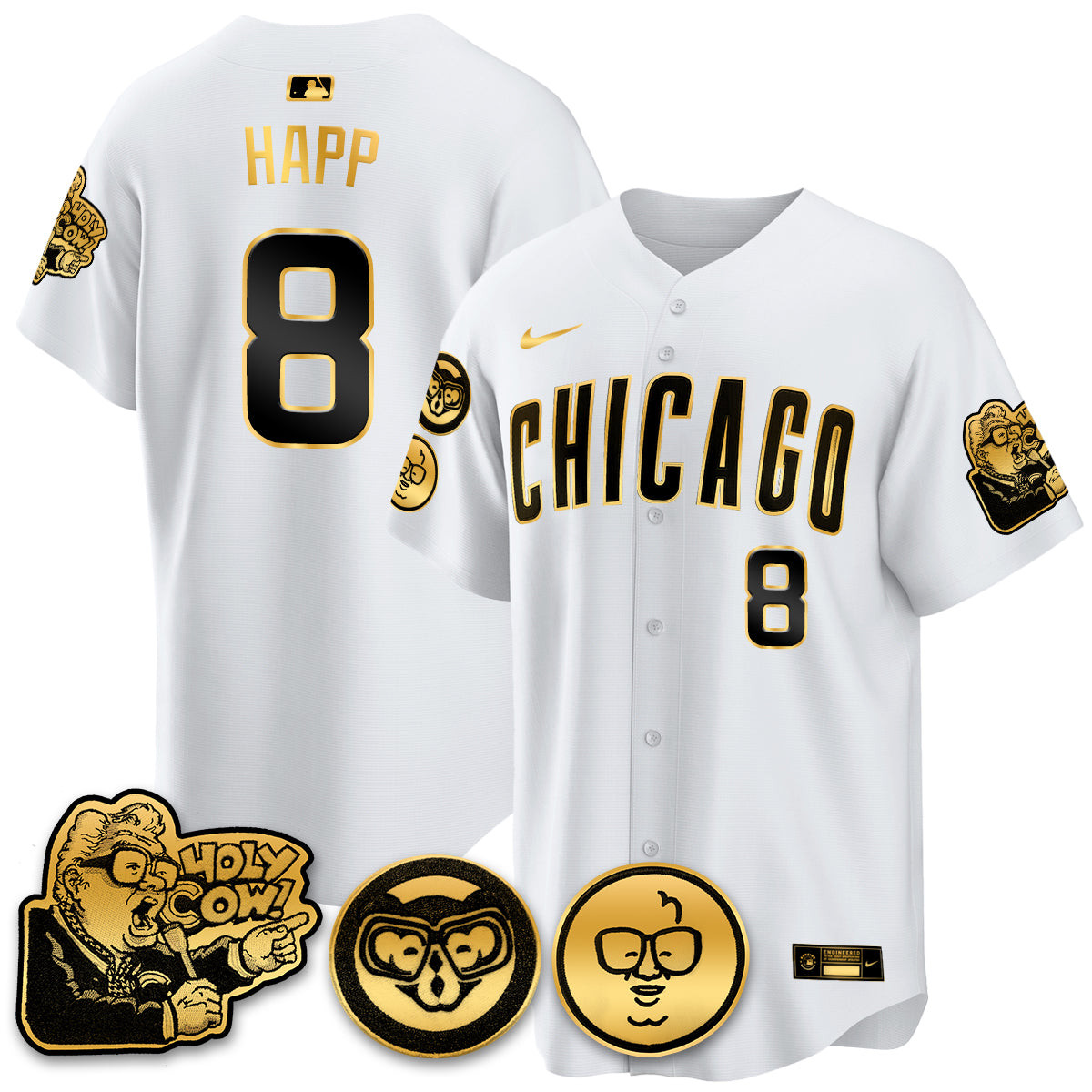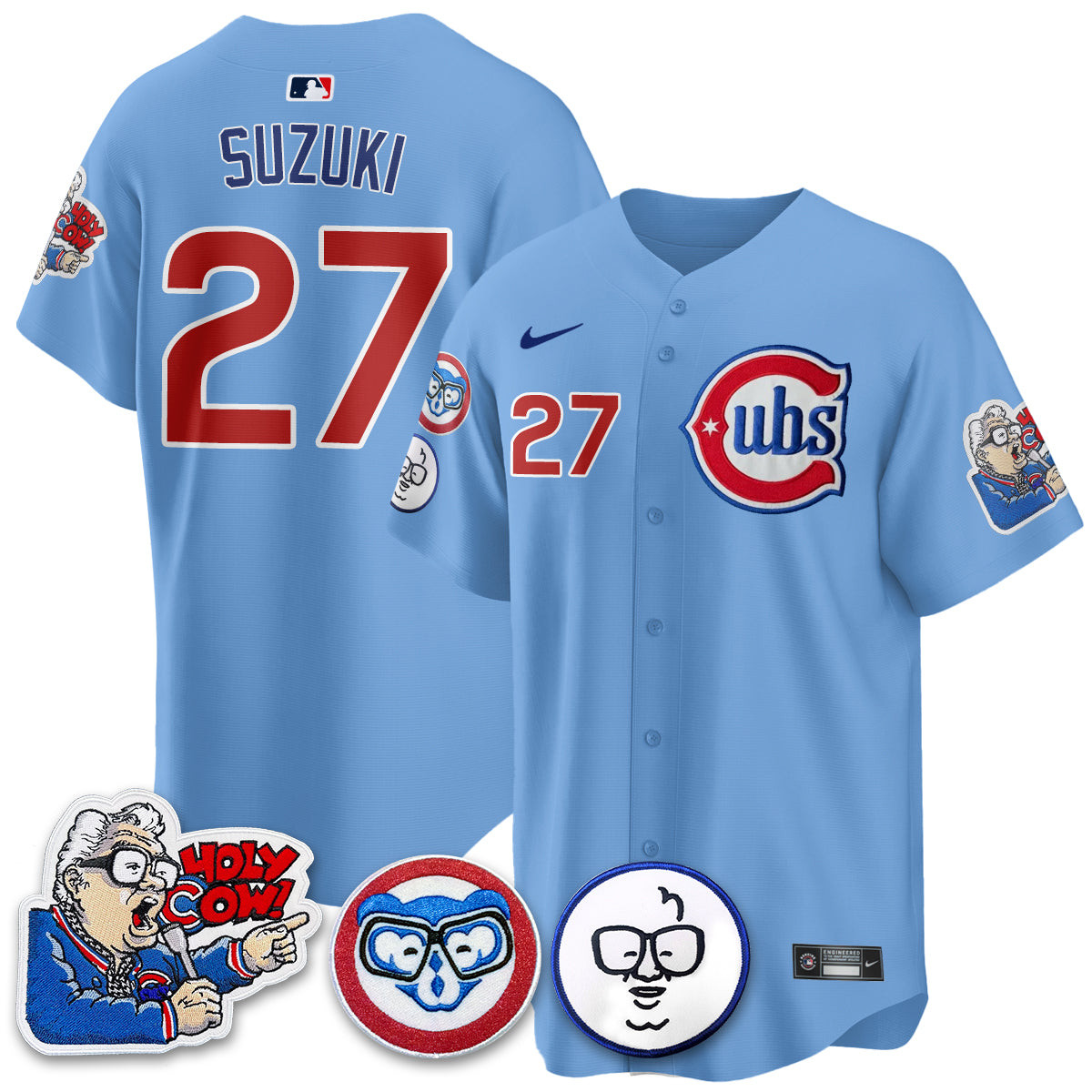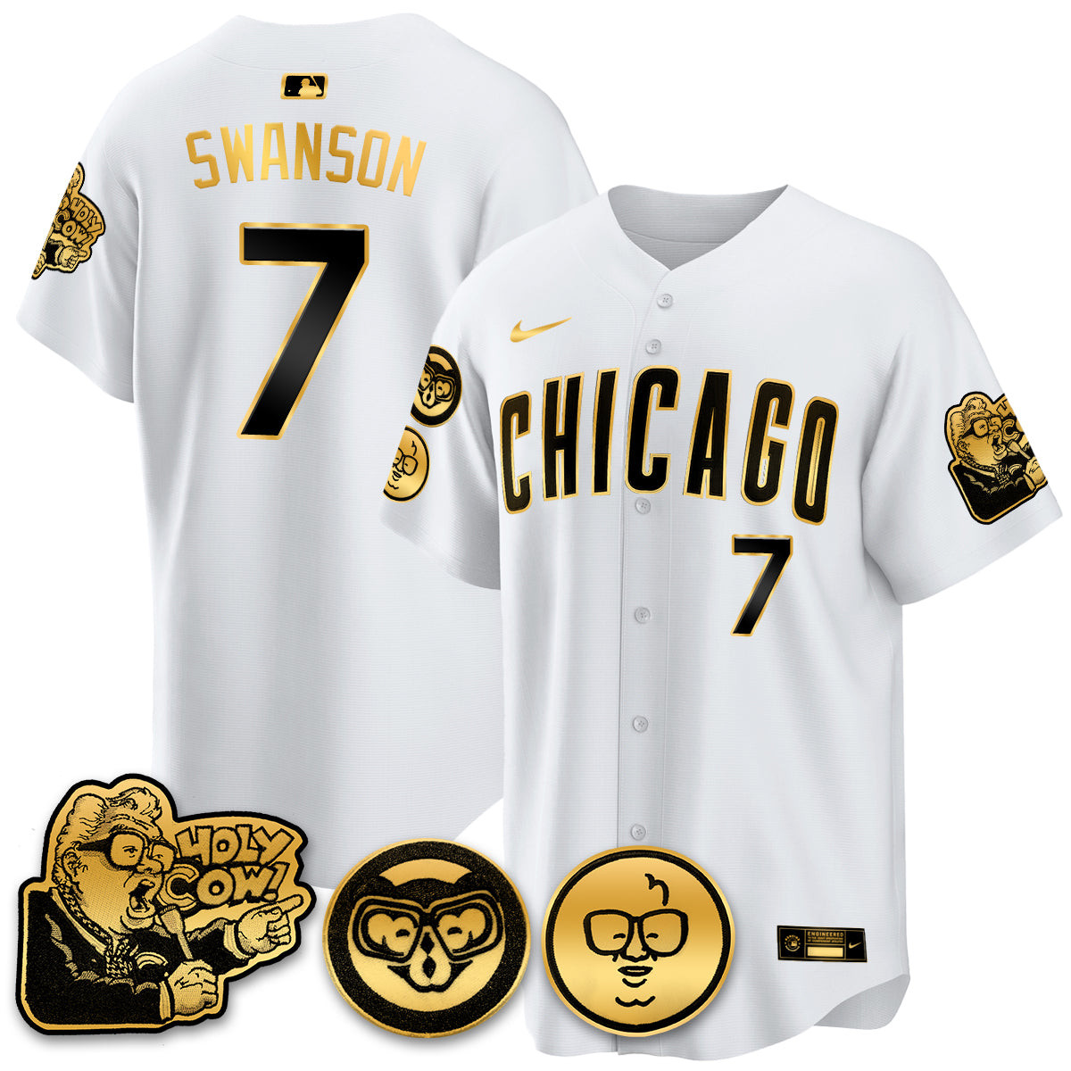 Men’s Chicago Cubs Harry Caray Holy Cow Patch Premier Limited Jersey – All Stitched
