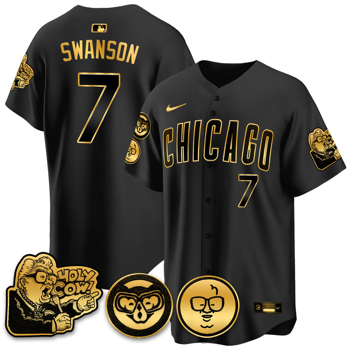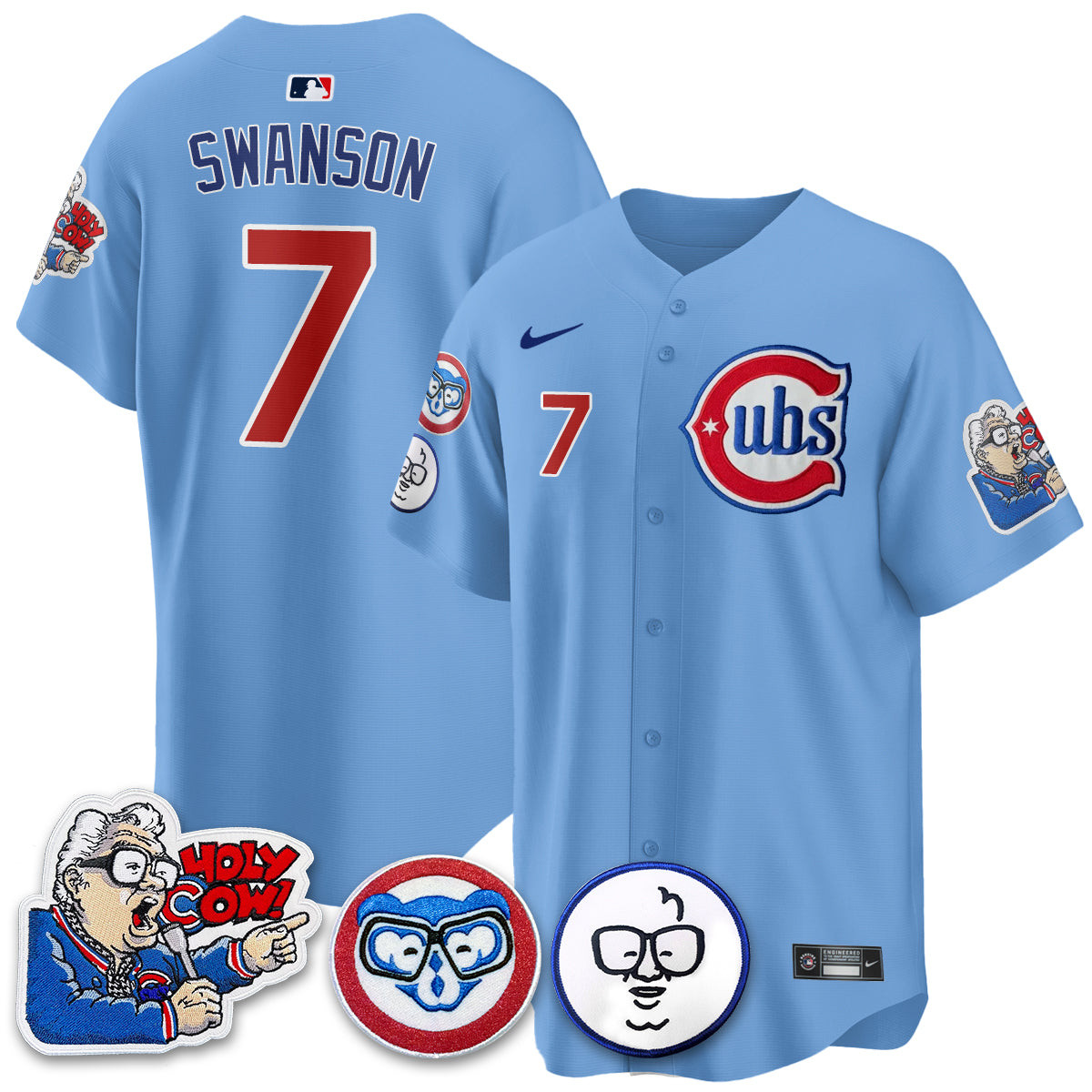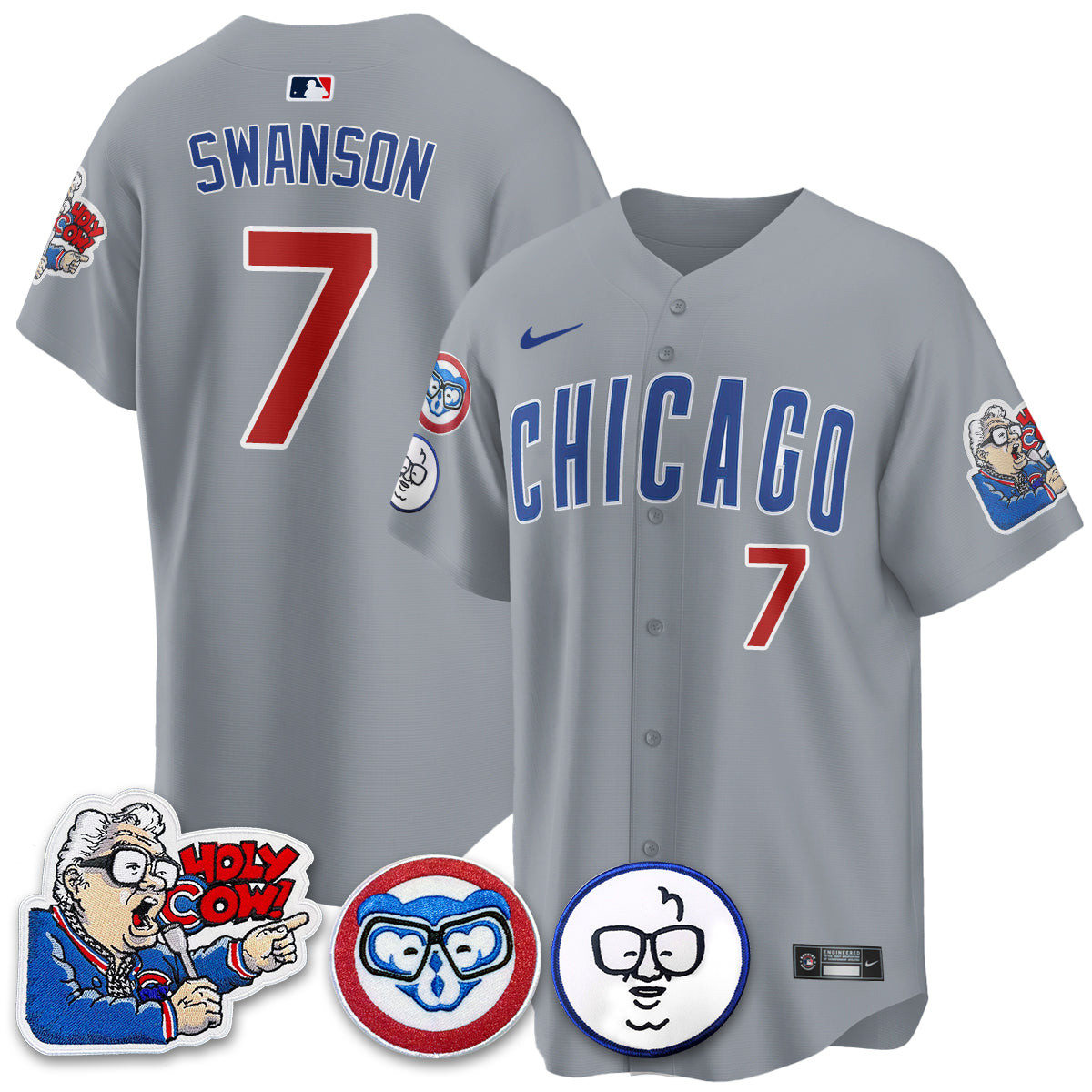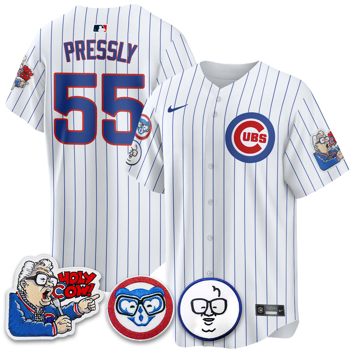 Men’s Chicago Cubs Harry Caray Holy Cow Patch Premier Limited Jersey – All Stitched