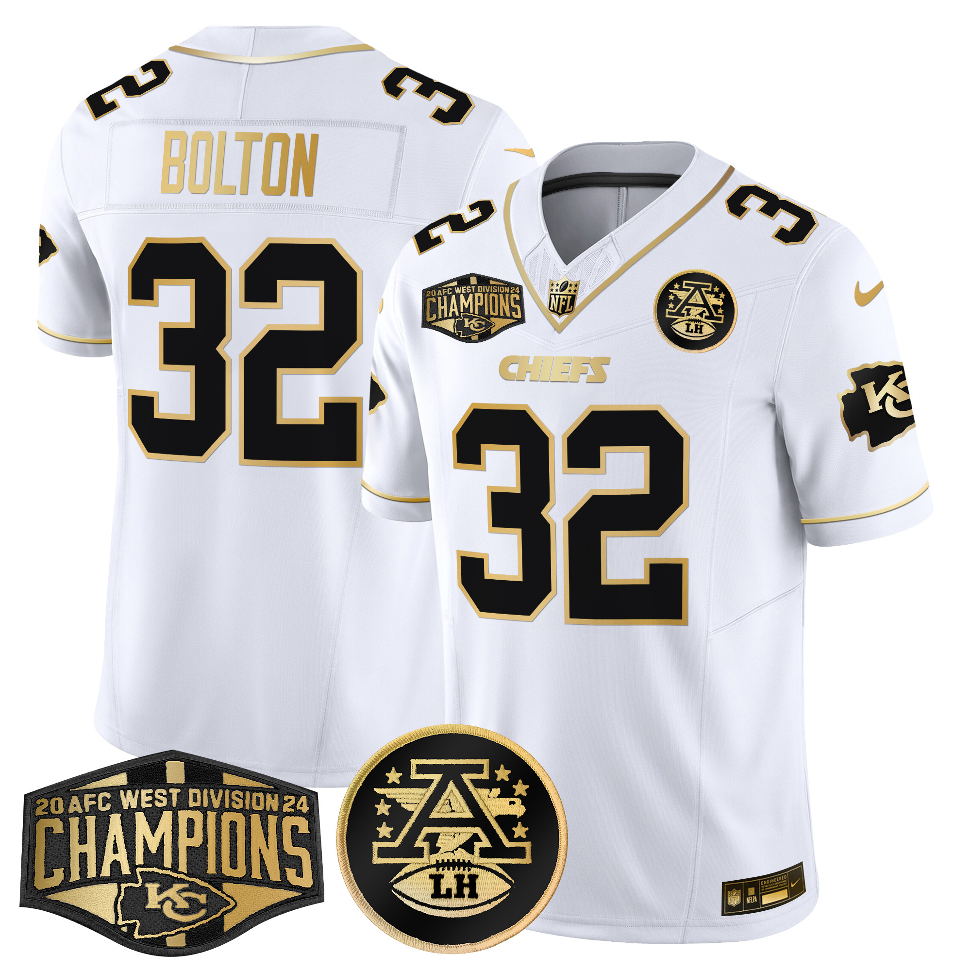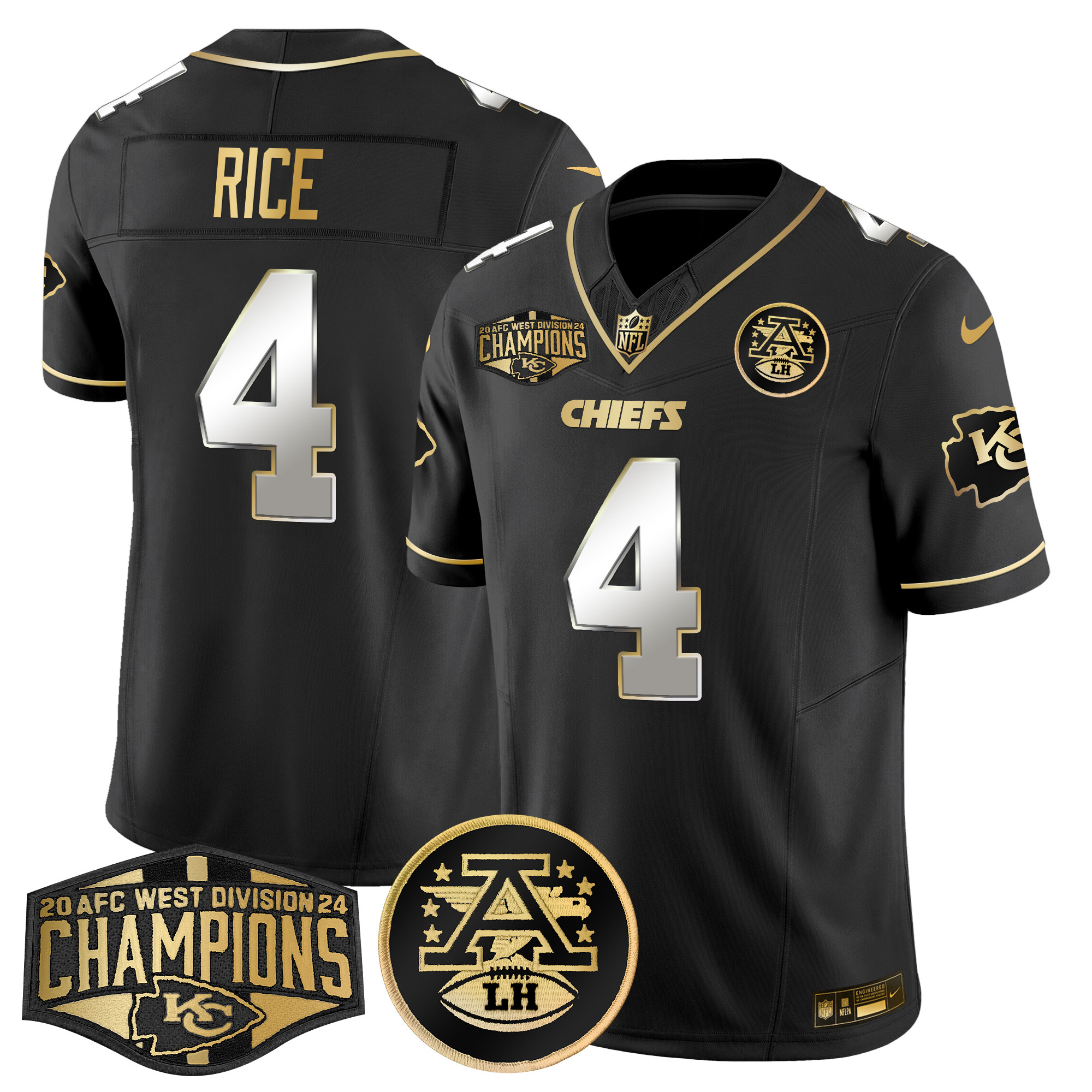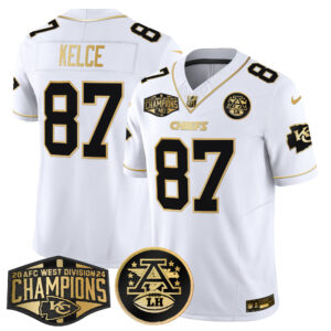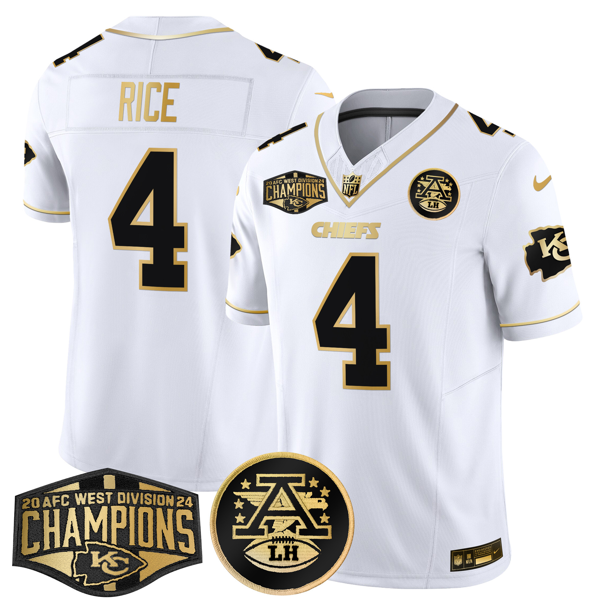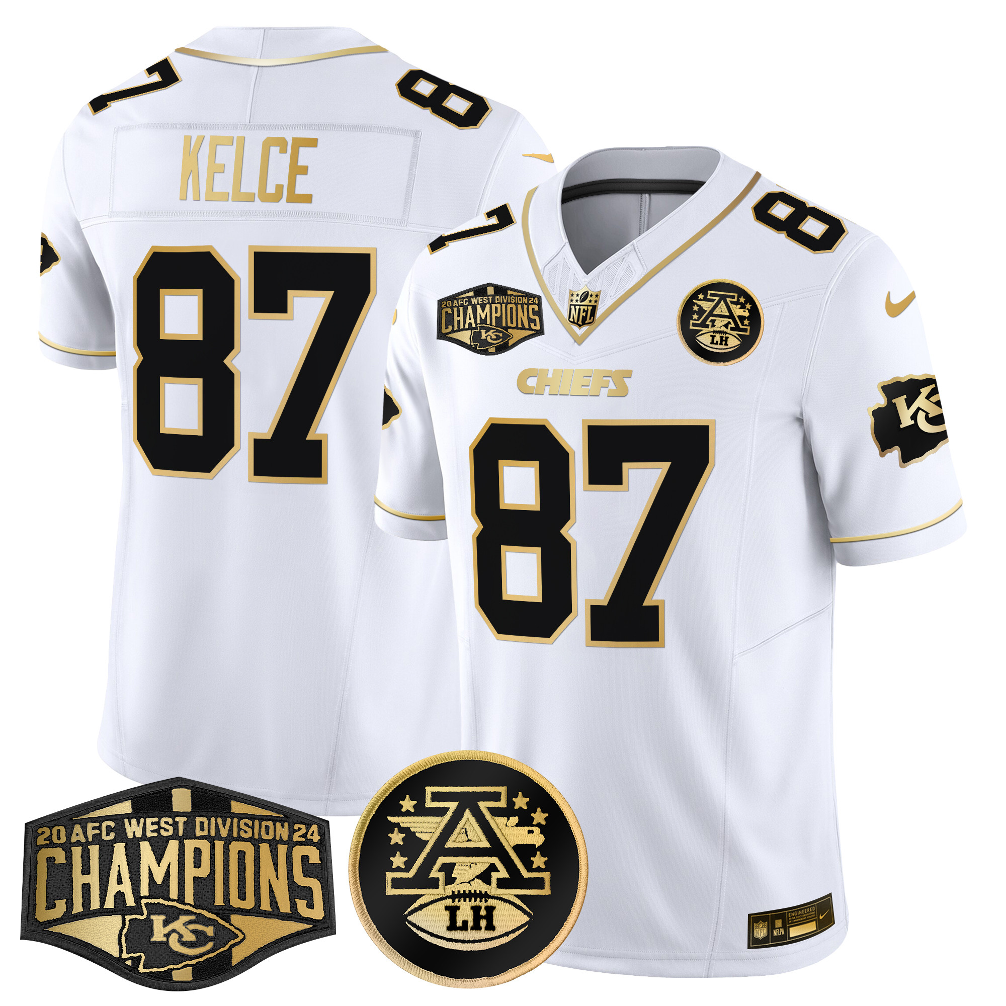Men’s Chiefs 2024 AFC West Division Champions Patch Gold Vapor Limited Jersey – All Stitched