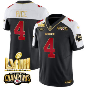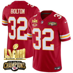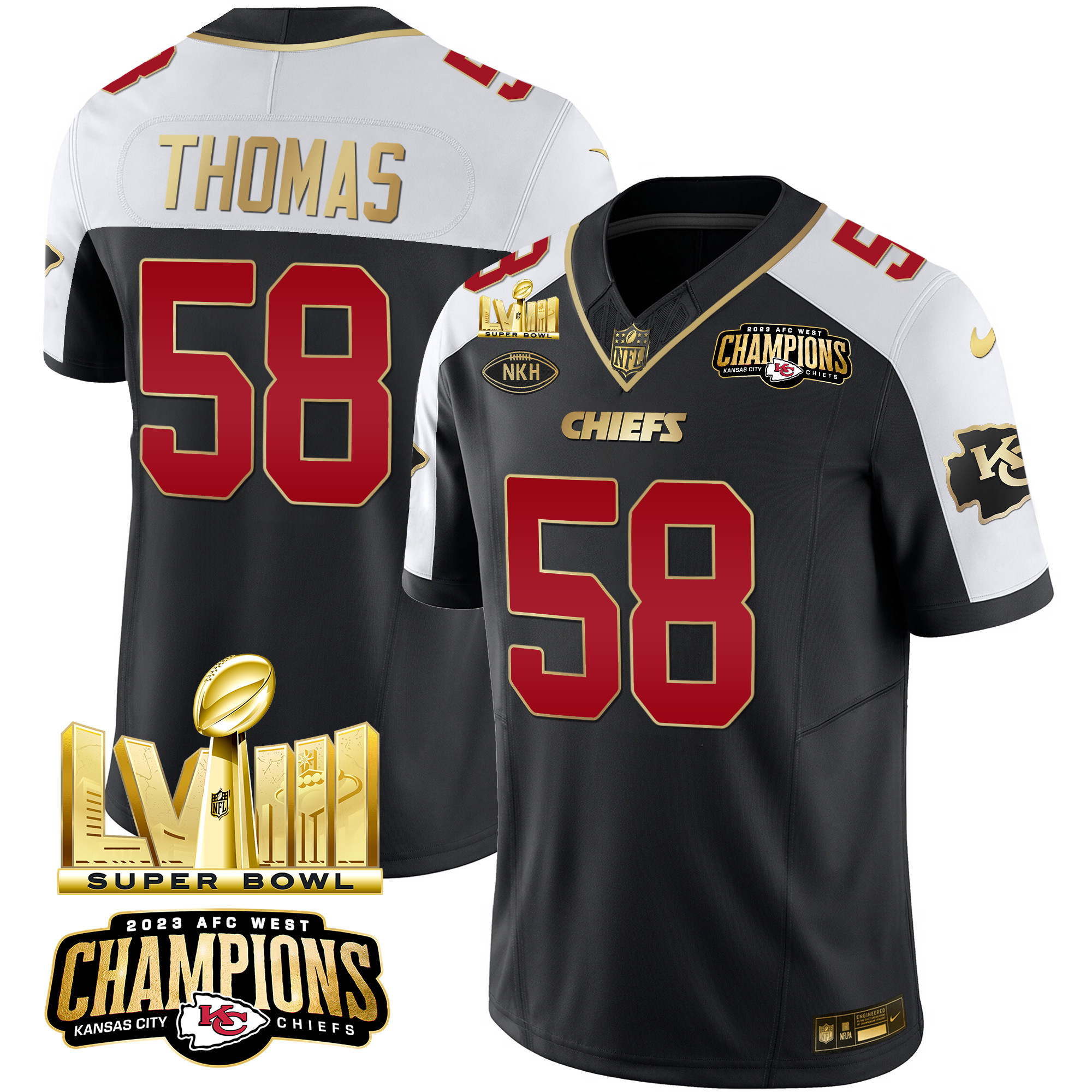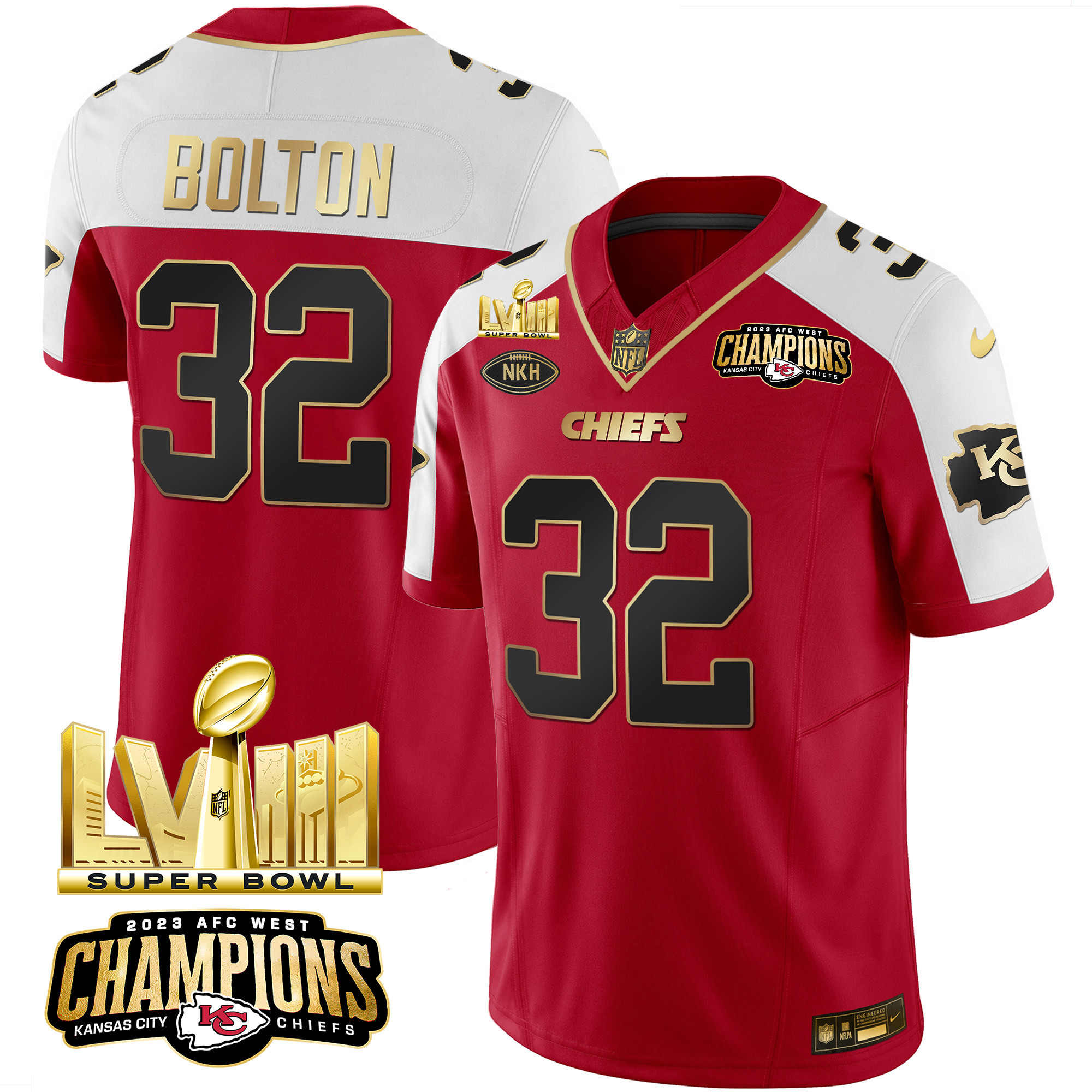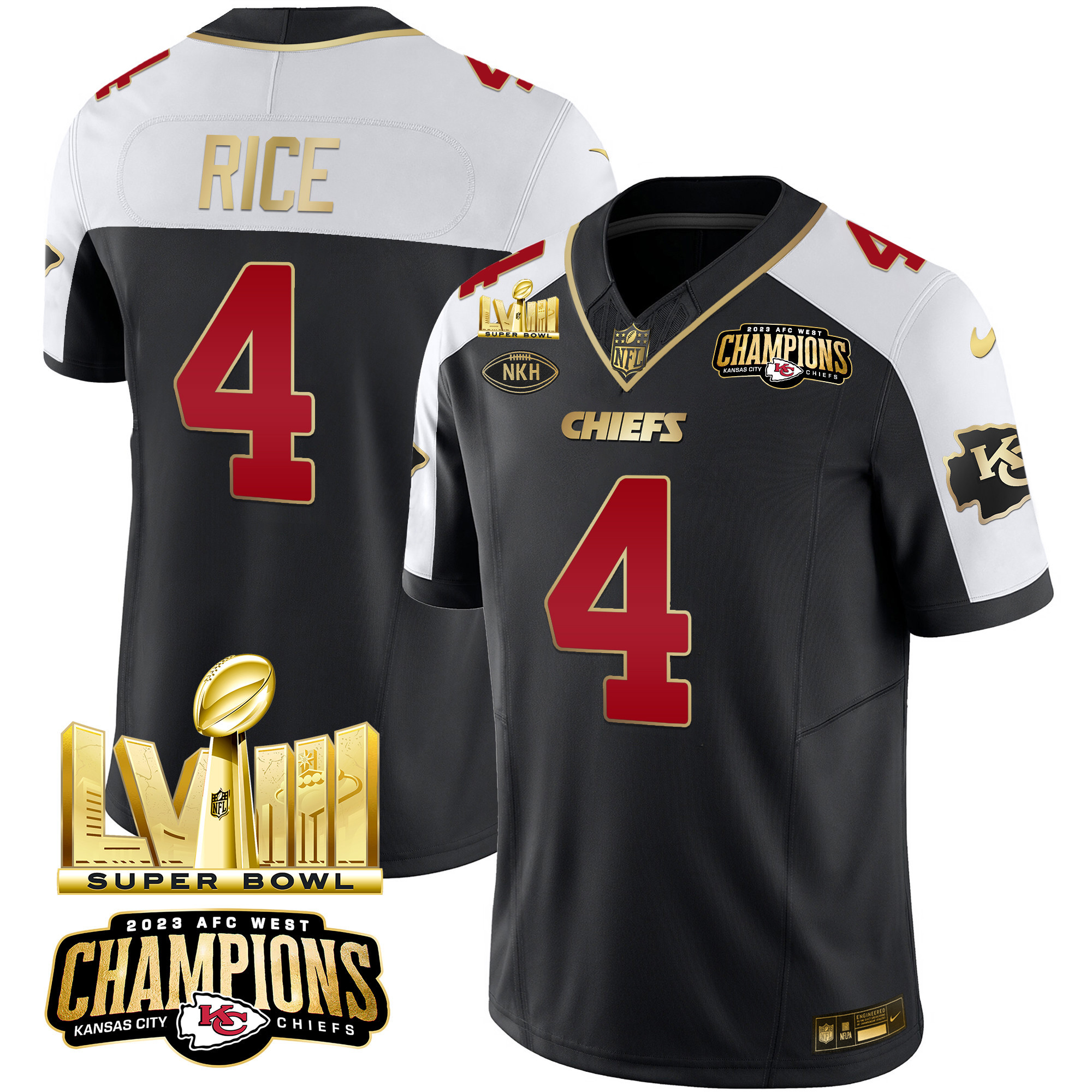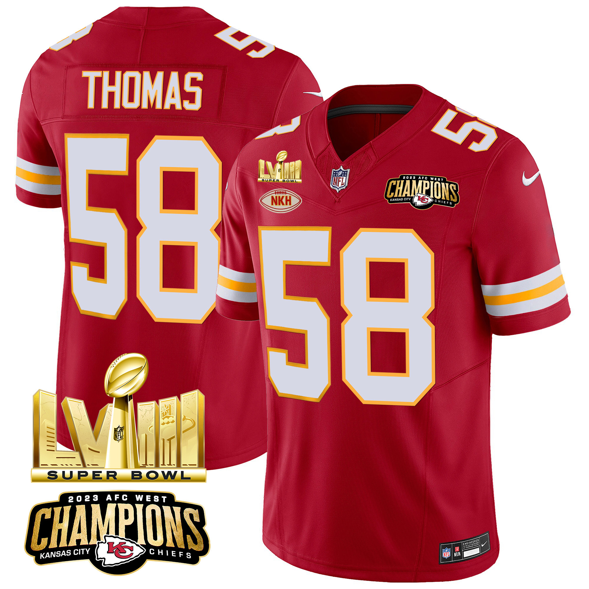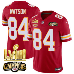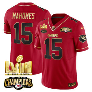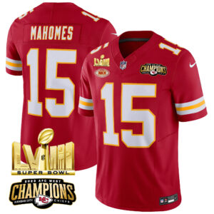 Men’s Chiefs AFC West Champions & Super Bowl LVIII Gold Patch Vapor Jersey – All Stitched