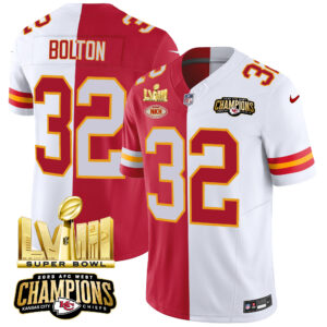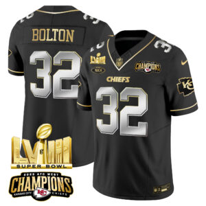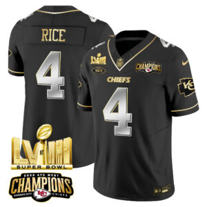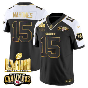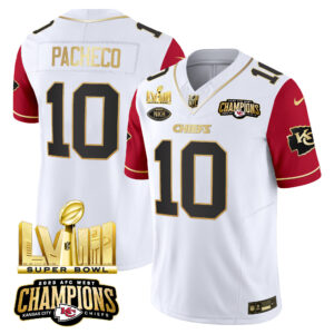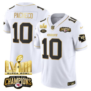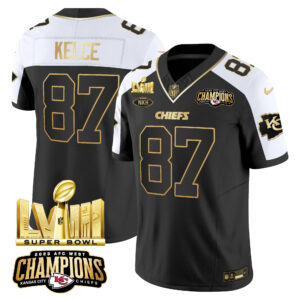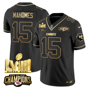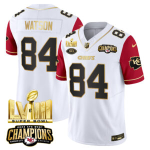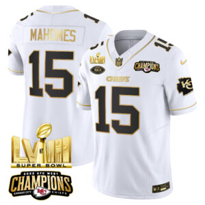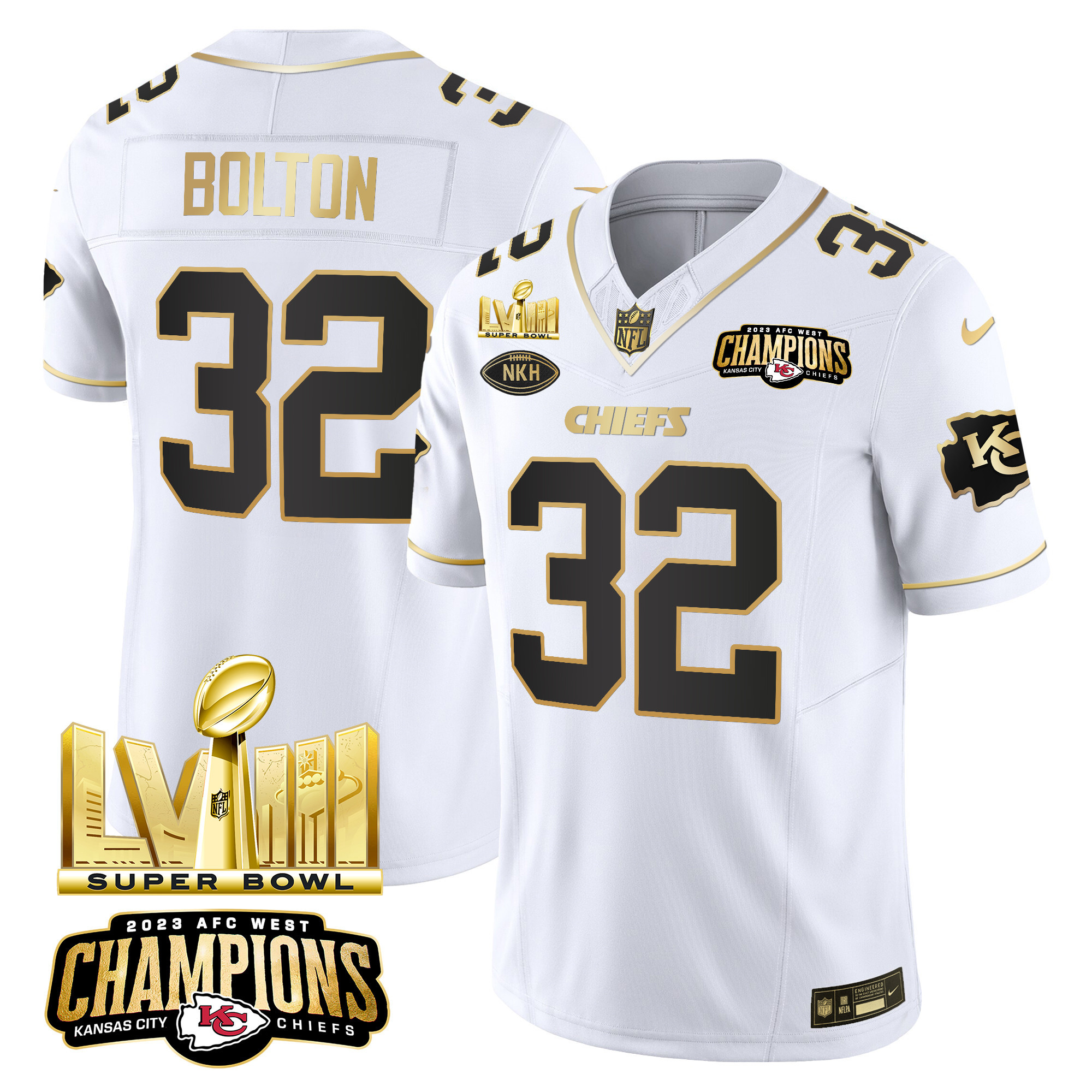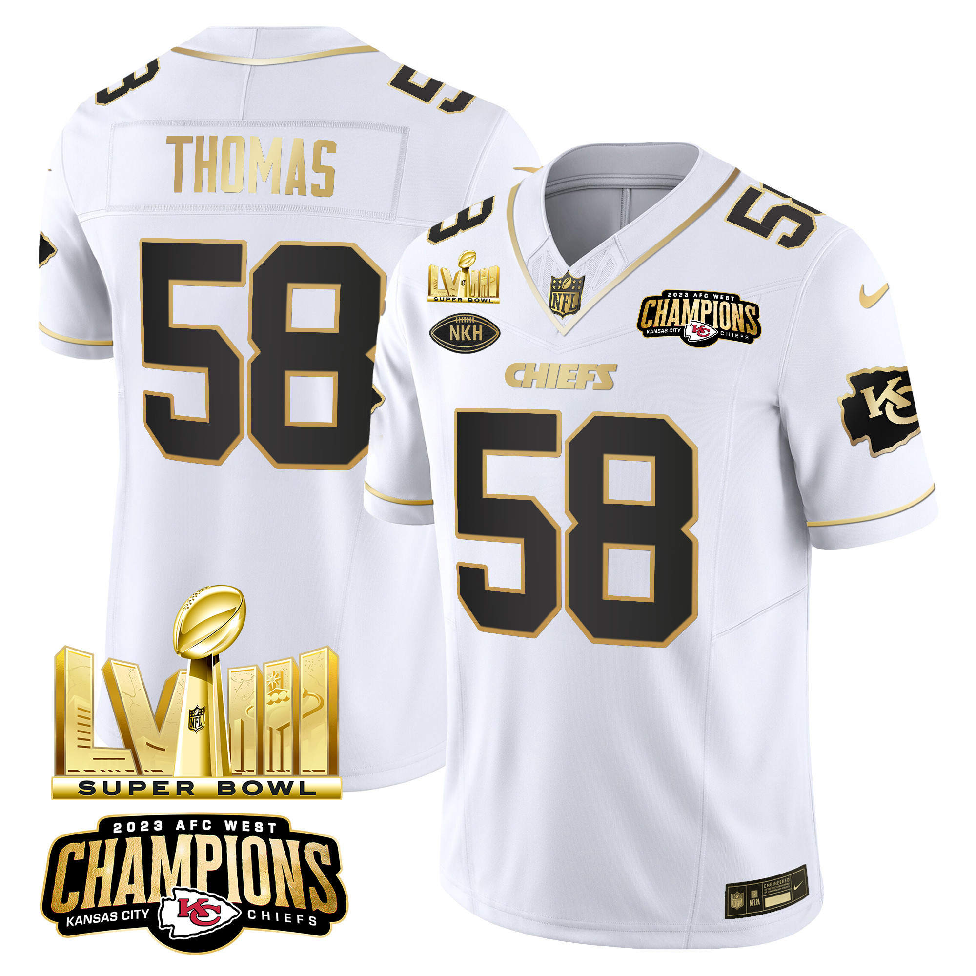 Men’s Chiefs AFC West Champions & Super Bowl LVIII Gold Patch Vapor Jersey V2 – All Stitched