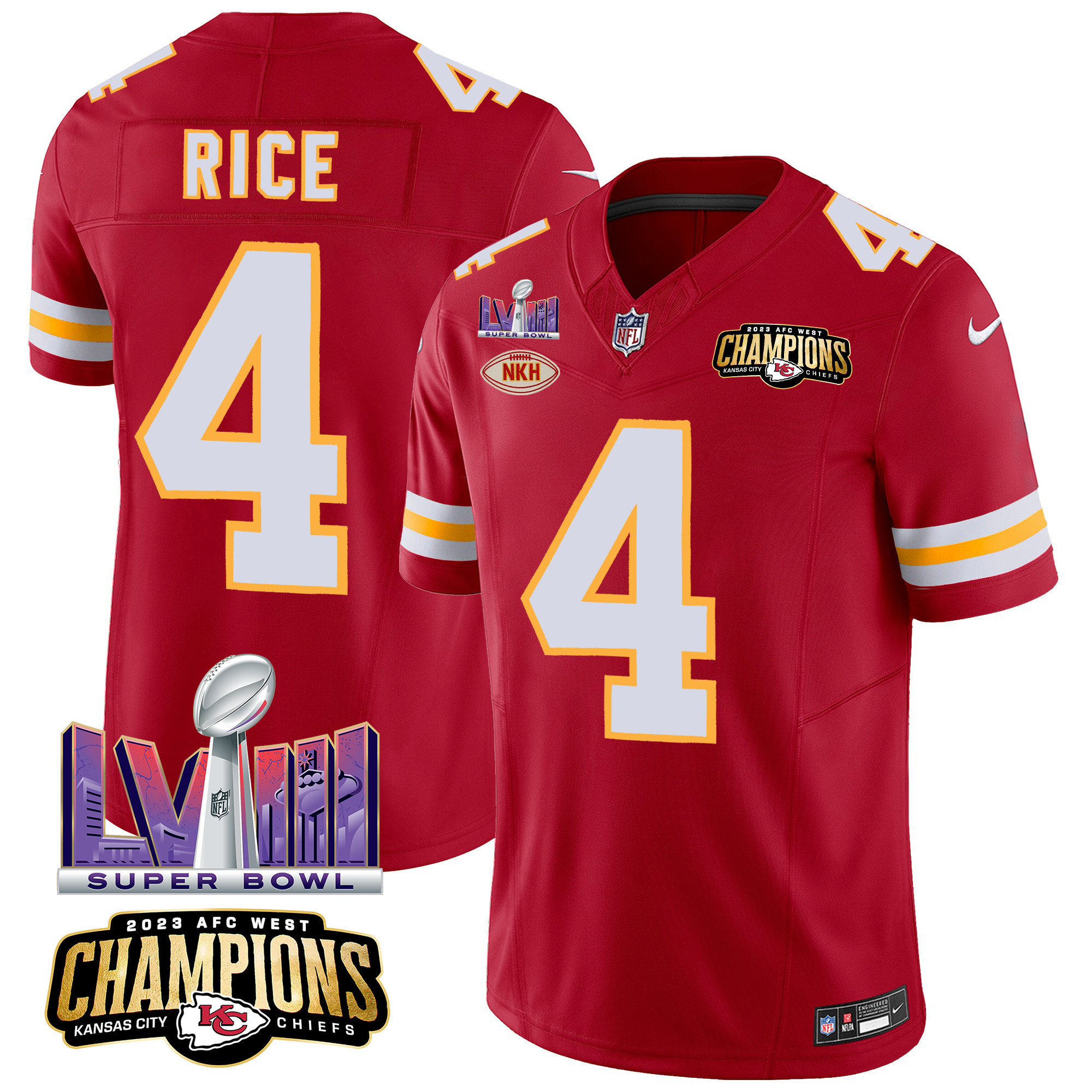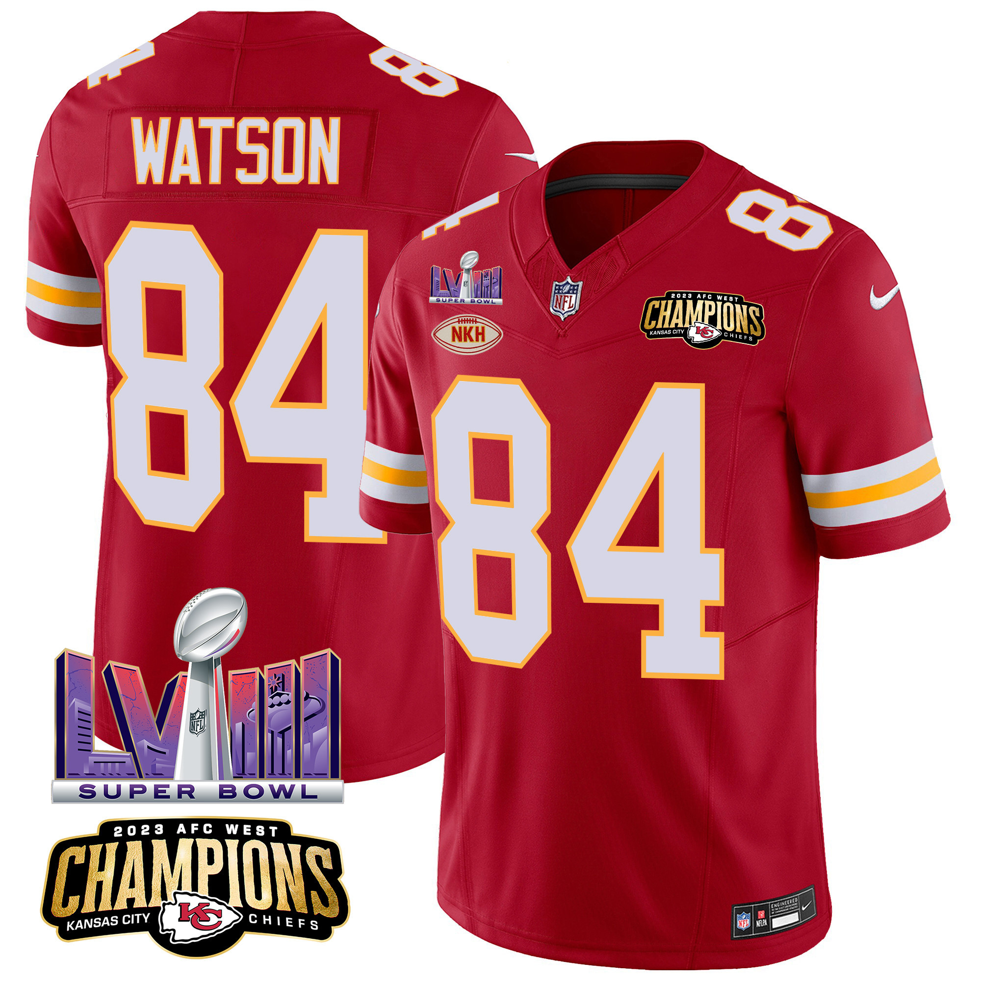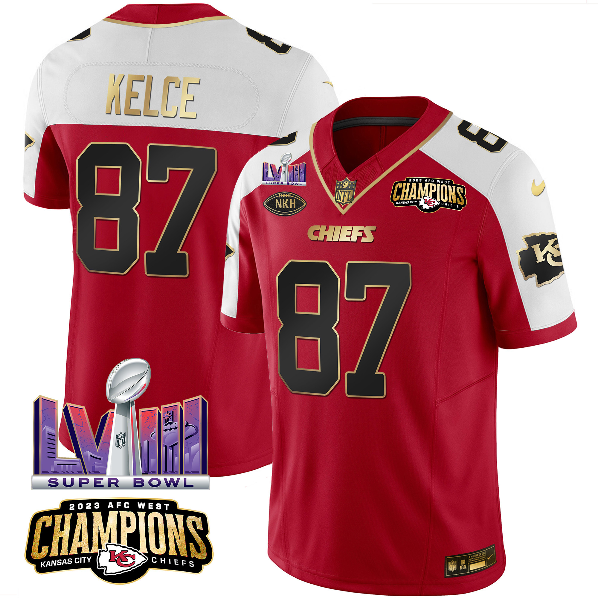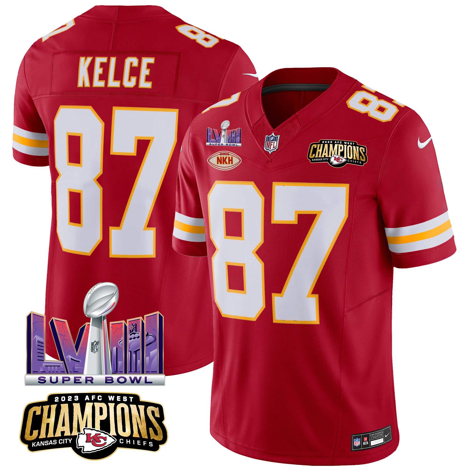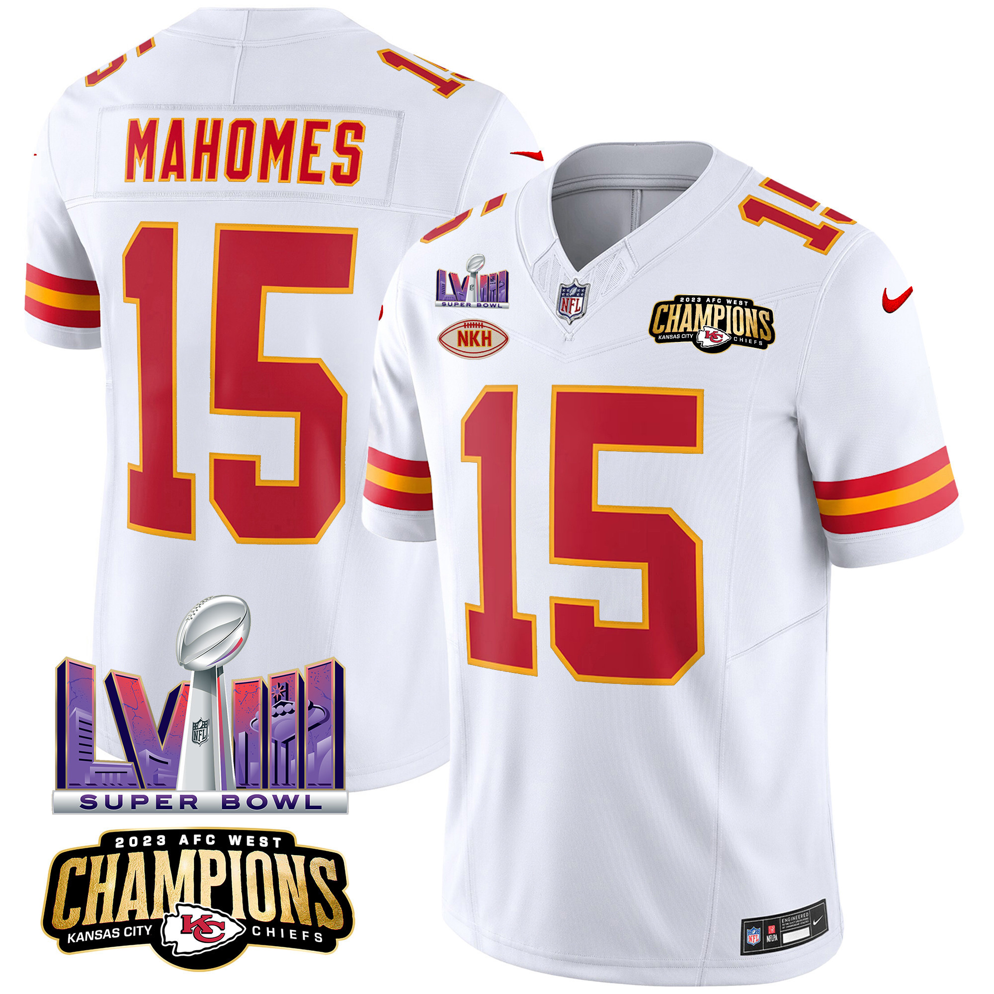 Men’s Chiefs AFC West Champions & Super Bowl LVIII Patch Vapor Jersey – All Stitched
