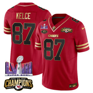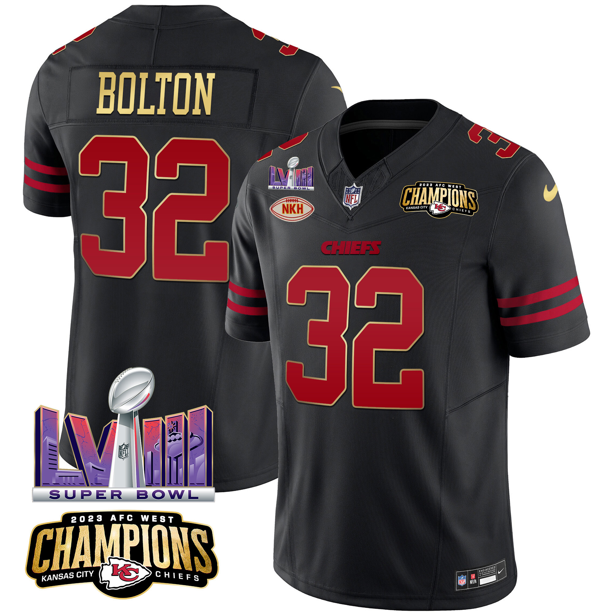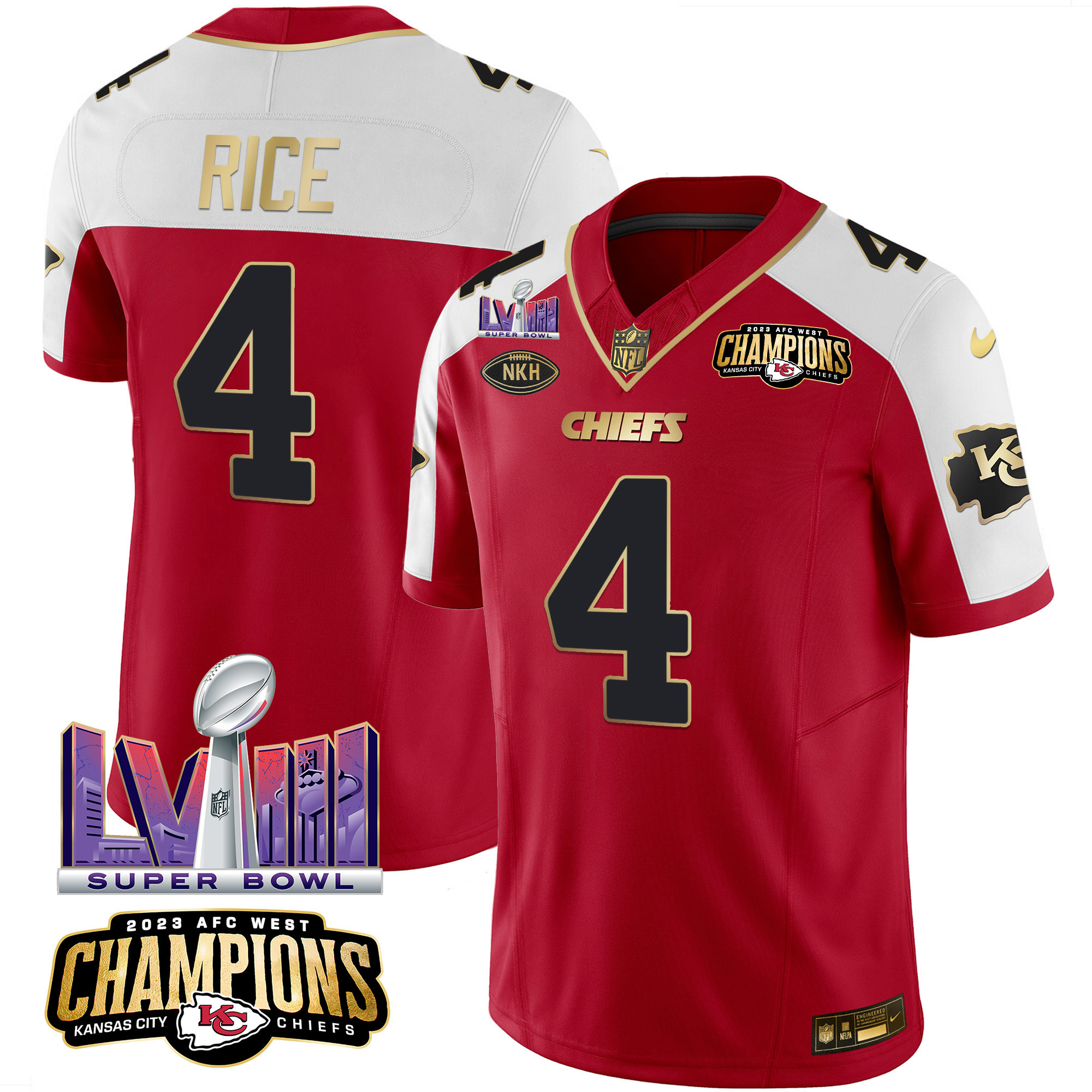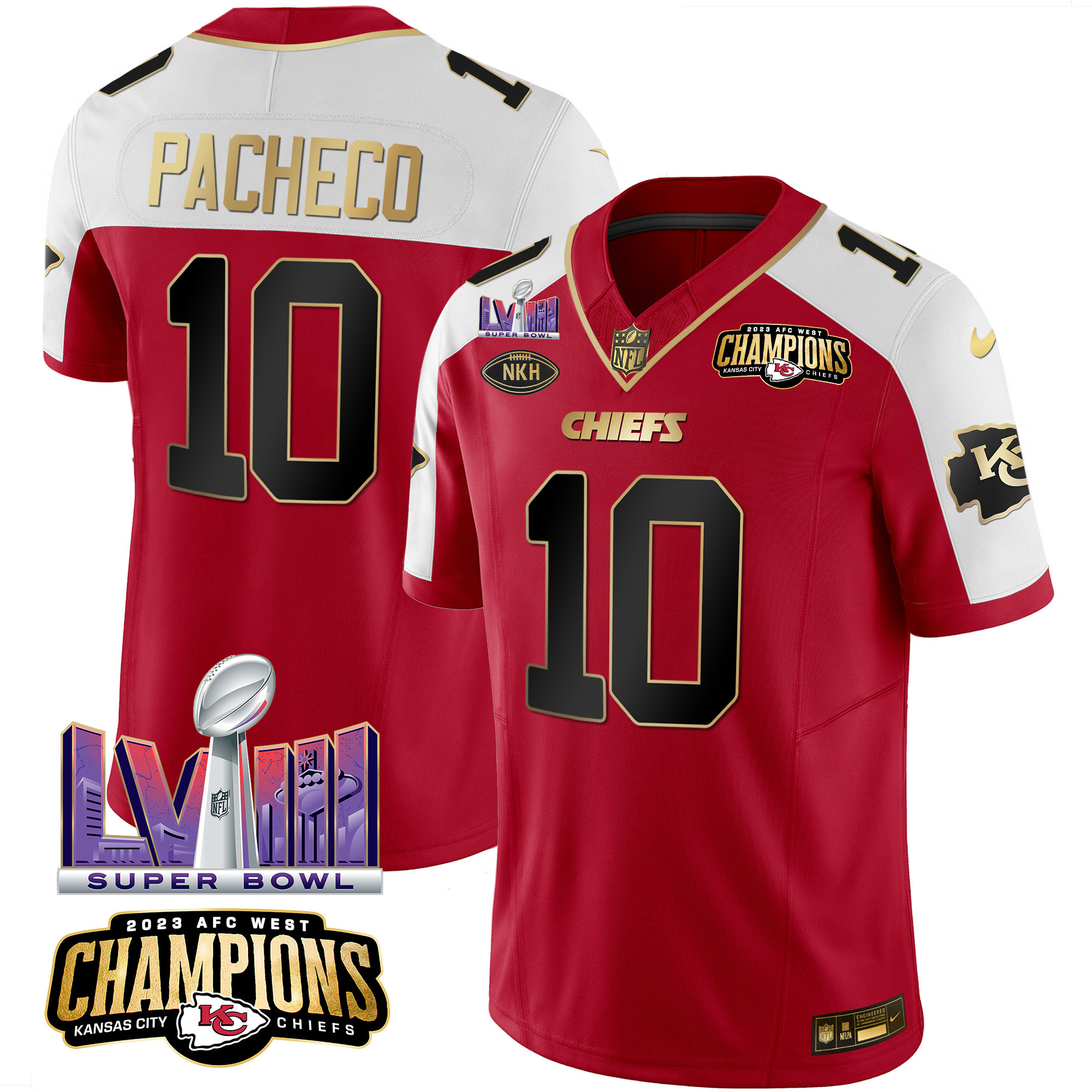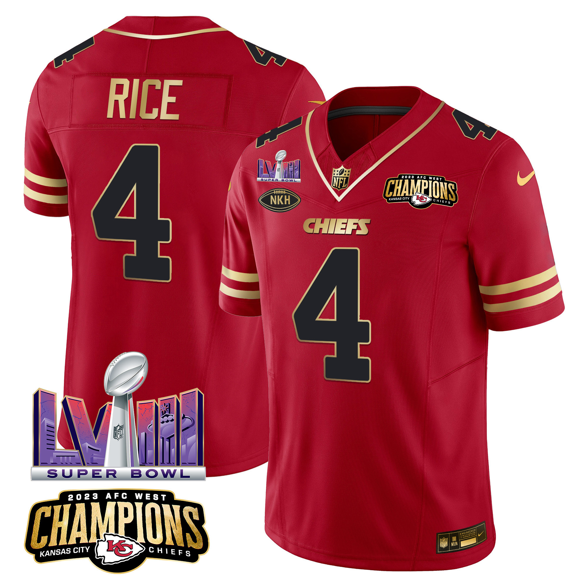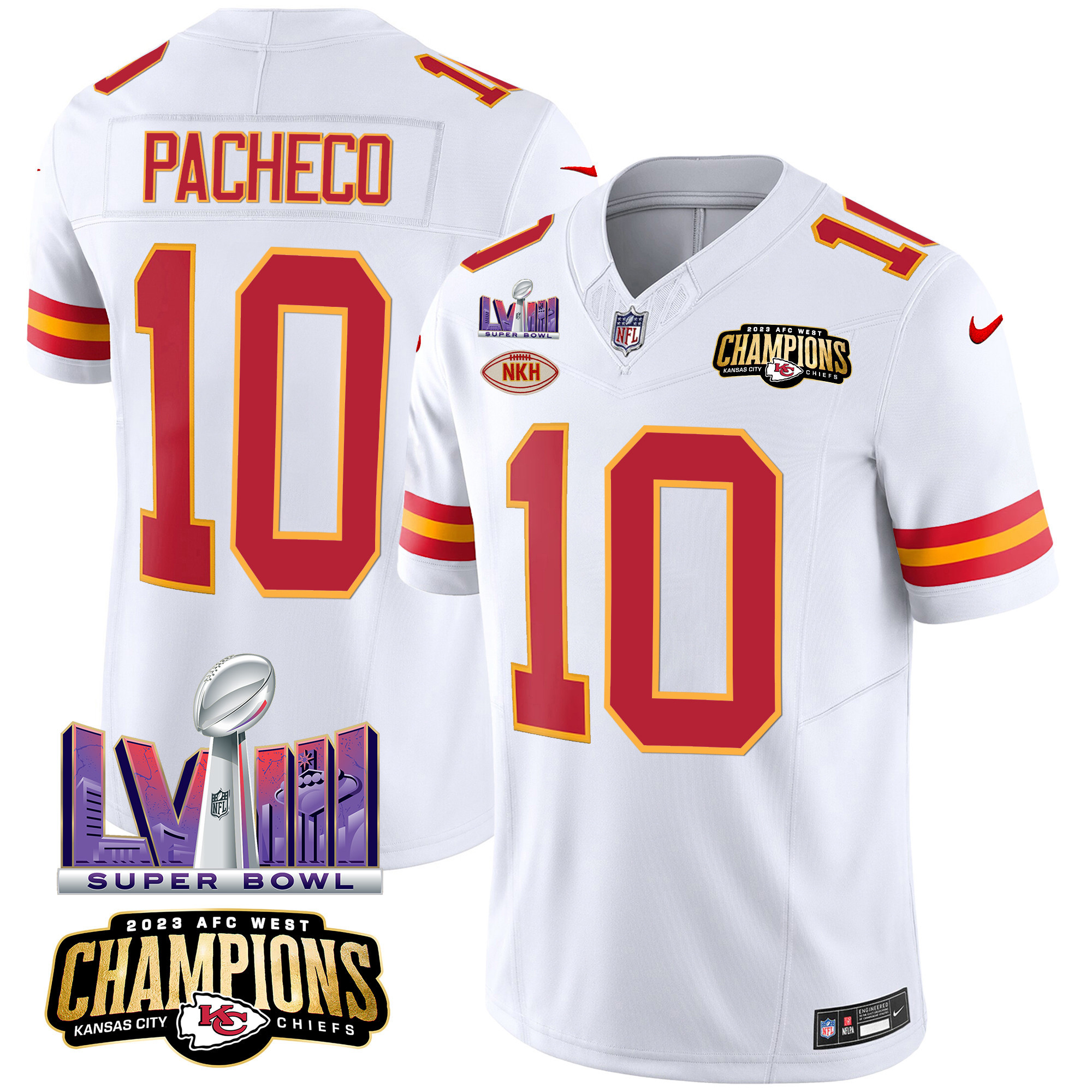 Men’s Chiefs AFC West Champions & Super Bowl LVIII Patch Vapor Jersey – All Stitched