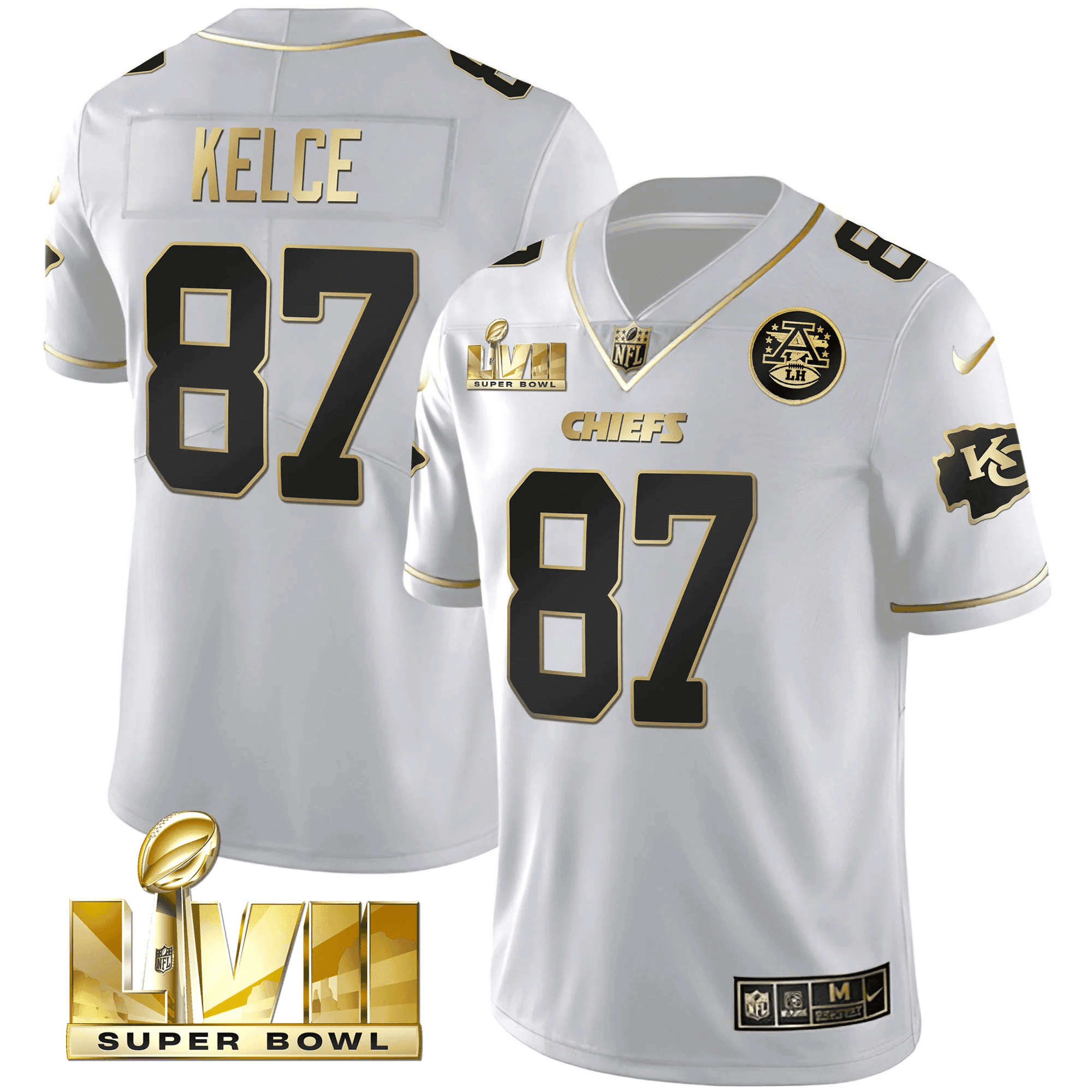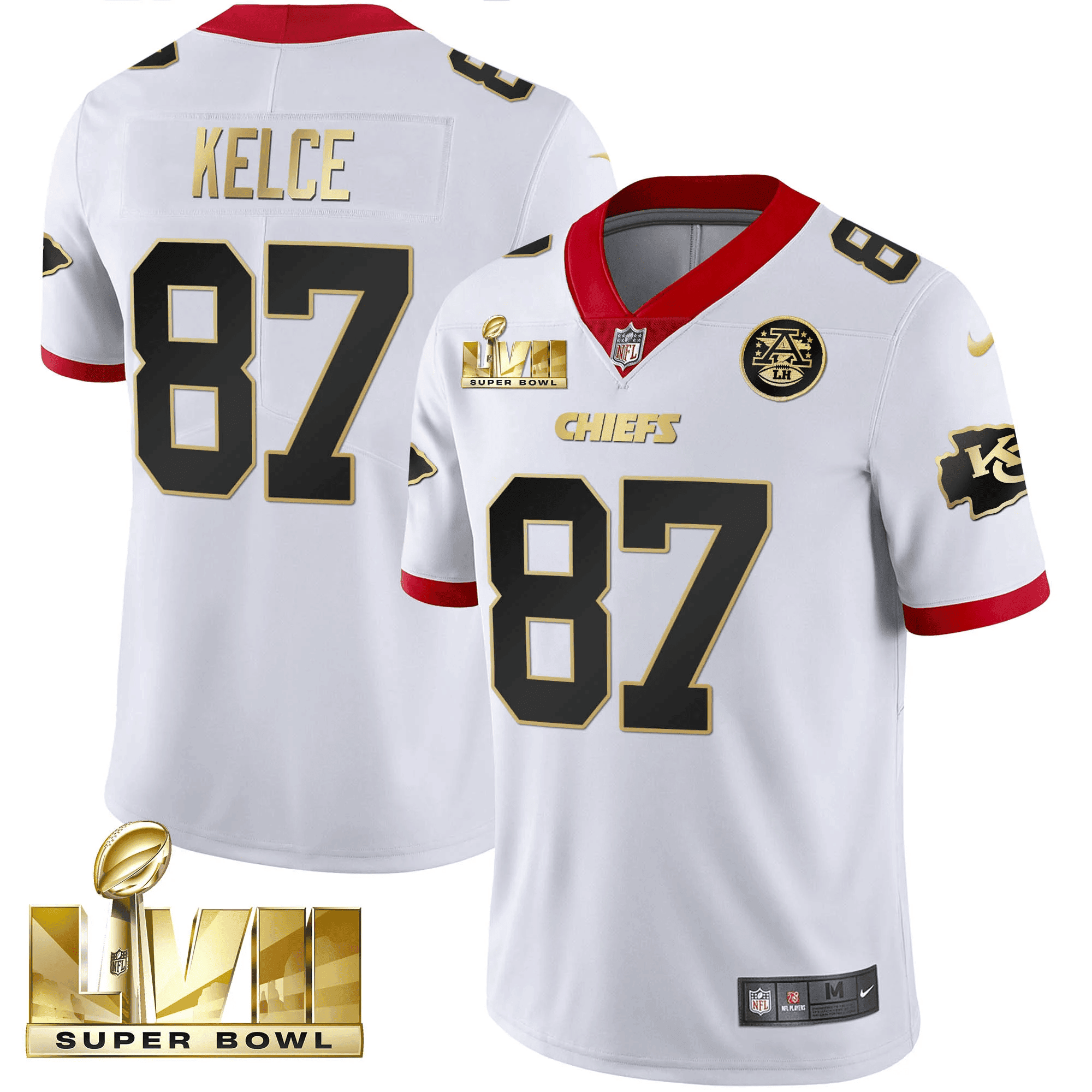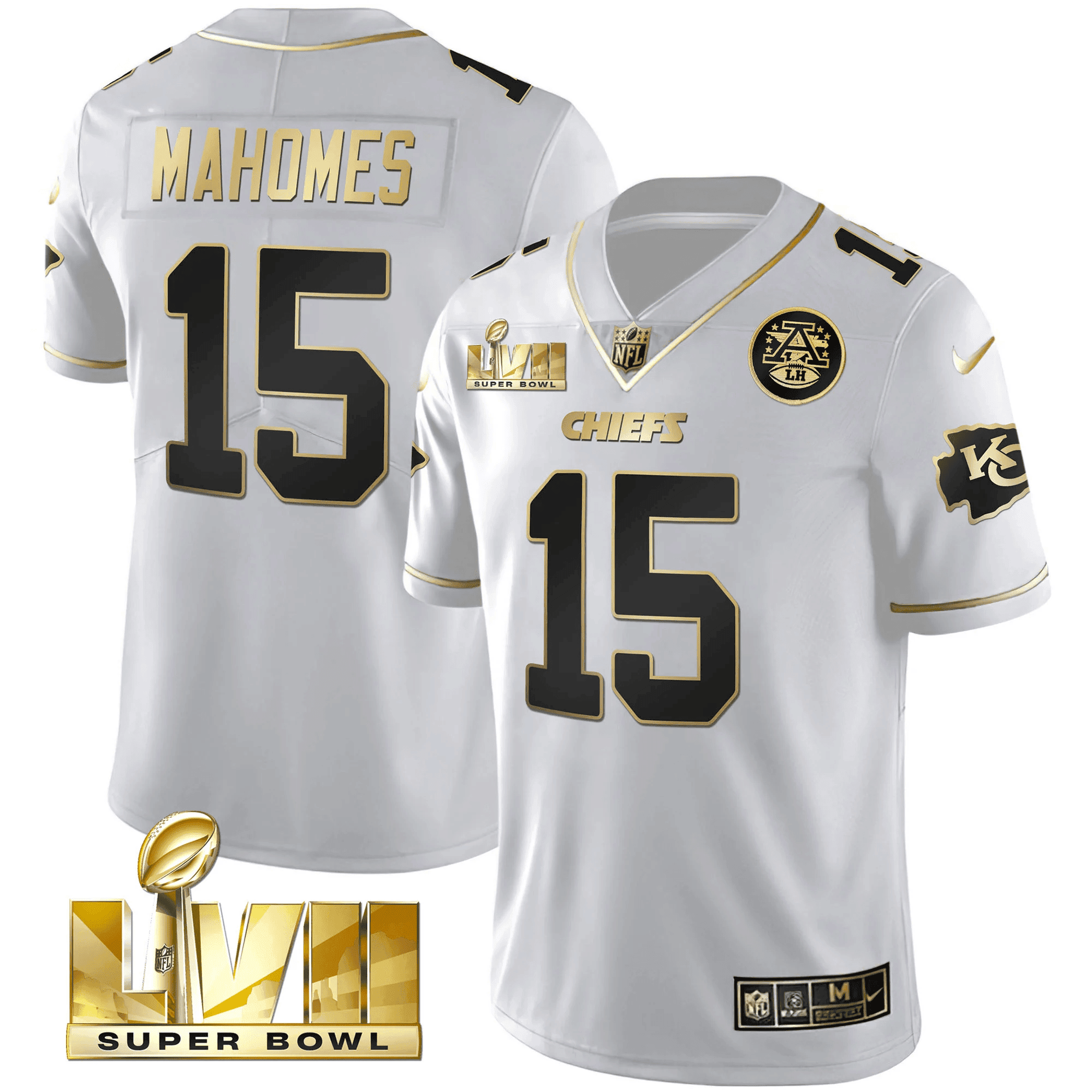 Men’s Chiefs Super Bowl LVII Gold Trim Vapor V2 Jersey – All Stitched