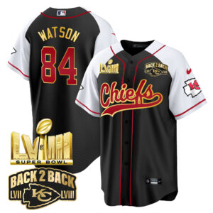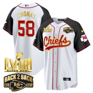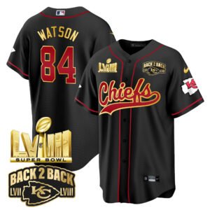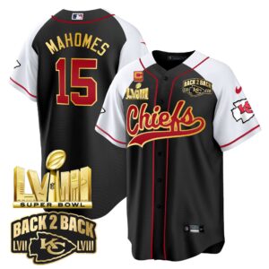 Men’s Chiefs Super Bowl LVIII & Back 2 Back Gold Patch Baseball Jersey – All Stitched