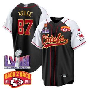 Men’s Chiefs Super Bowl LVIII & Back 2 Back Patch Baseball Jersey – All Stitched