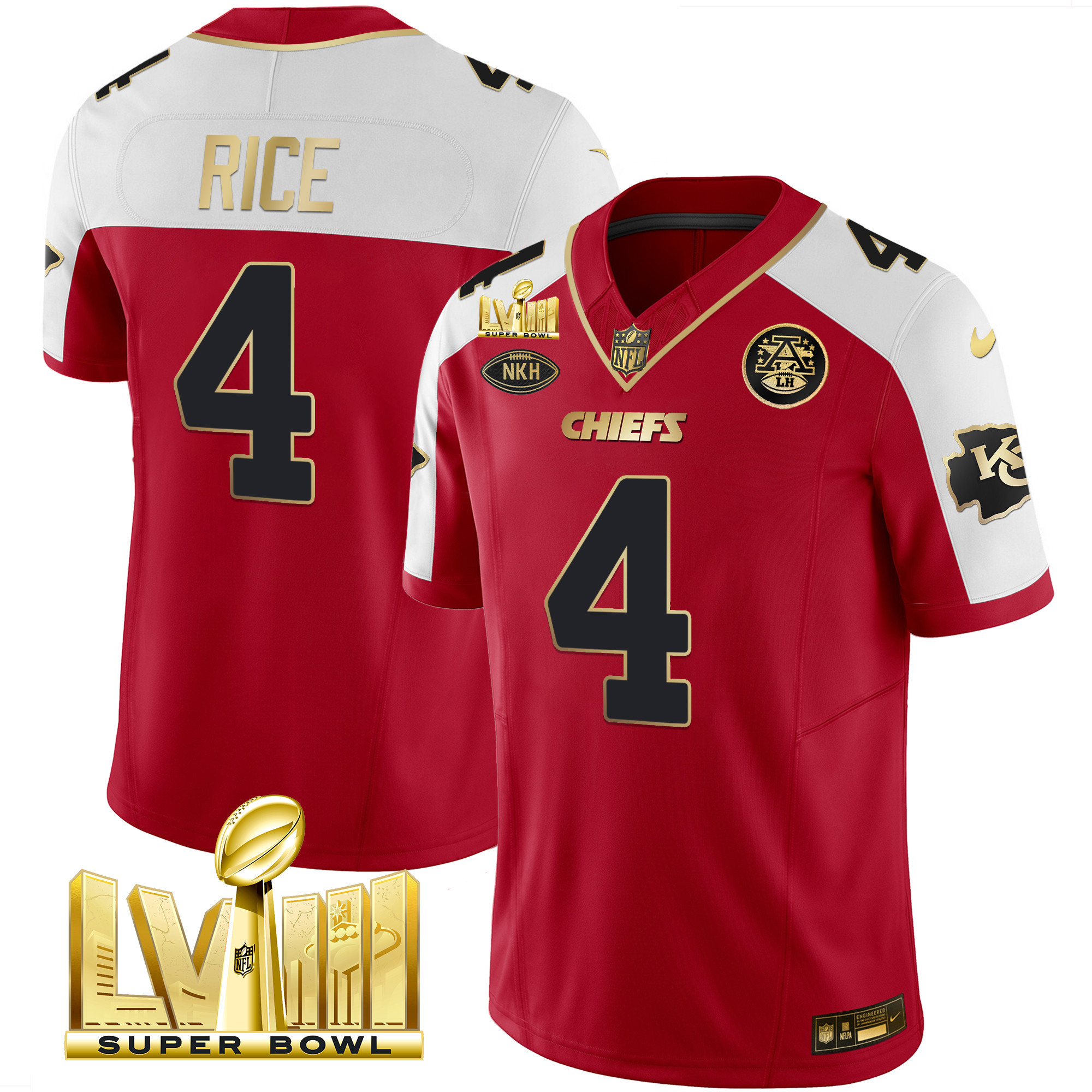 Men’s Chiefs Super Bowl LVIII Gold Patch Vapor Jersey V2 – All Stitched