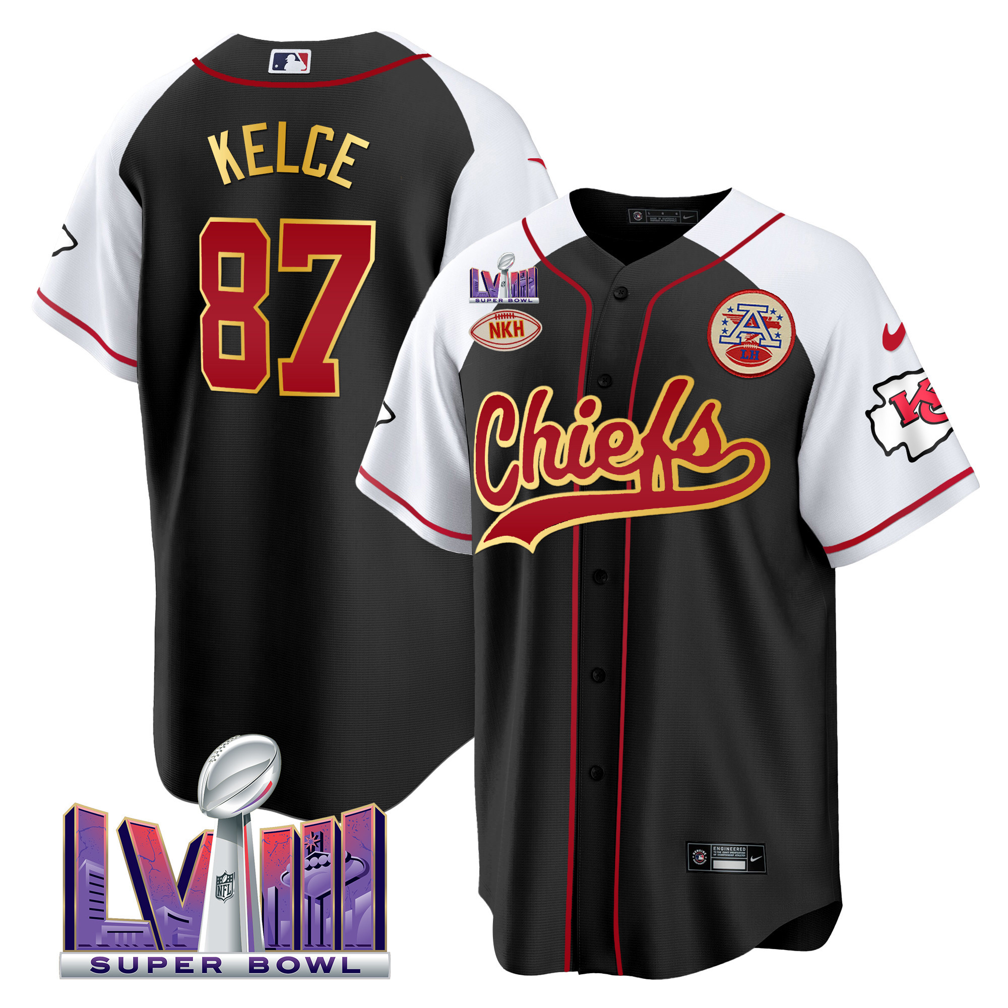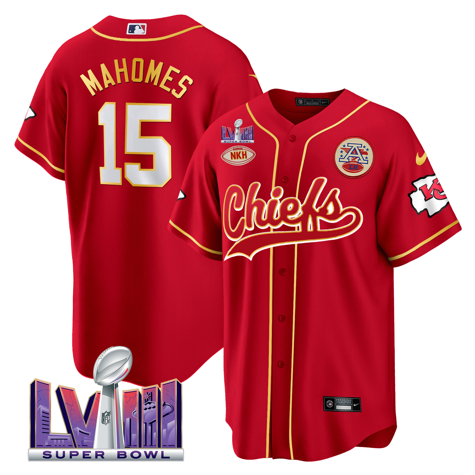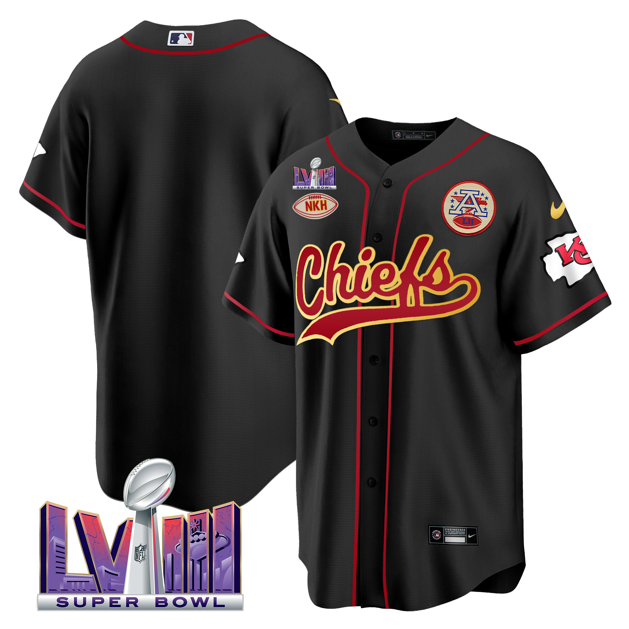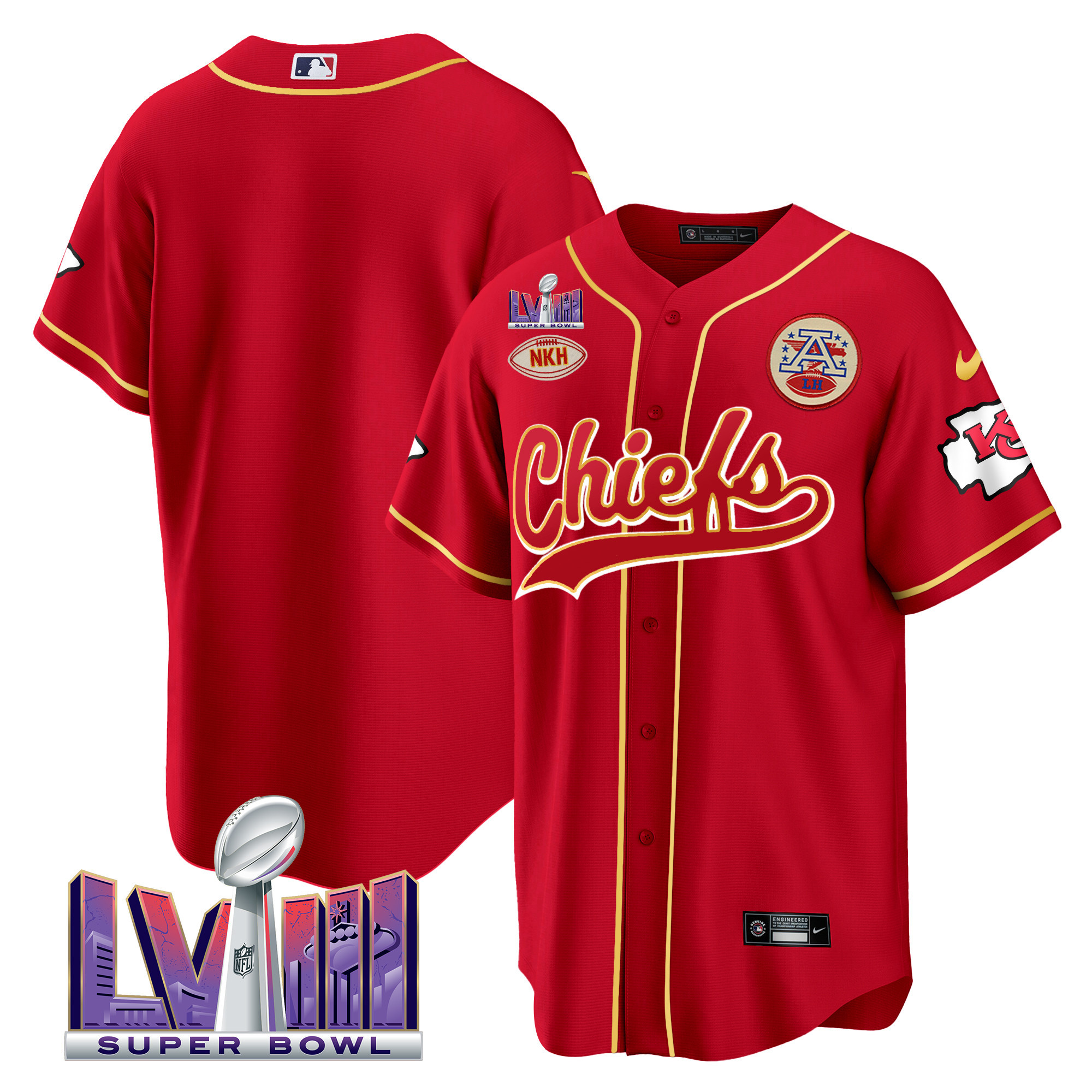 Men’s Chiefs Super Bowl LVIII Patch Baseball Jersey – All Stitched