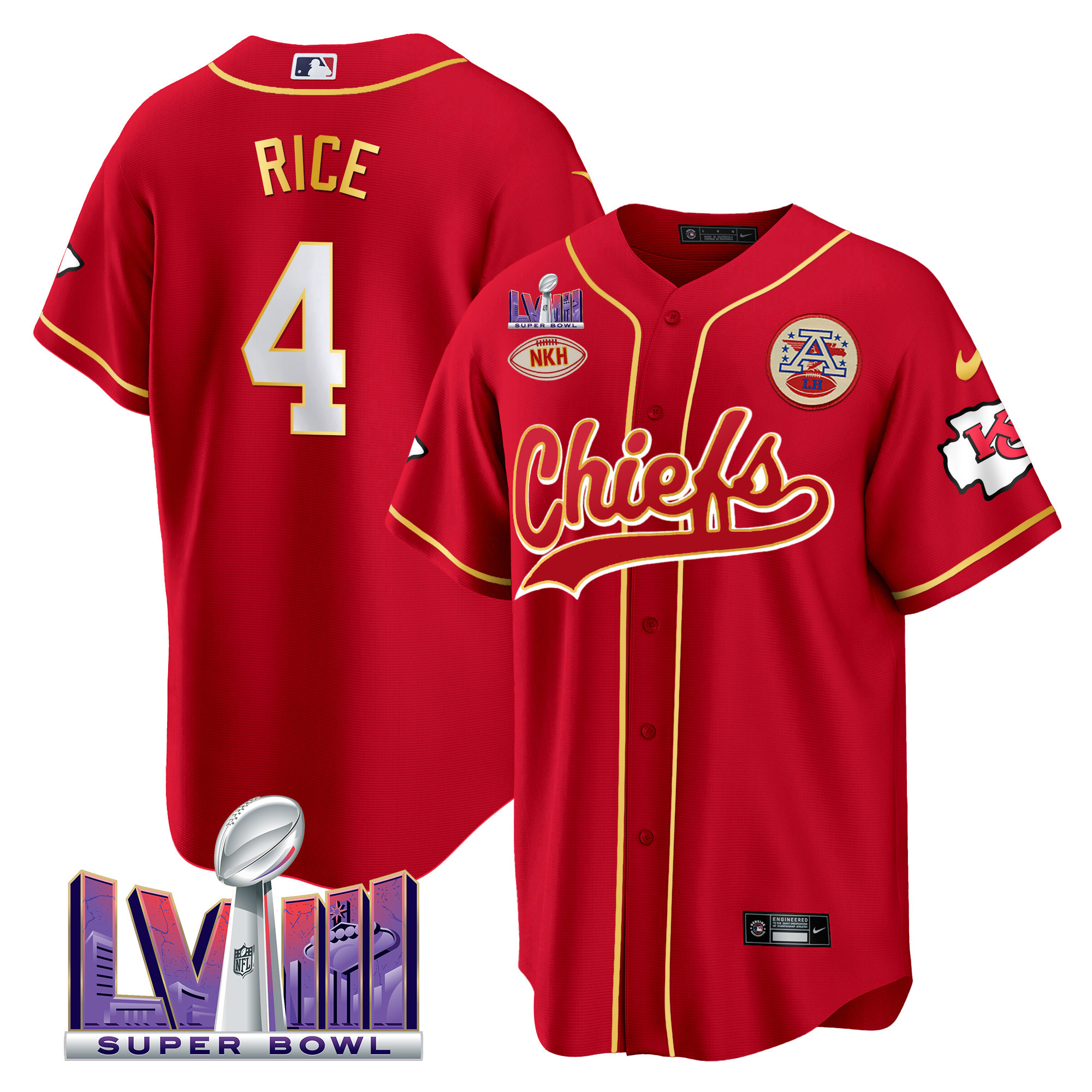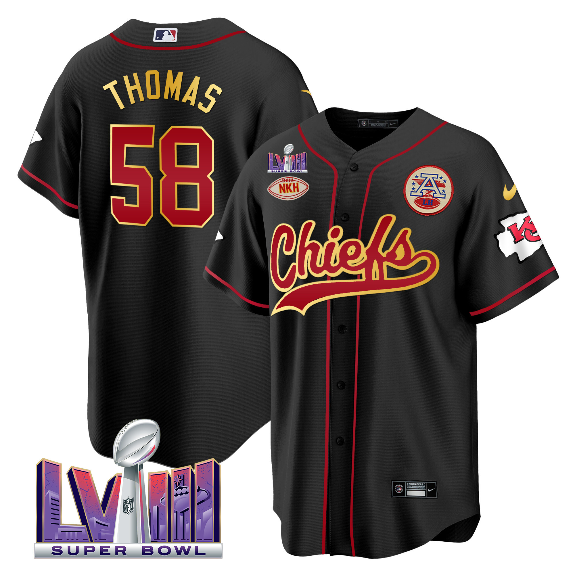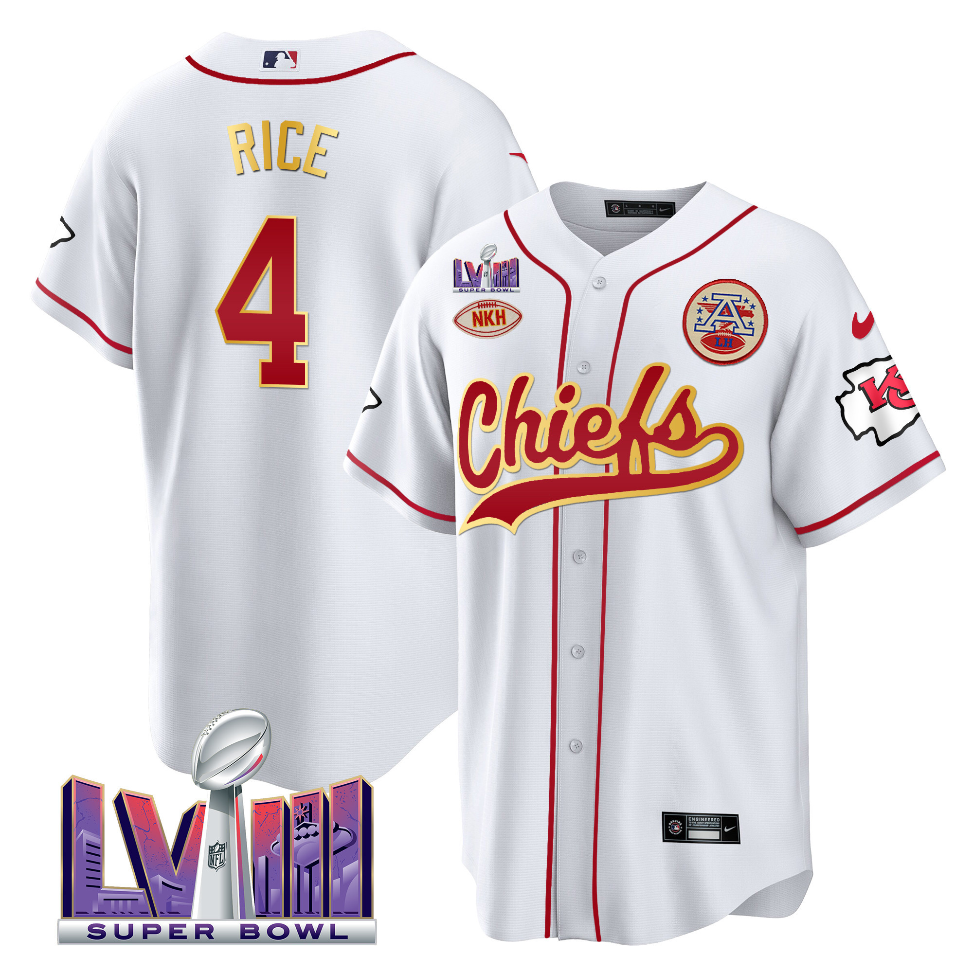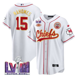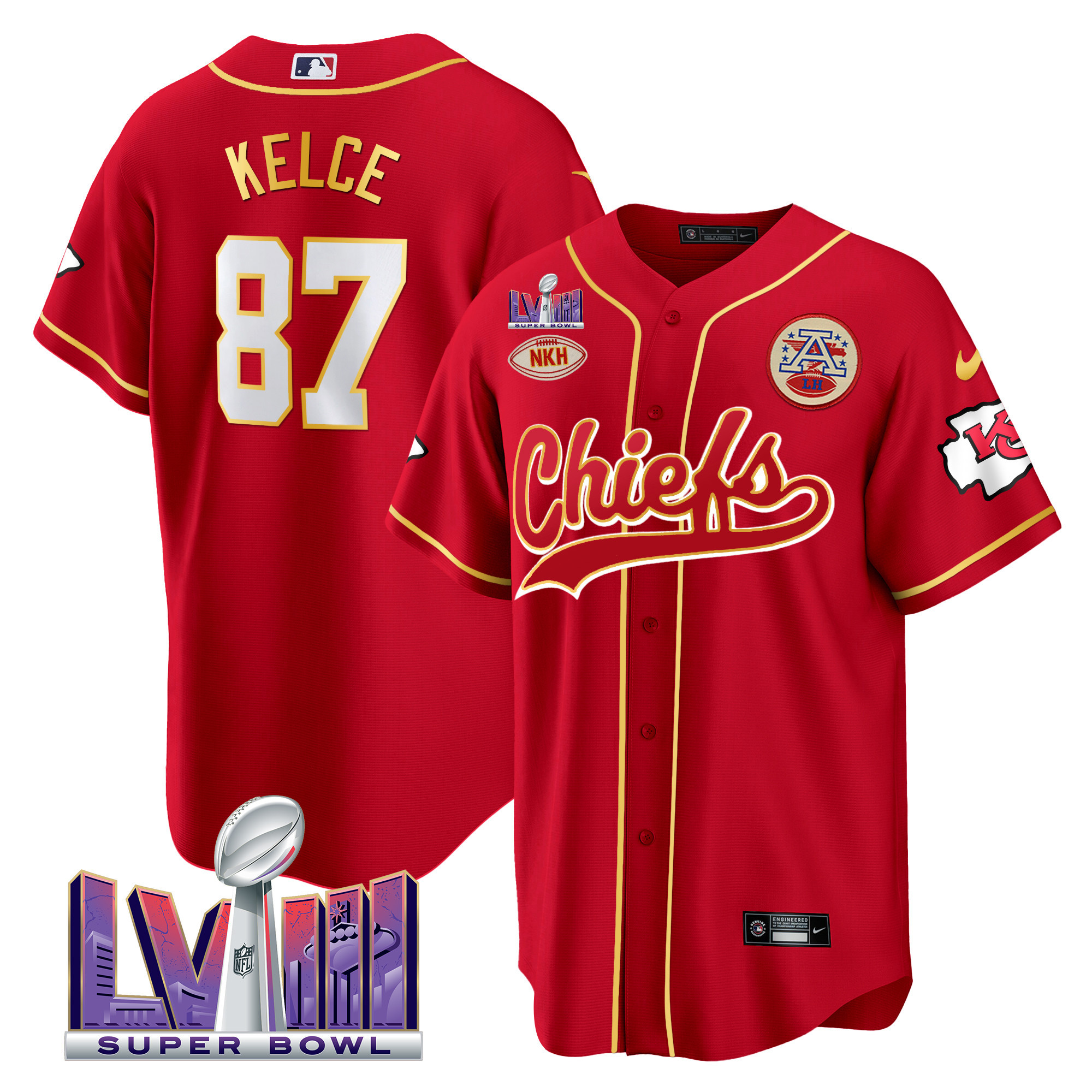 Men’s Chiefs Super Bowl LVIII Patch Baseball Jersey – All Stitched