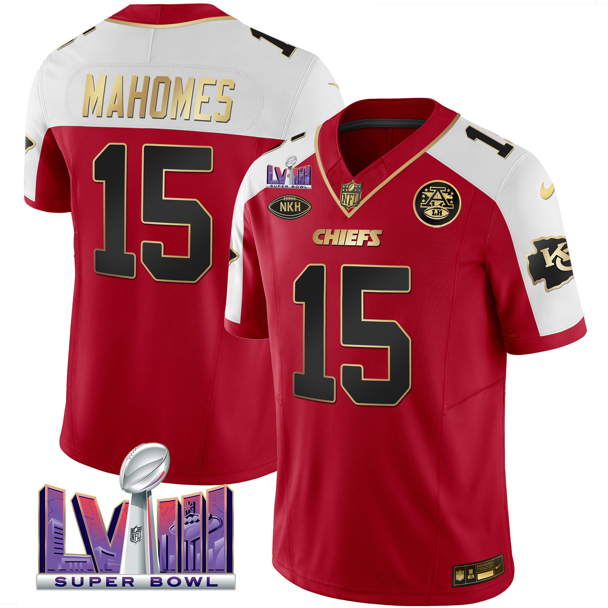 Men’s Chiefs Super Bowl LVIII Patch Vapor Jersey V2 – All Stitched