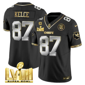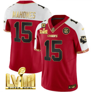 Men’s Chiefs Super Bowl LVIII Pattern Gold Vapor Jersey V2 – All Stitched