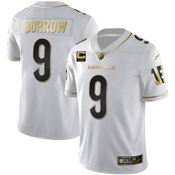 Men’s Cincinnati Bengals White Gold & Black Gold Jersey – All Stitched