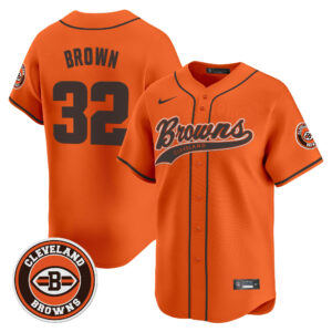 Cleveland Browns ‘#32 Jim Brown Memorial & Home Patch’ Vapor Baseball Custom Jersey – All Stitched
