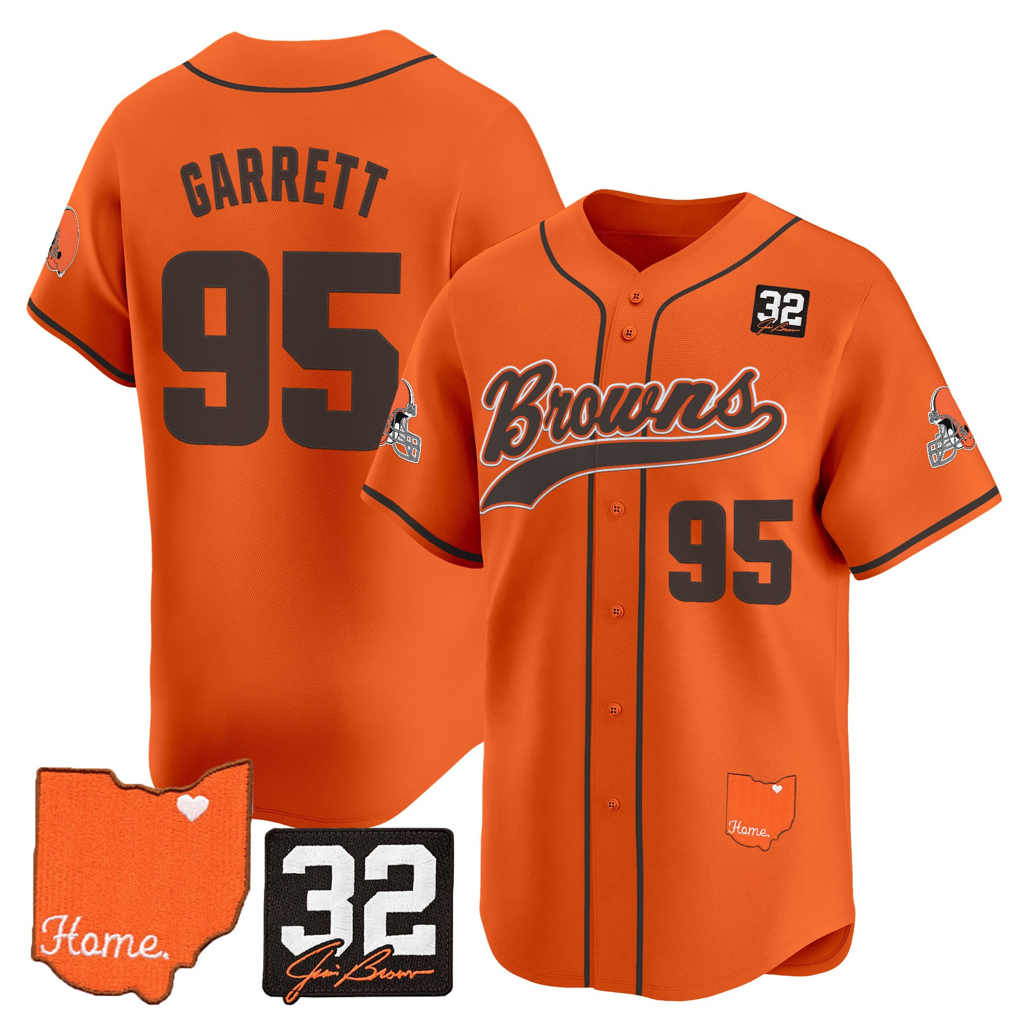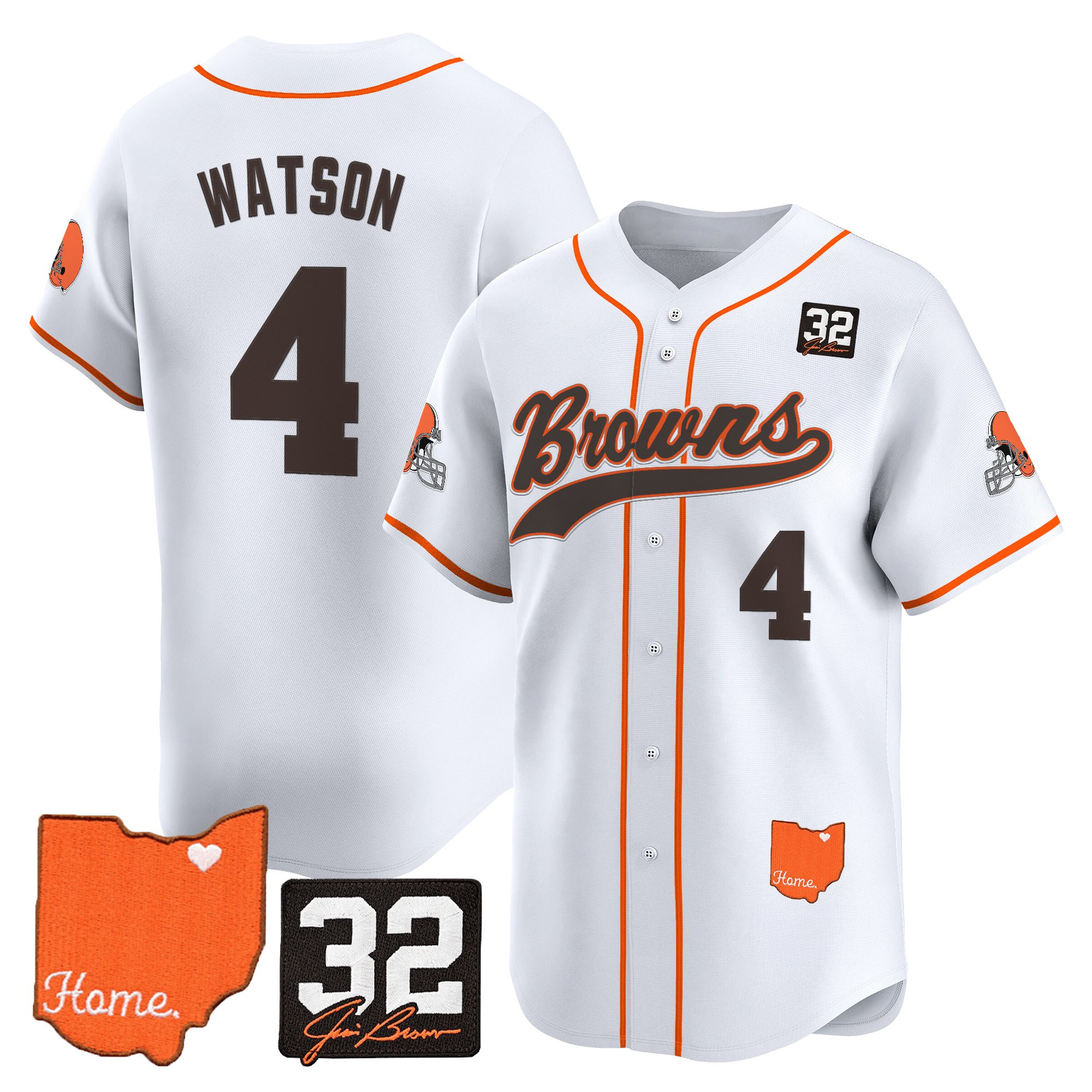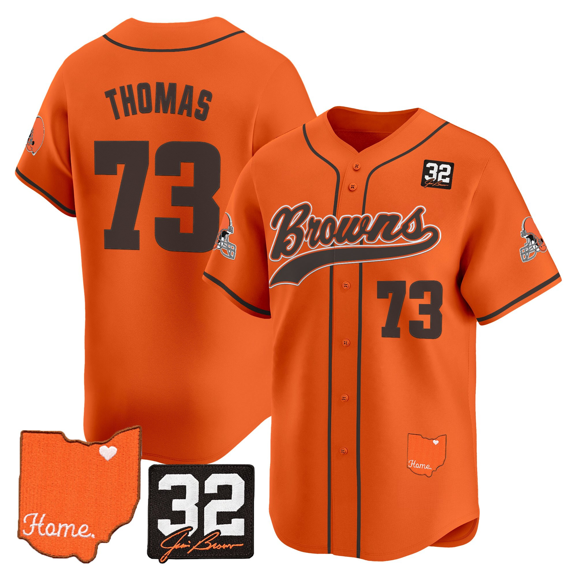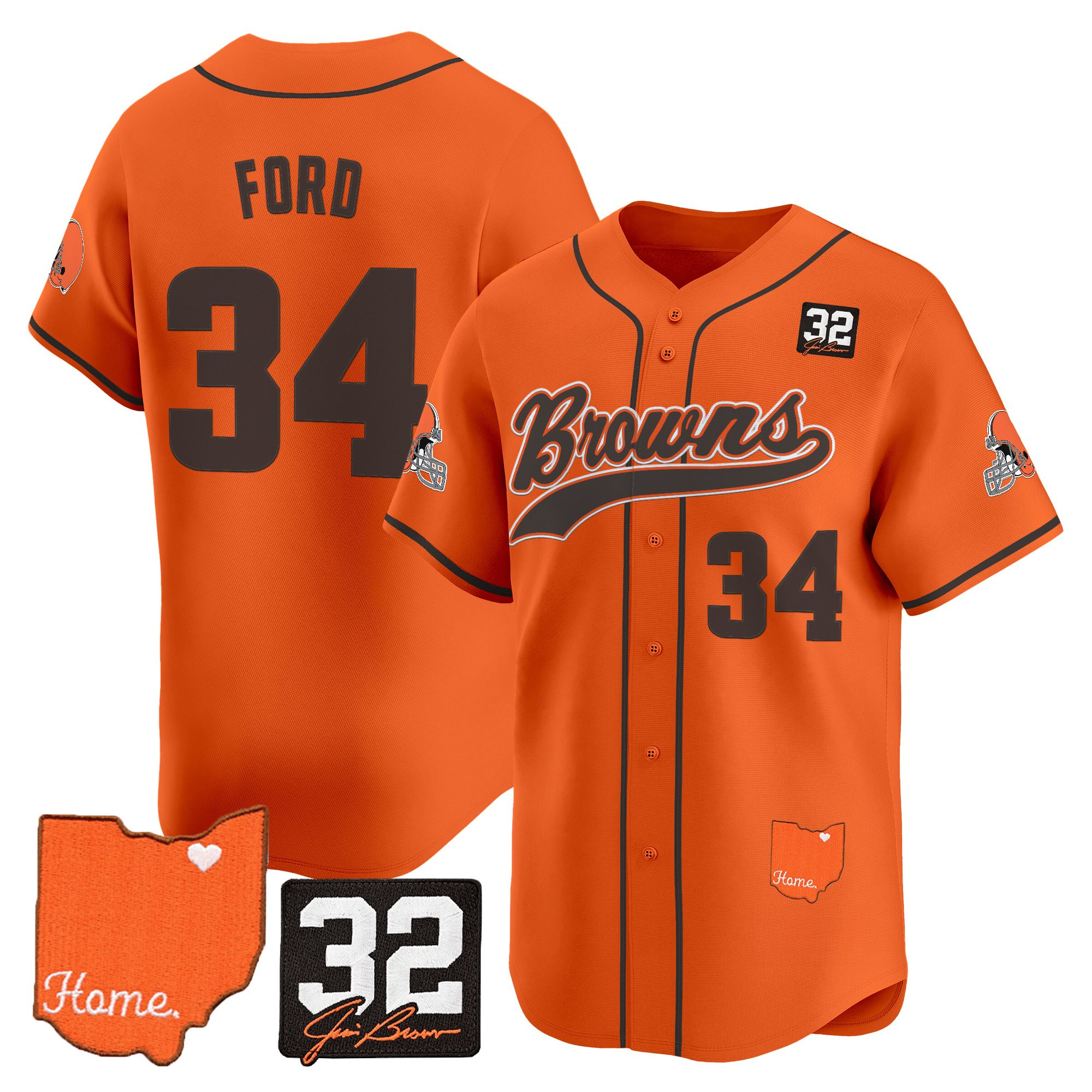 Cleveland Browns ‘#32 Jim Brown Memorial & Home Patch’ Vapor Baseball Custom Jersey – All Stitched