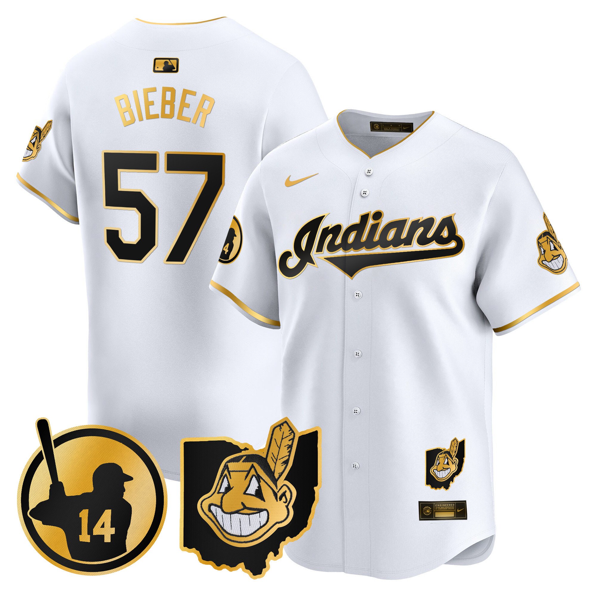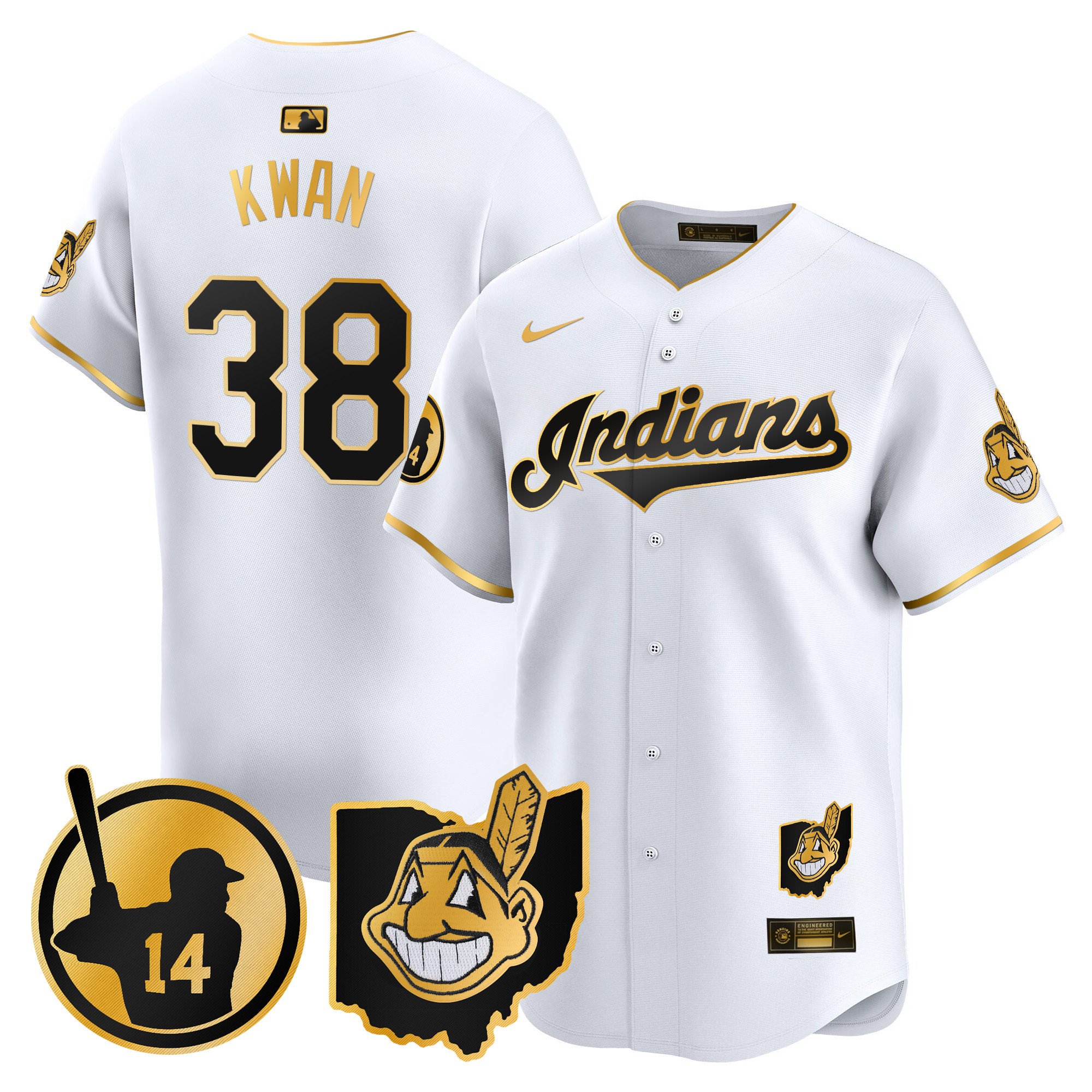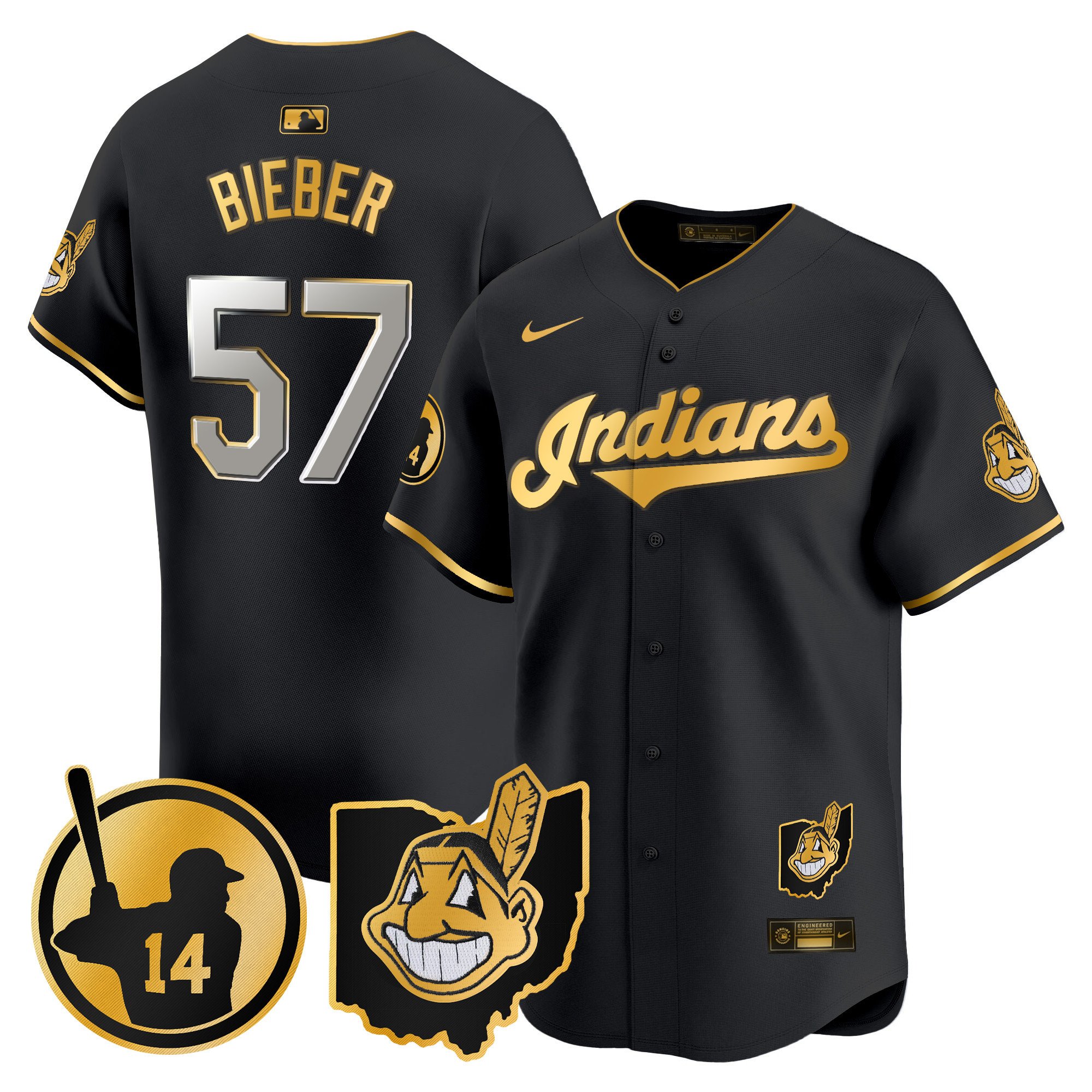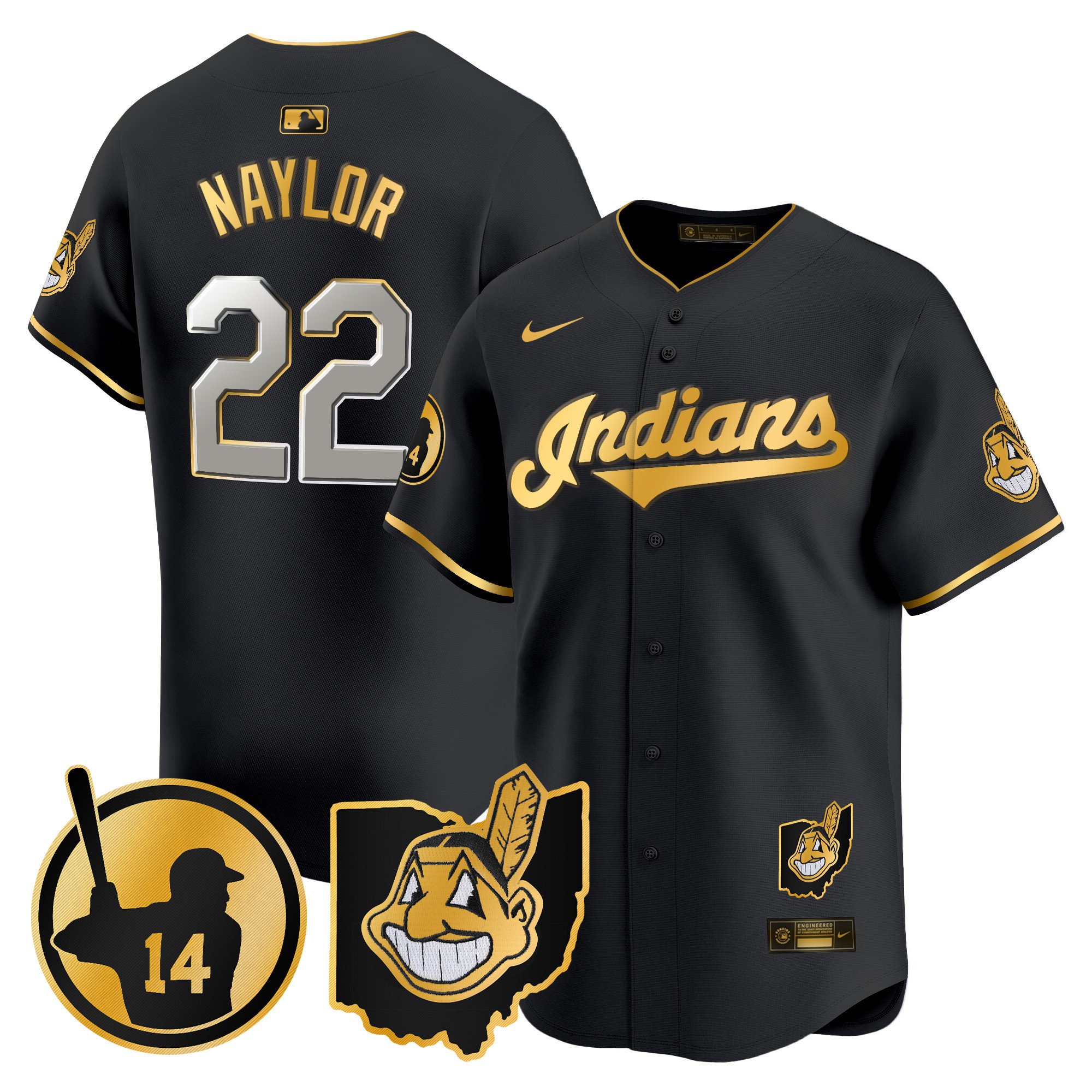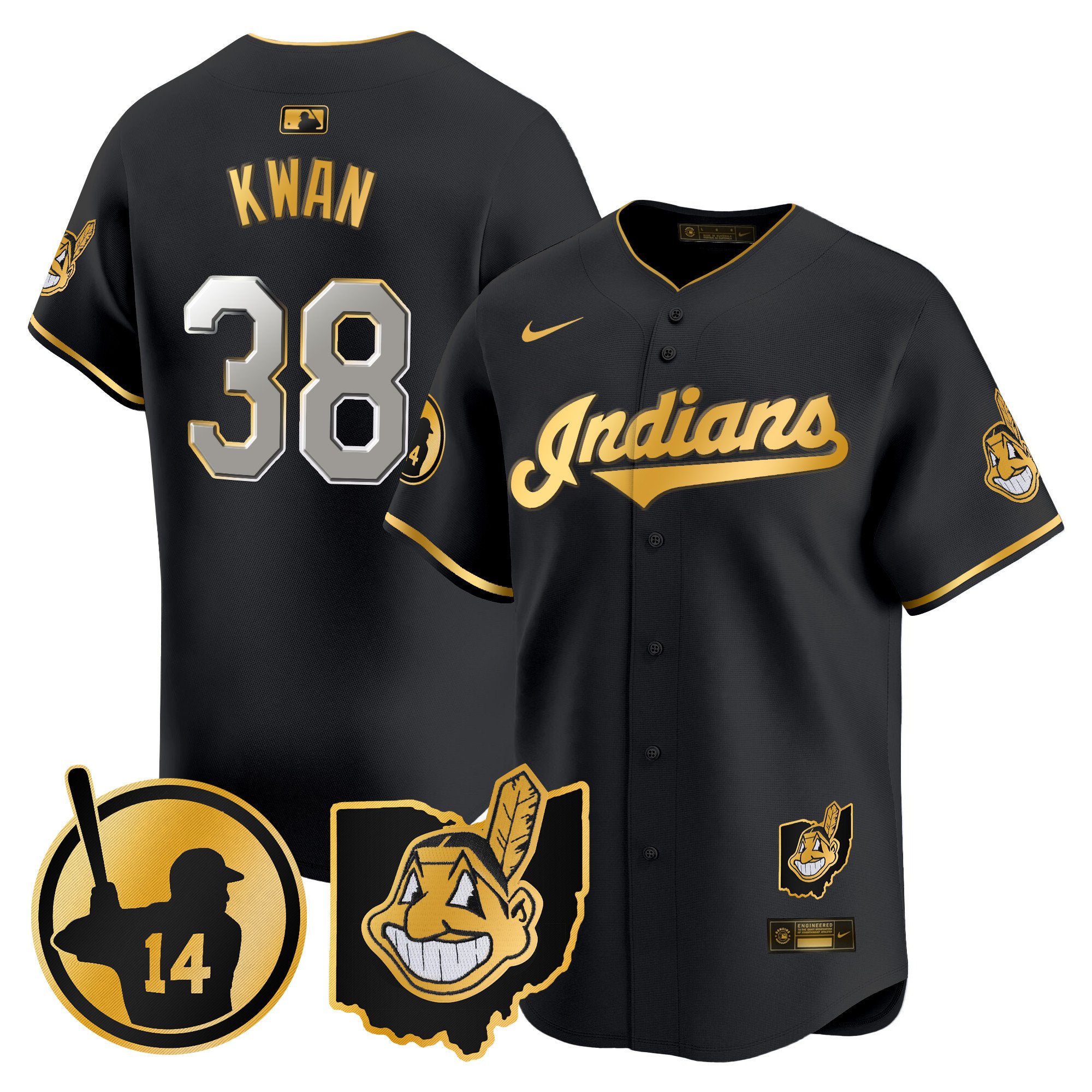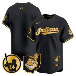Cleveland Indians ‘Gothic Iron Edition’ Gold Vapor Premier Limited Custom Jersey – All Stitched