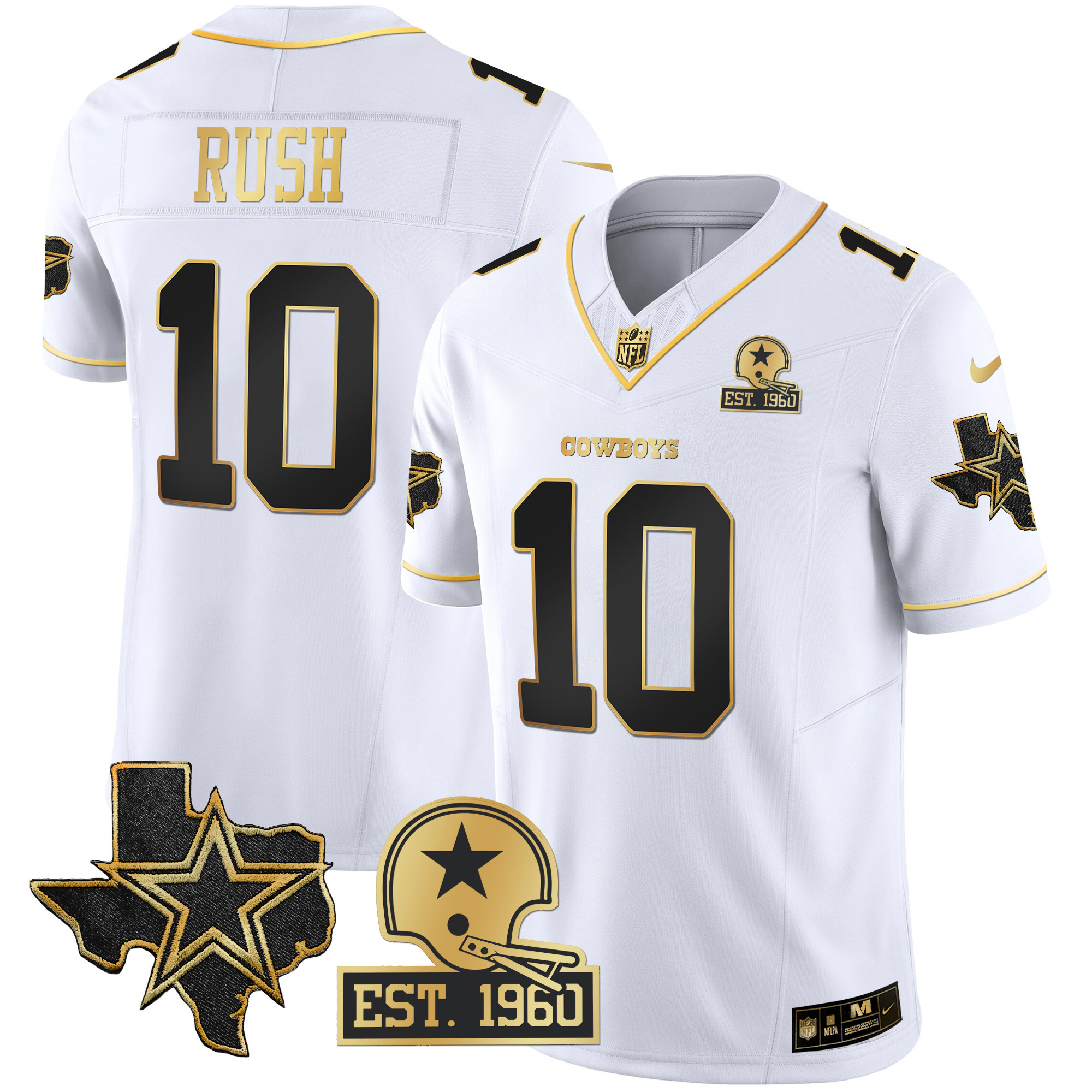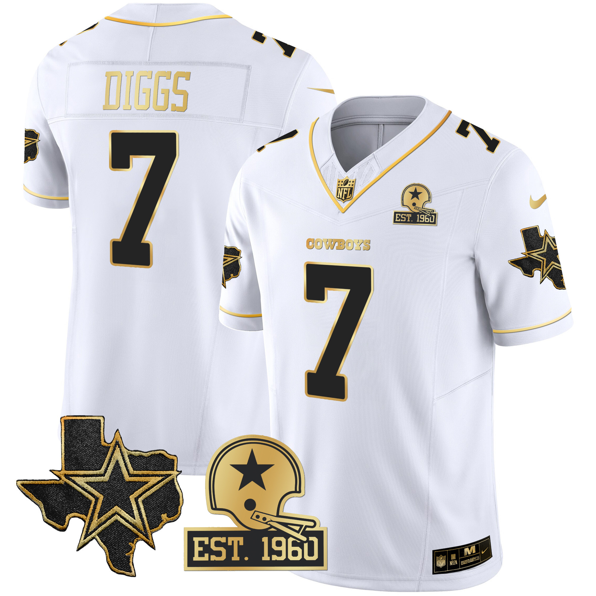 Men’s Cowboys Texas Patch Gold Vapor Jersey – All Stitched
