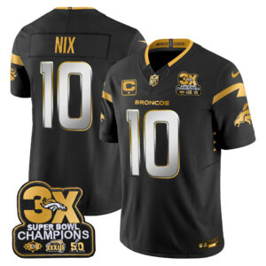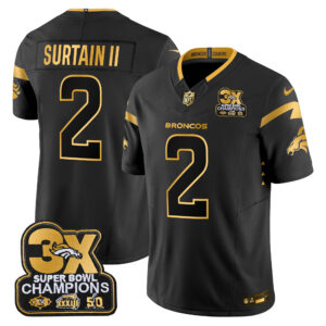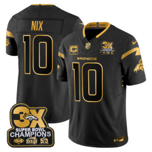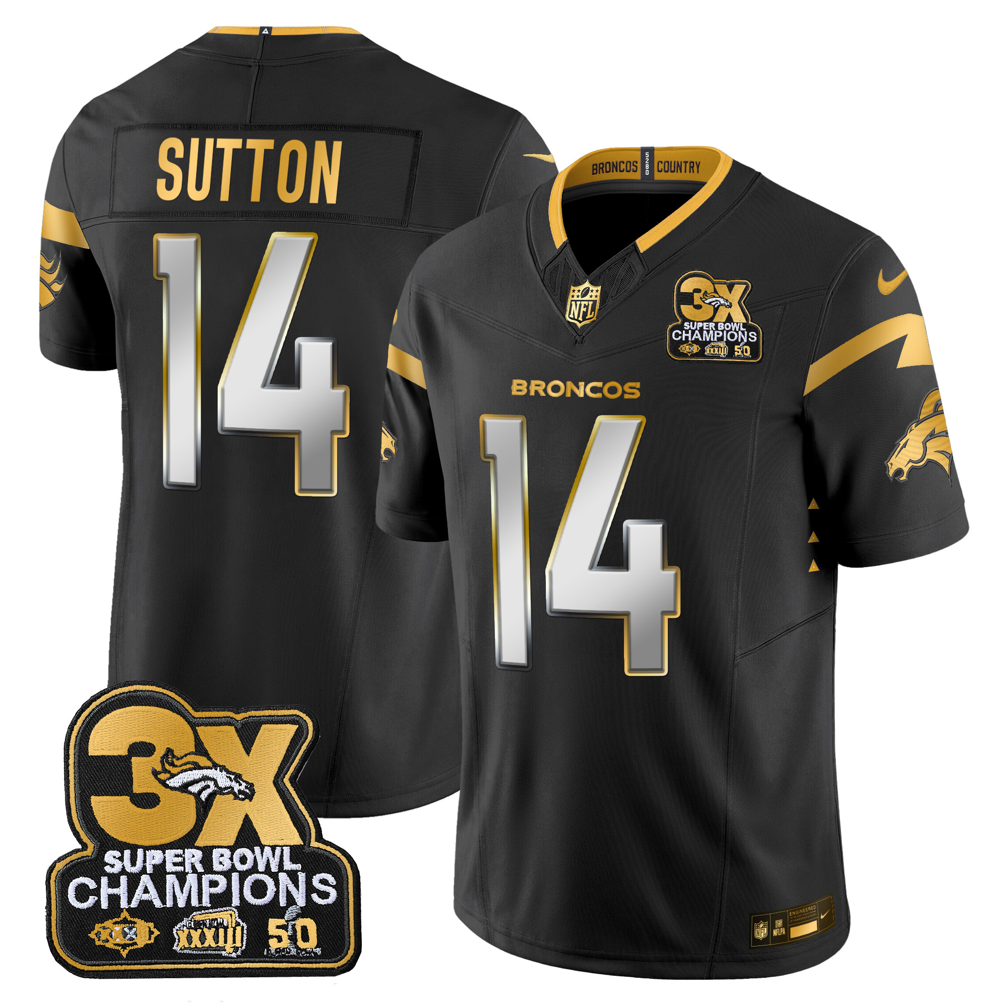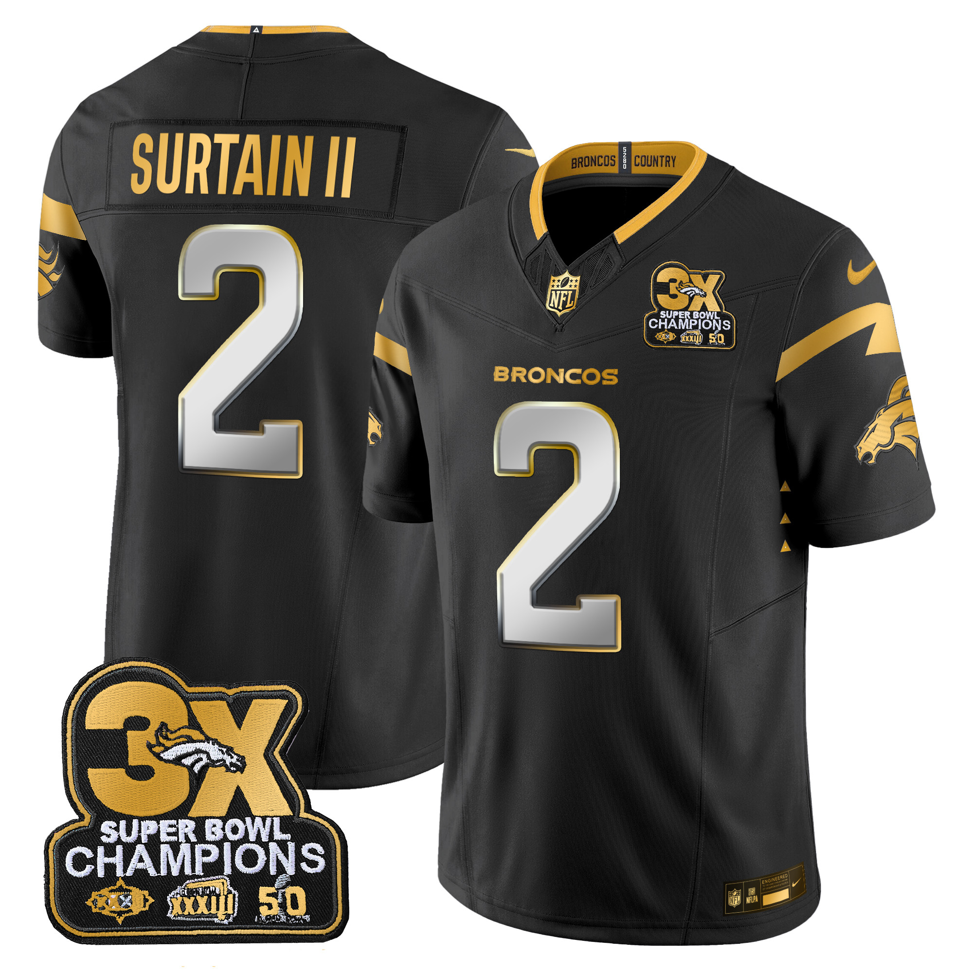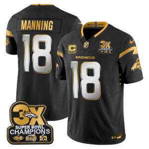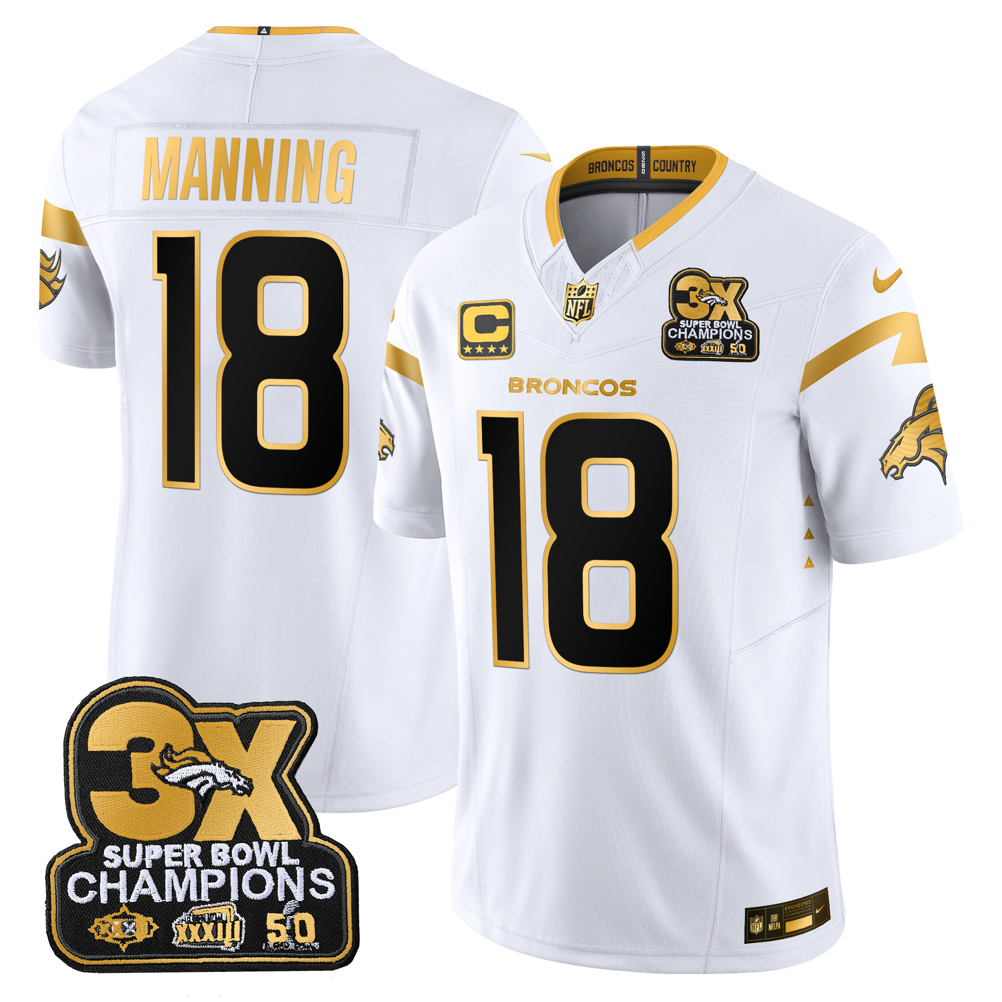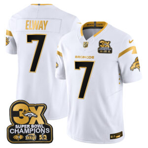 Men’s Denver Broncos 3-Time Champions Patch Gold Vapor Limited Jersey – All Stitched