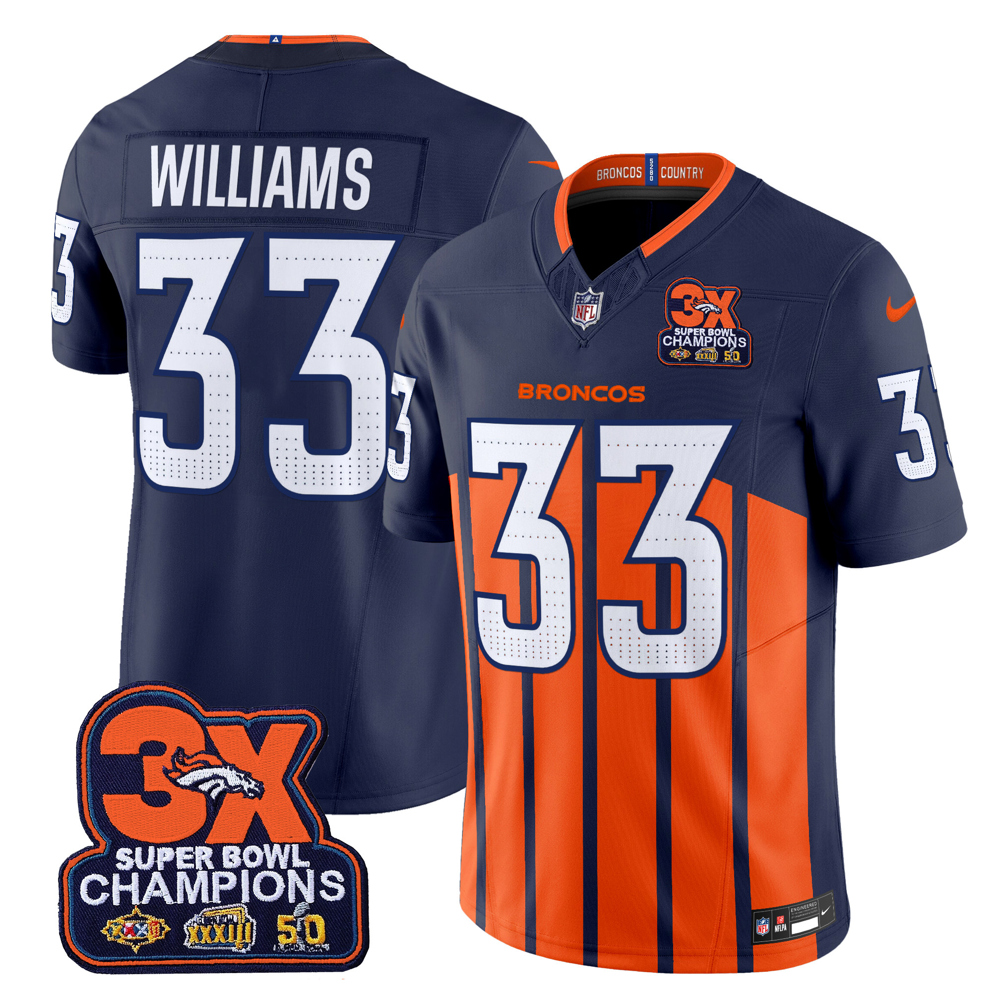 Men’s Denver Broncos 3-Time Champions Patch Vapor Limited Jersey V2 – All Stitched