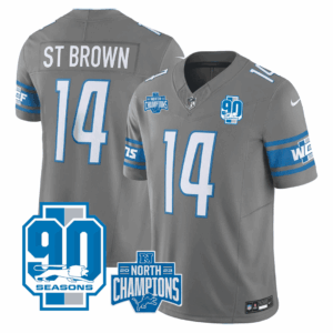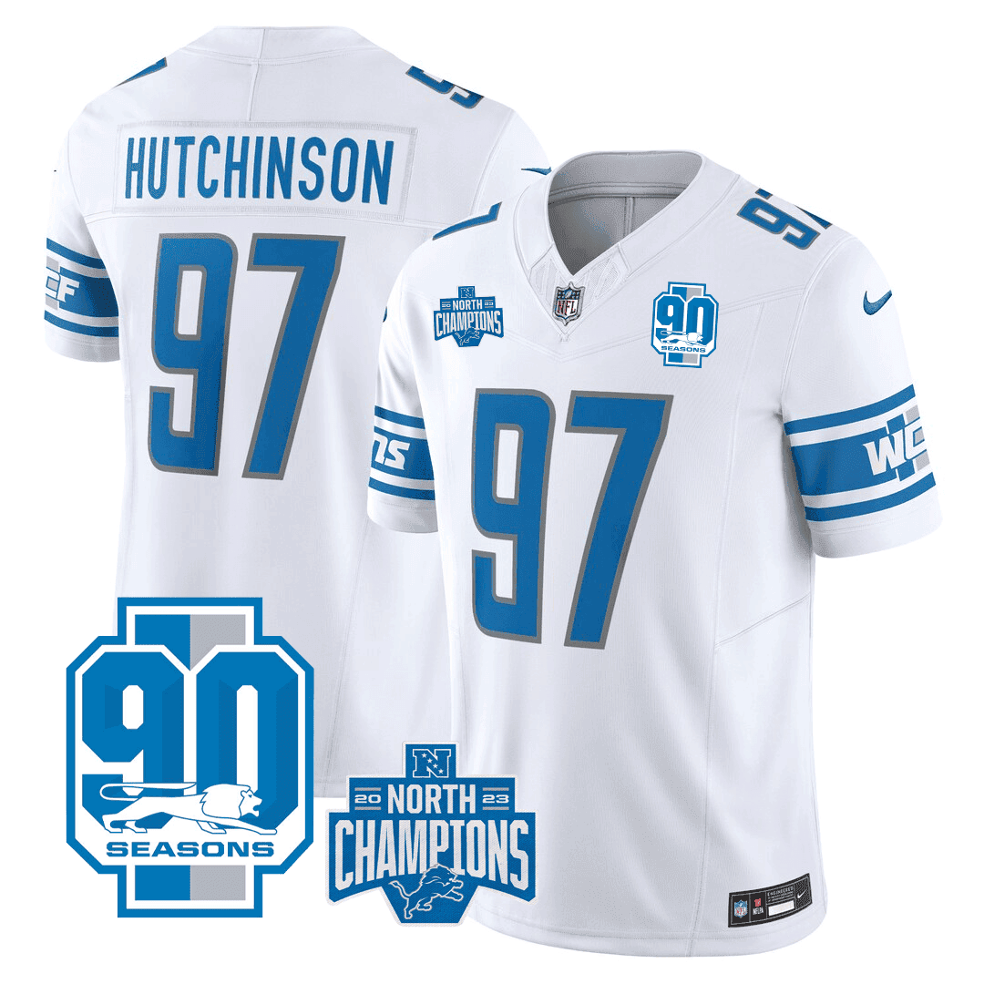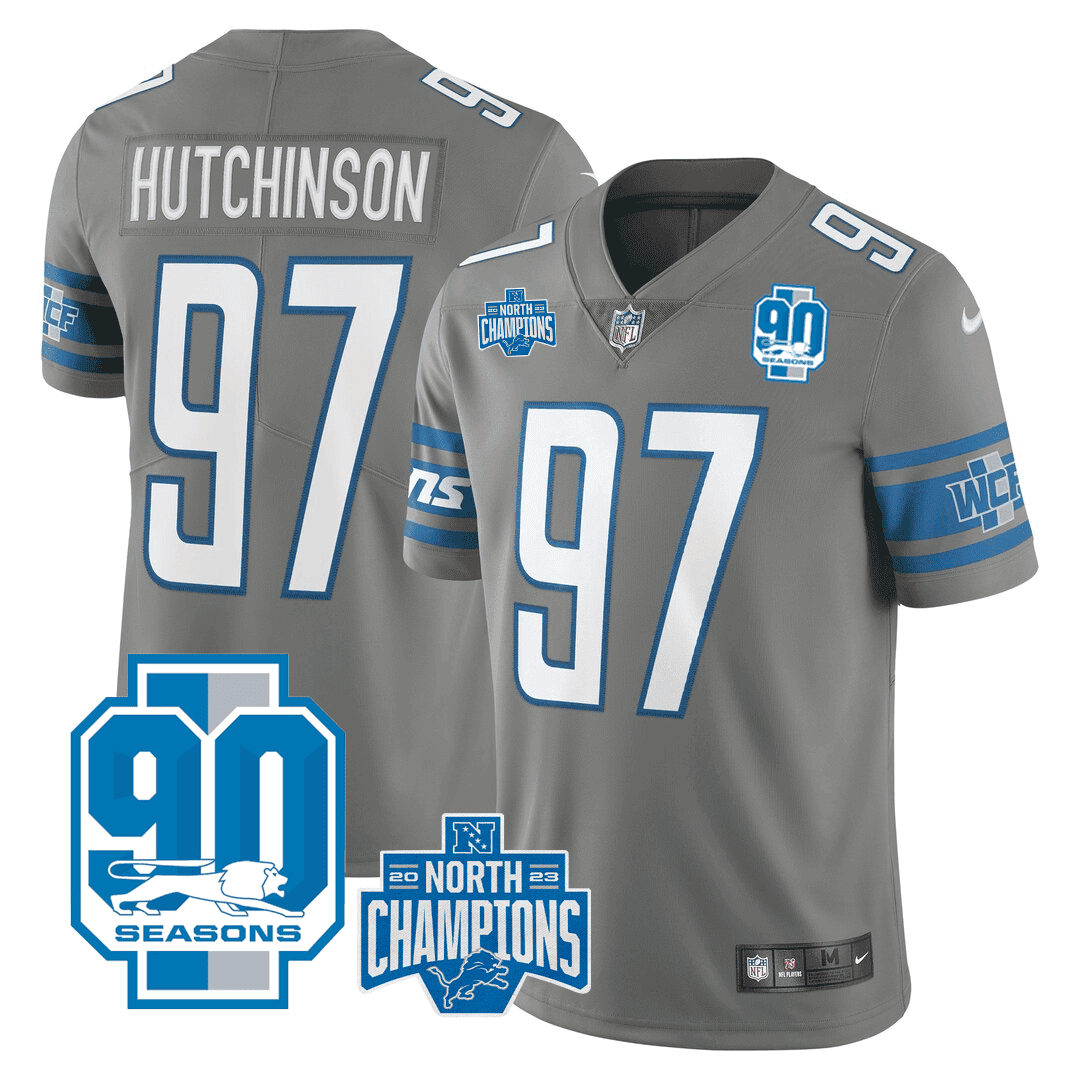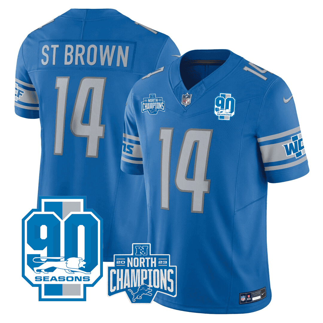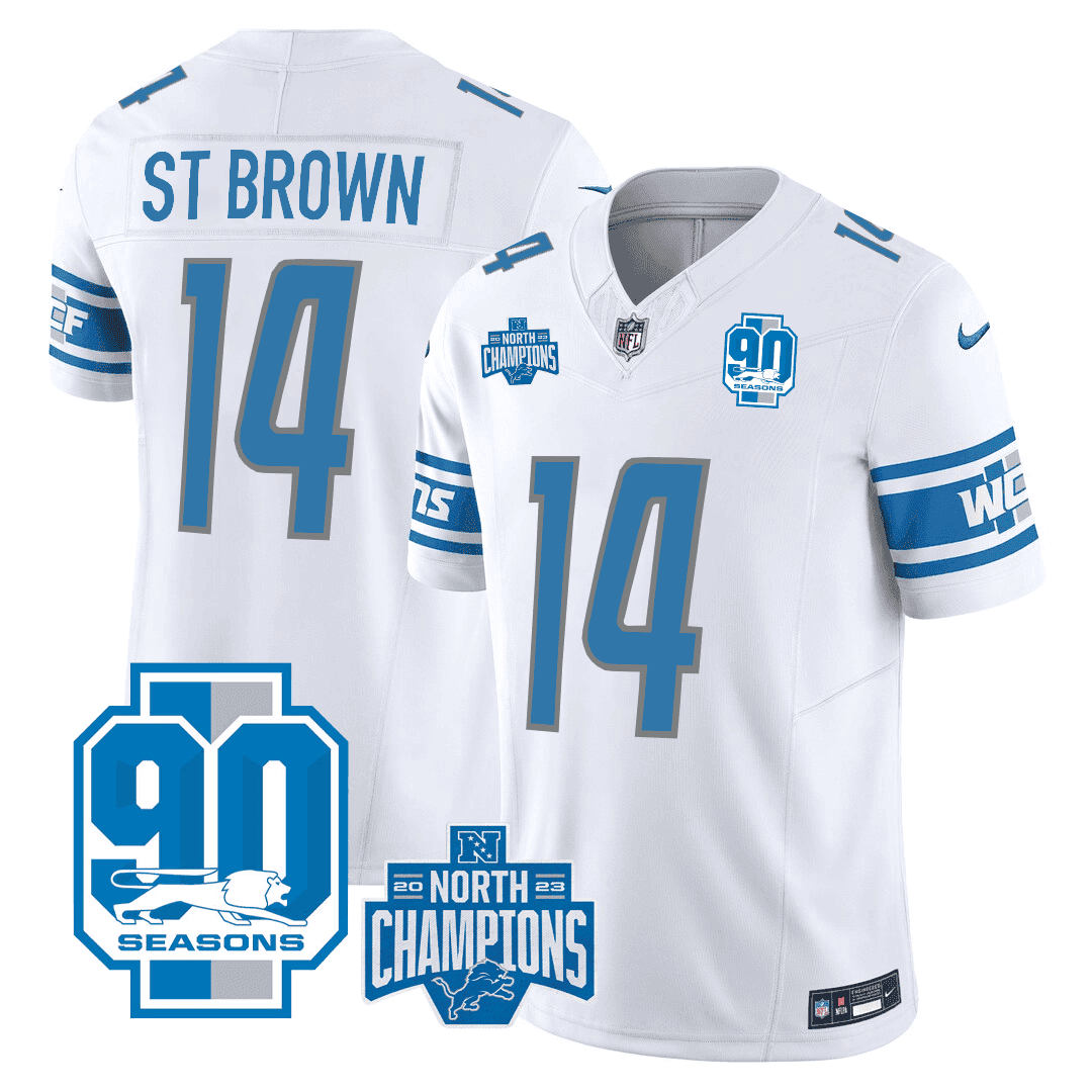 Men’s Detroit Lions 2023 NFC North Division Champions & 90th Year Patch Vapor Jersey – All Stitched