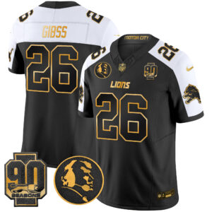 Men’s Detroit Lions 2024 90th & John Madden Patch Gold Vapor Limited Jersey V2 – All Stitched