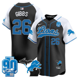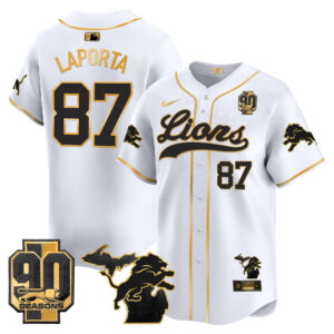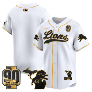 Men’s Detroit Lions 2024 Michigan & 90th Season Patch Gold Baseball Jersey – All Stitched