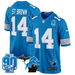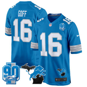 Men’s Detroit Lions 2024 Michigan & 90th Year Patch Game Jersey – All Stitched