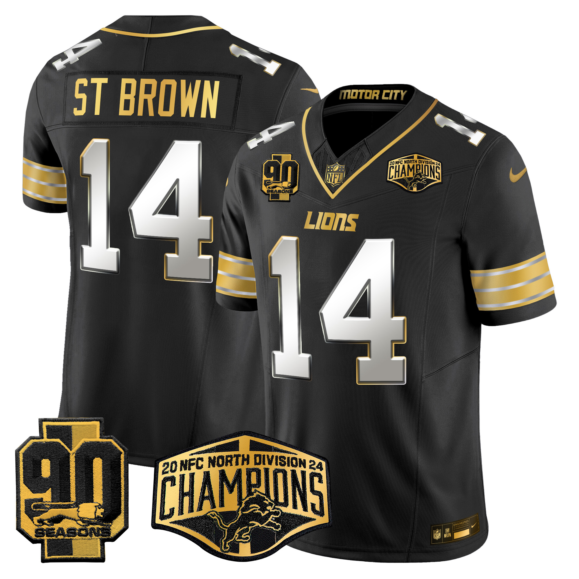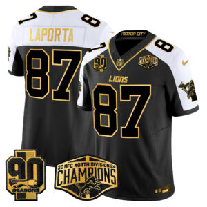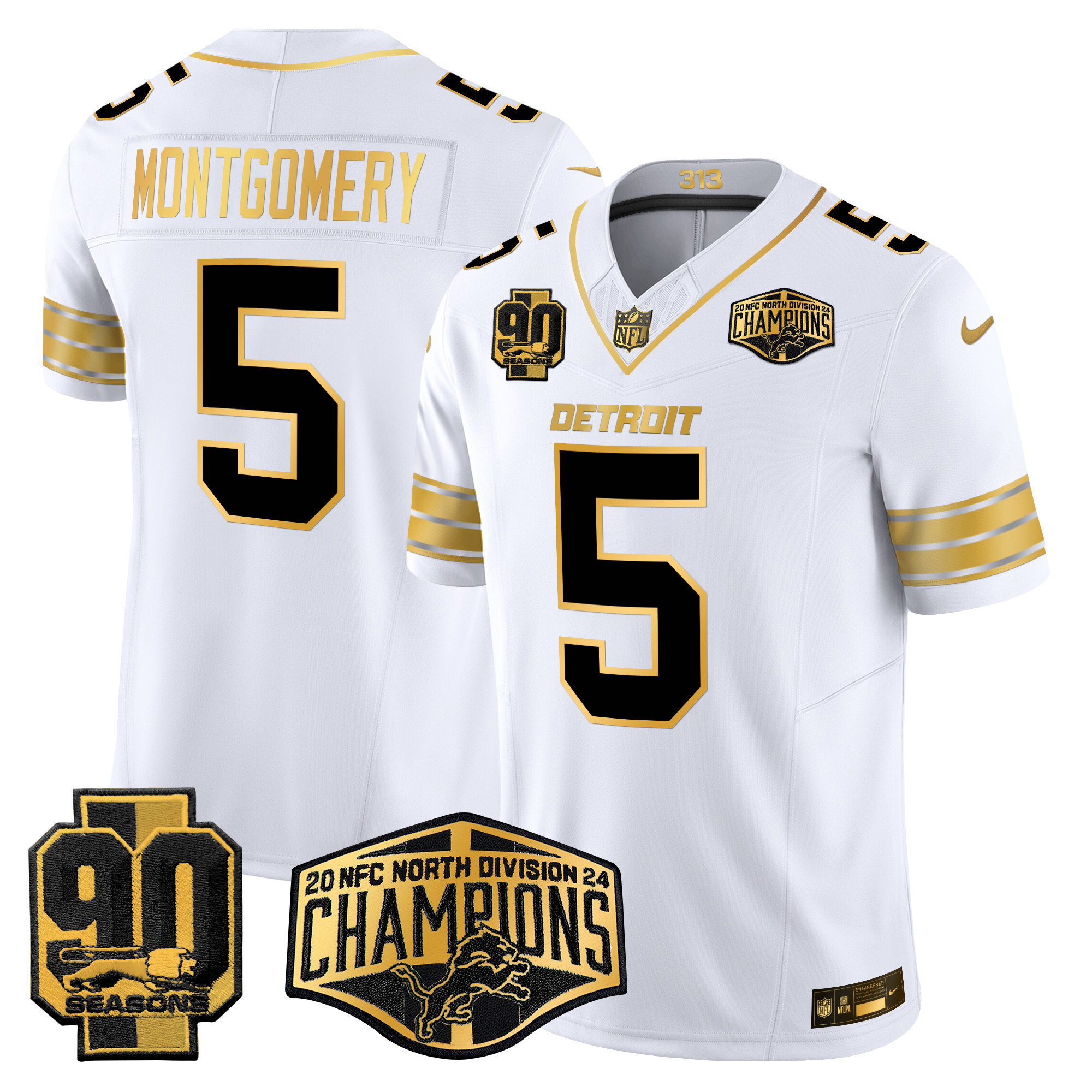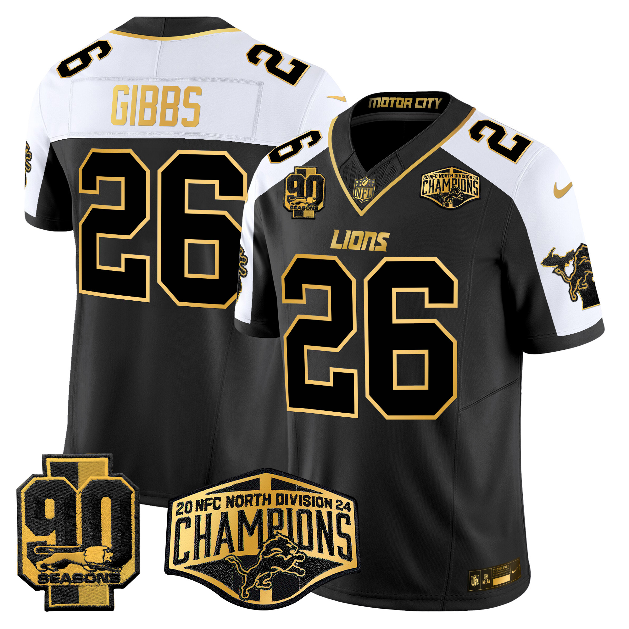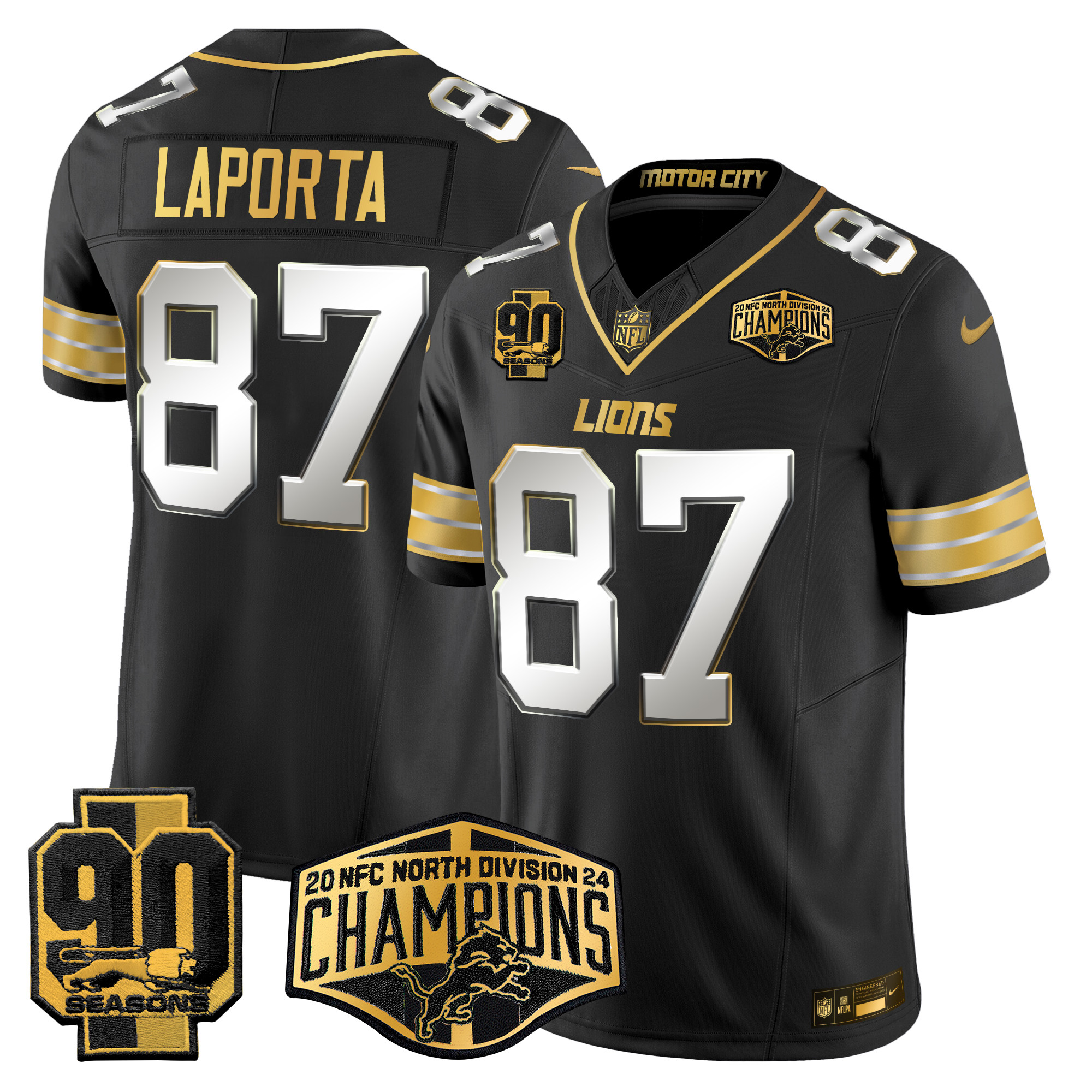 Men’s Detroit Lions 2024 NFC North Division Champions Patch Gold Vapor Limited Jersey – All Stitched