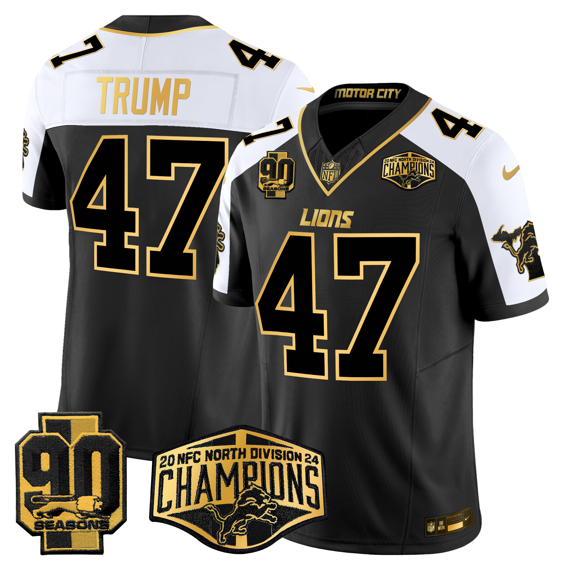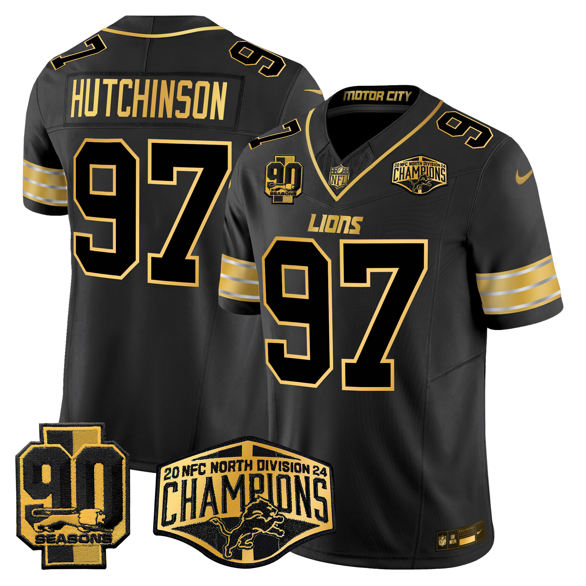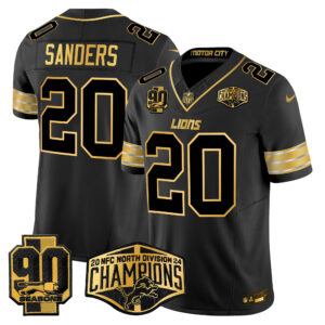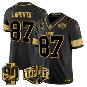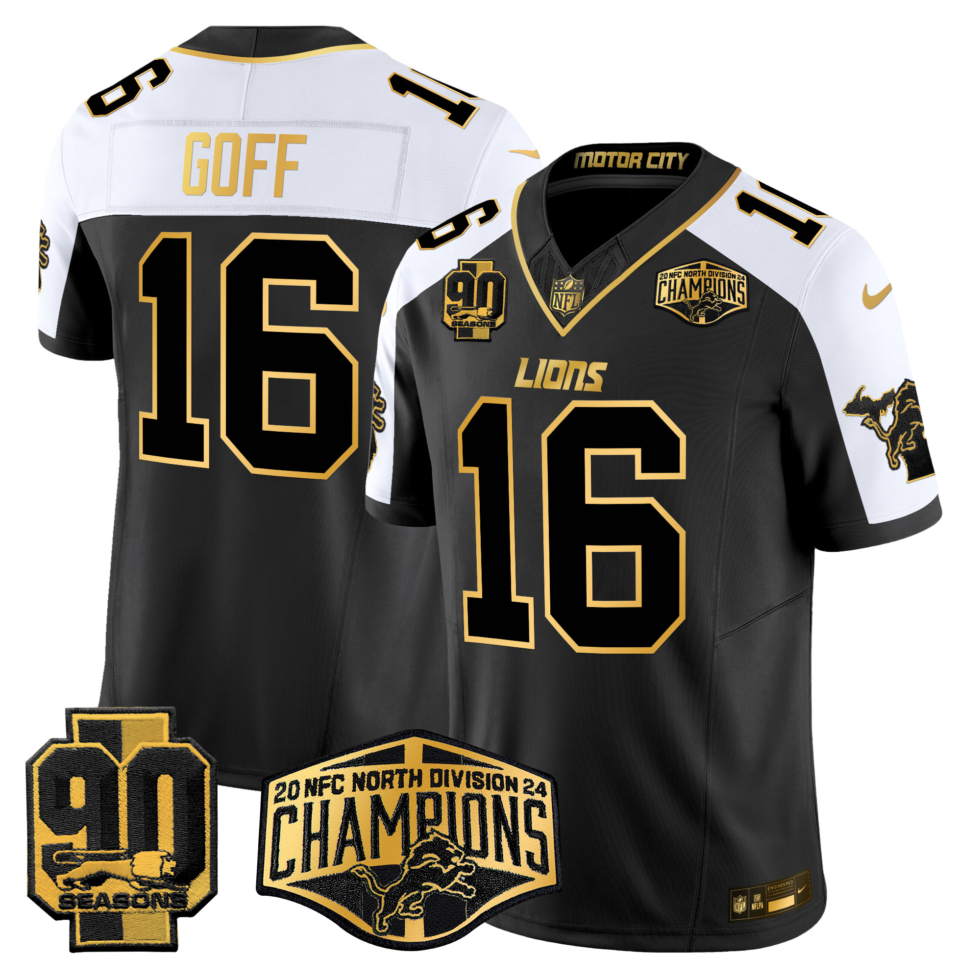 Men’s Detroit Lions 2024 NFC North Division Champions Patch Gold Vapor Limited Jersey – All Stitched