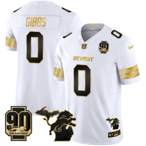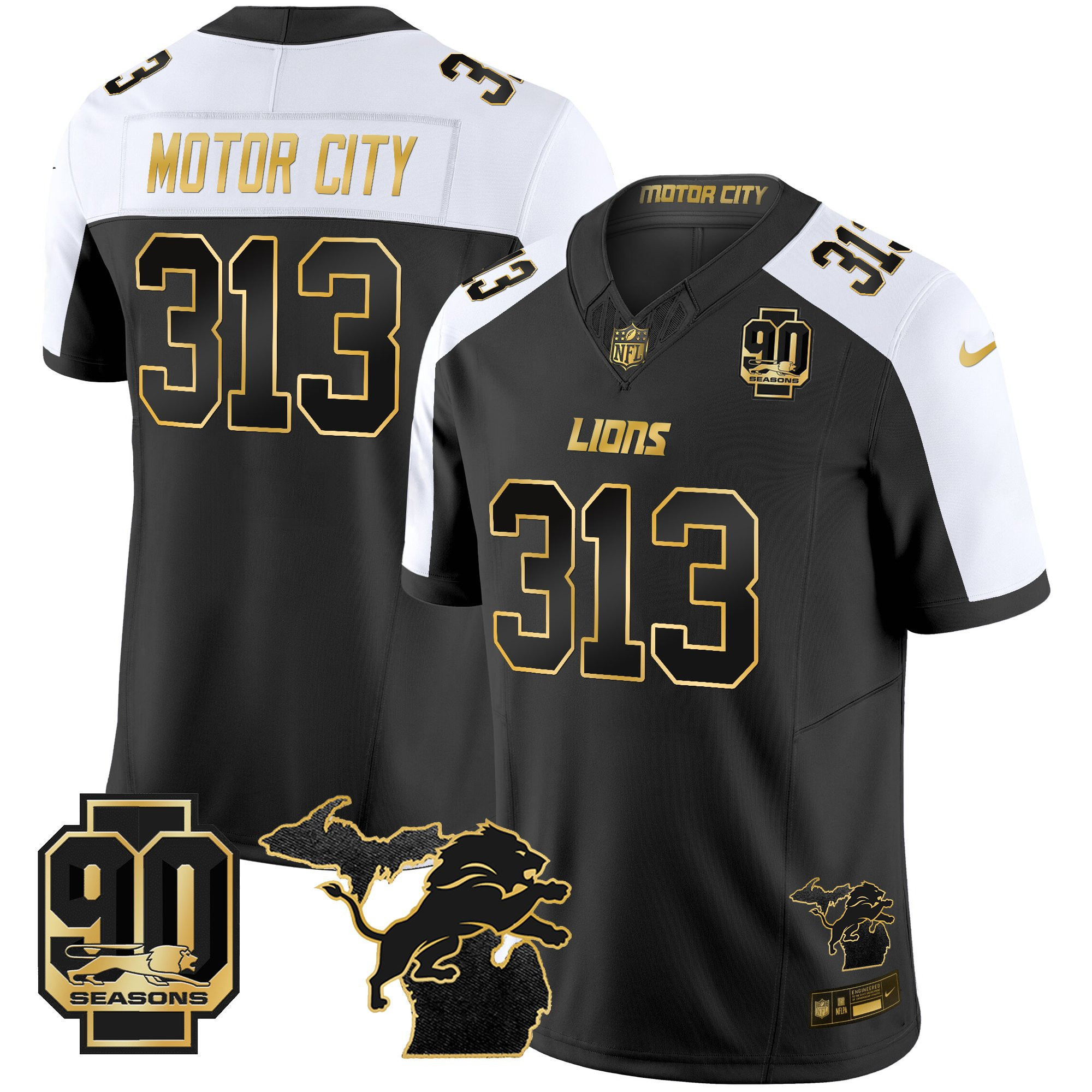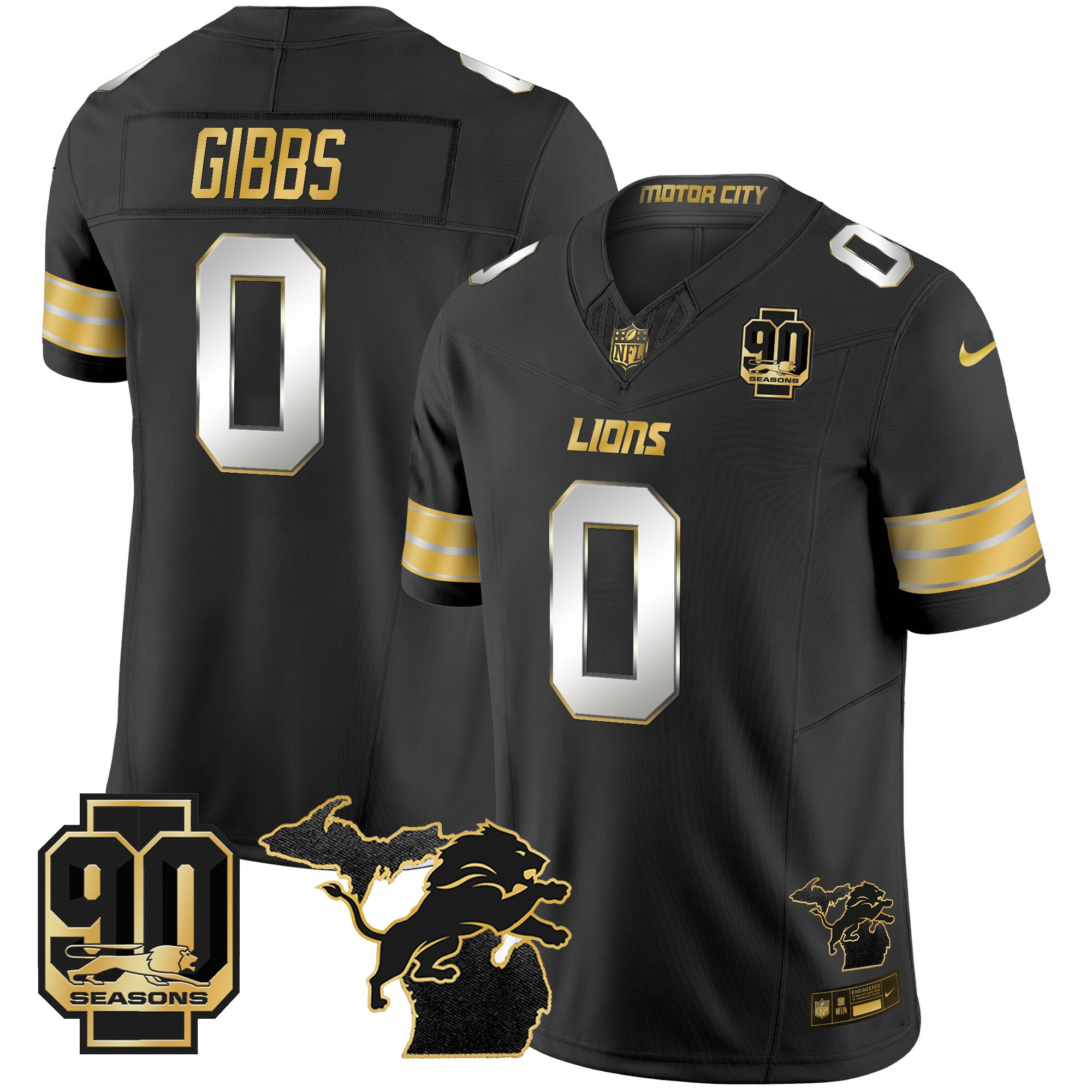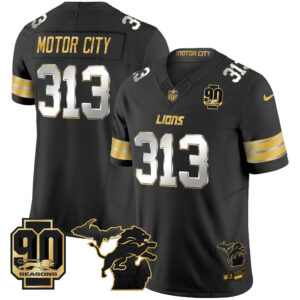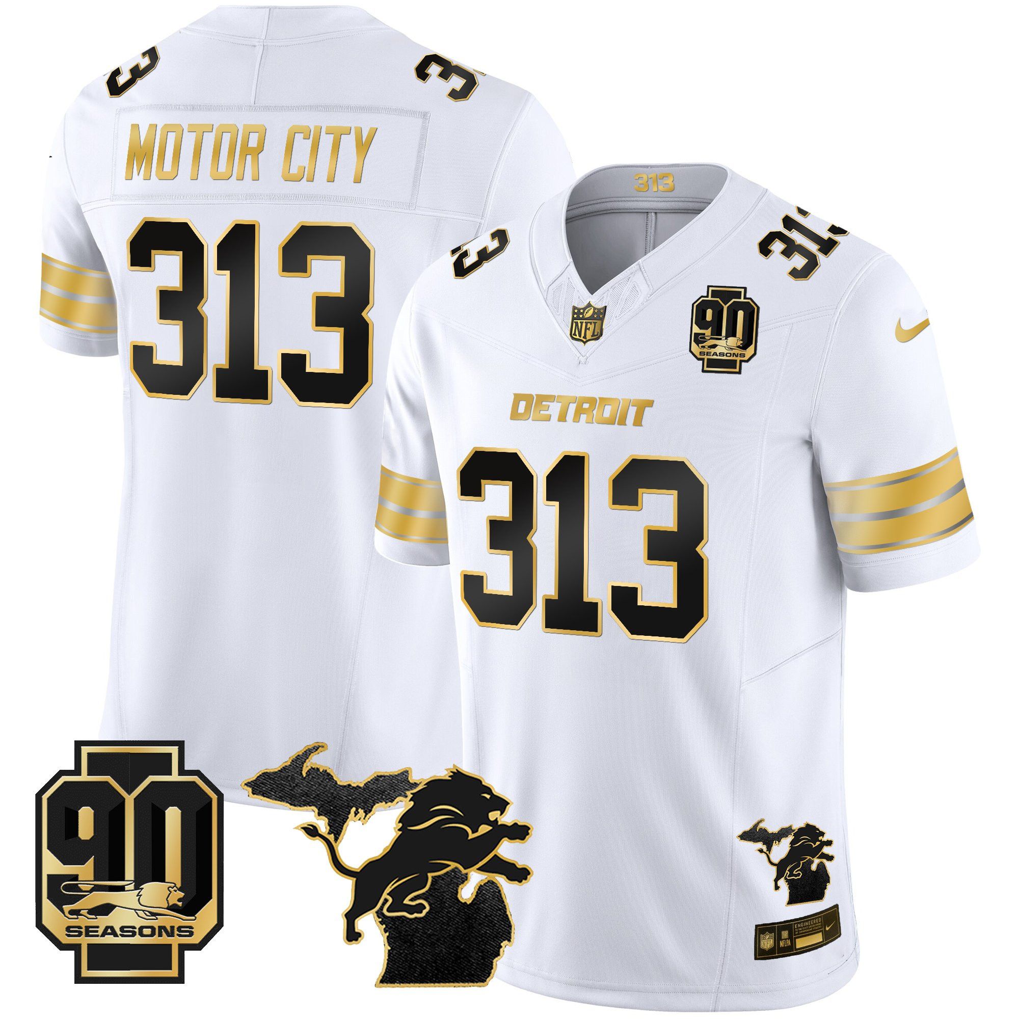 Men’s Detroit Lions 2025 Michigan & 90th Season Patch Gold Vapor Limited Jersey – All Stitched