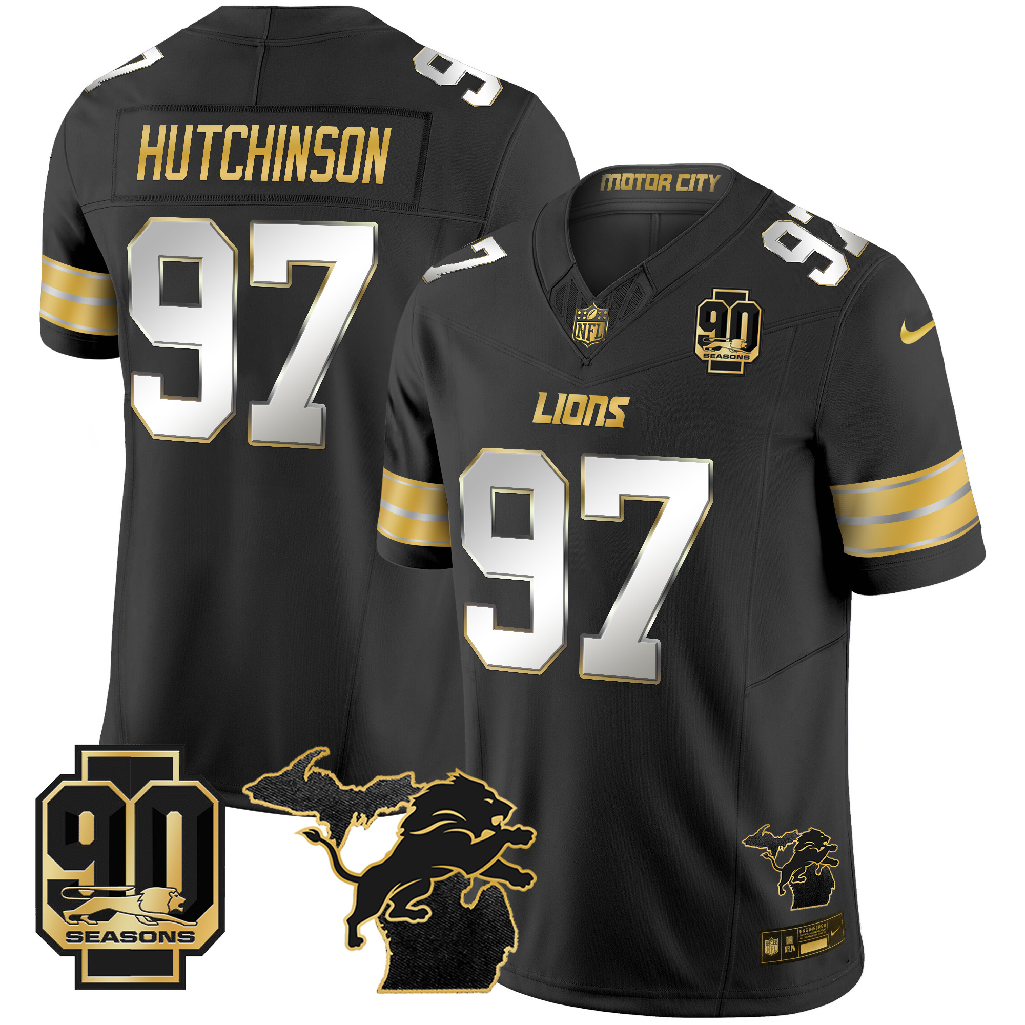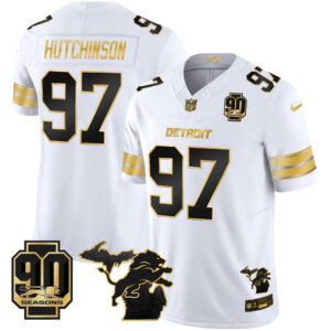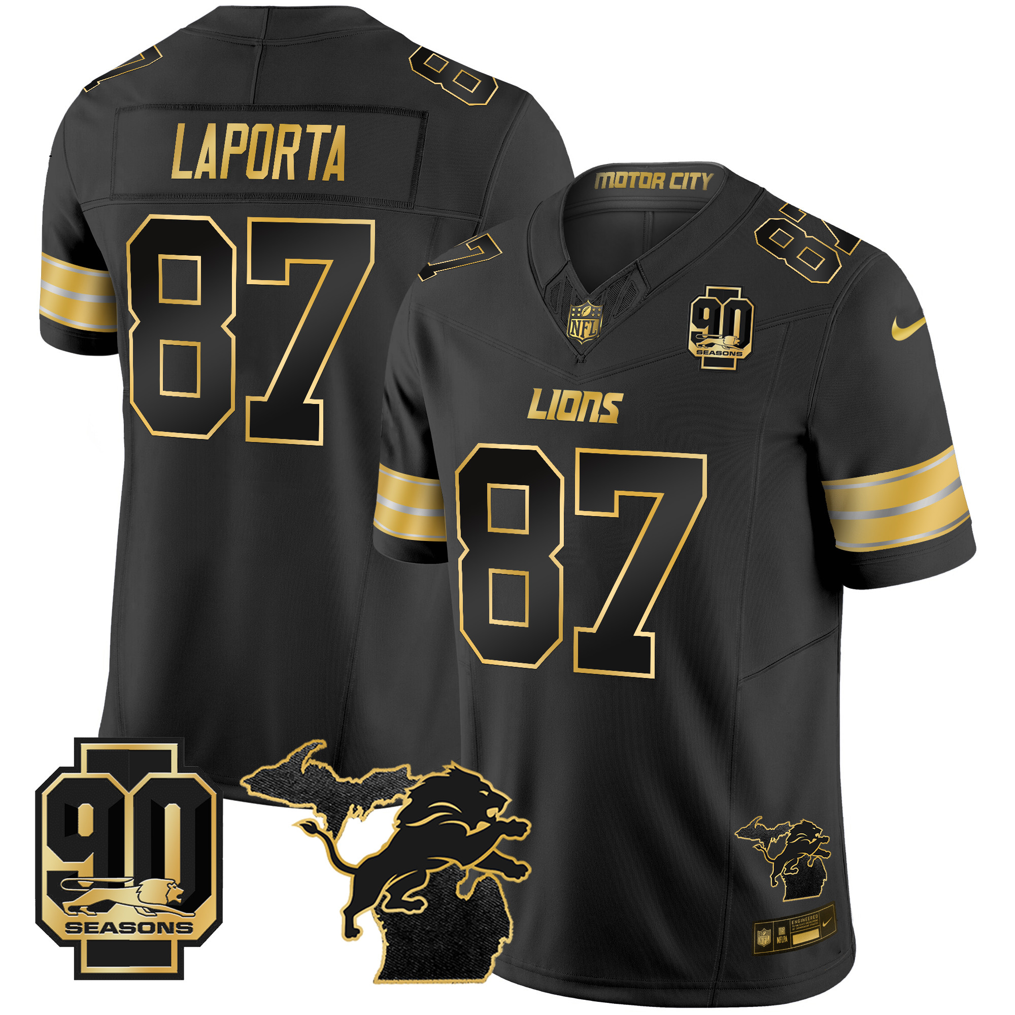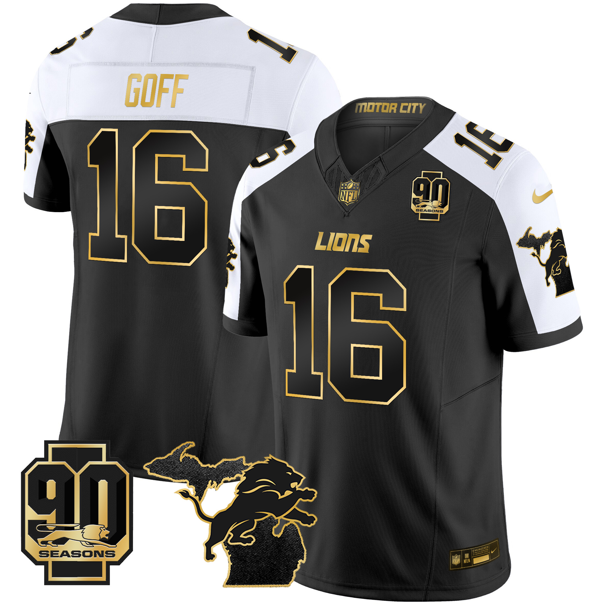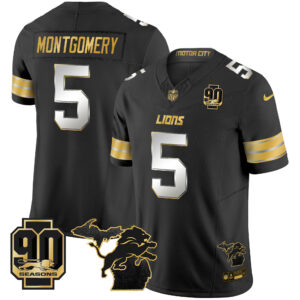 Men’s Detroit Lions 2025 Michigan & 90th Season Patch Gold Vapor Limited Jersey – All Stitched