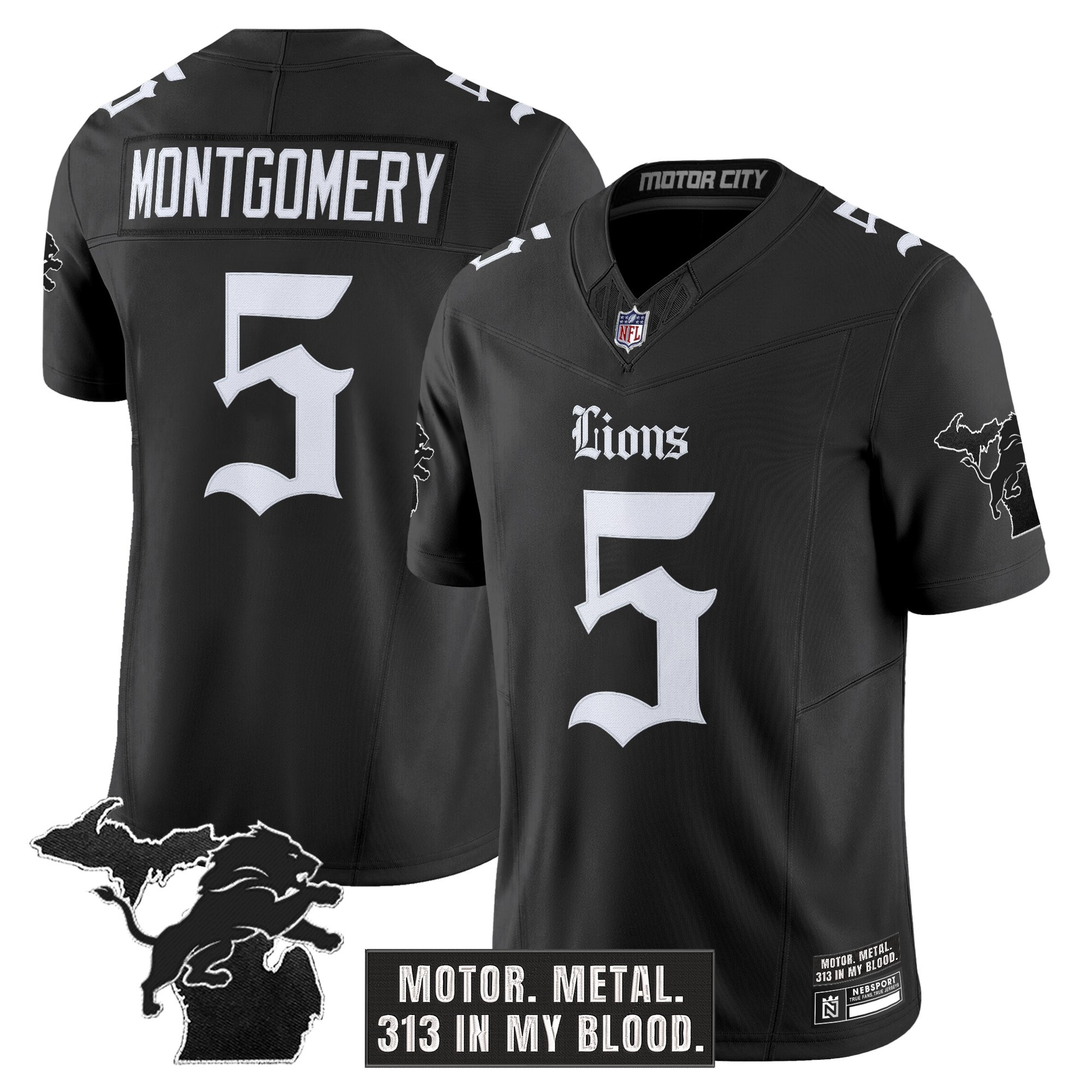 Detroit Lions ‘Gothic Motor Grit Edition’ Vapor Limited Custom Jersey V2 – All Stitched
