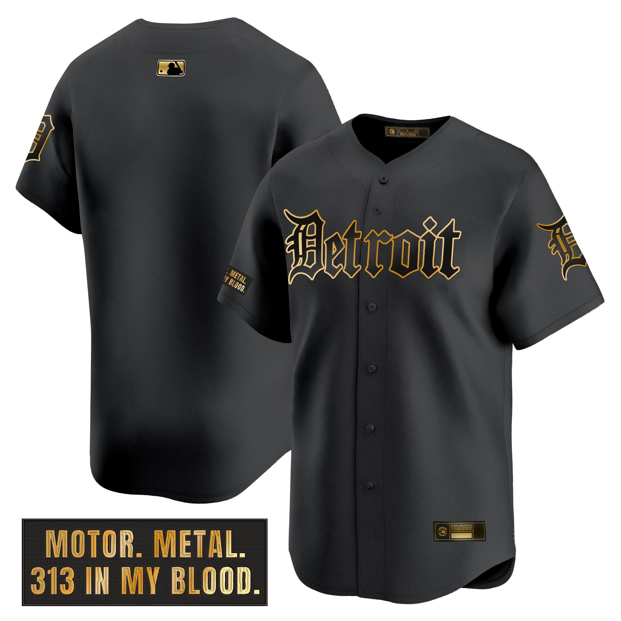 Men’s Detroit Tigers ‘Motor Gothic Edition’ Gold Vapor Premier Limited Jersey – All Stitched