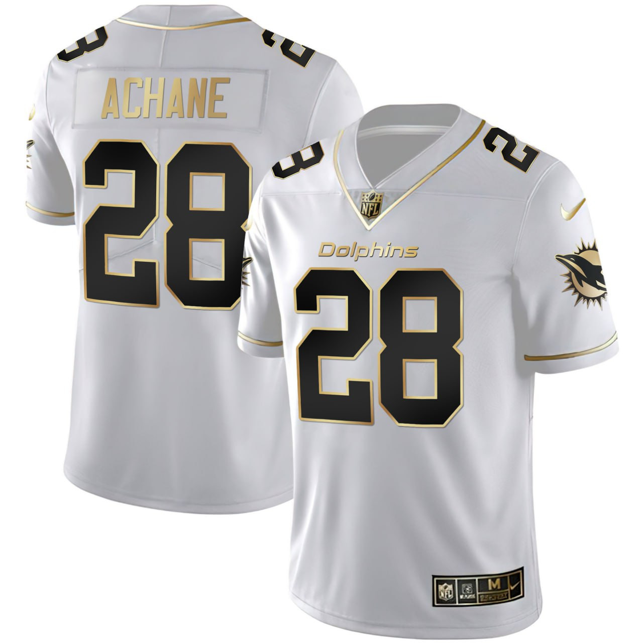 Men’s De’Von Achane #28 Dolphins White Gold Jersey – All Stitched
