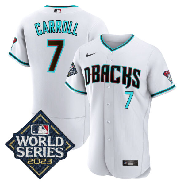 Men’s Diamondbacks White 2023 World Series Jersey – All Stitched