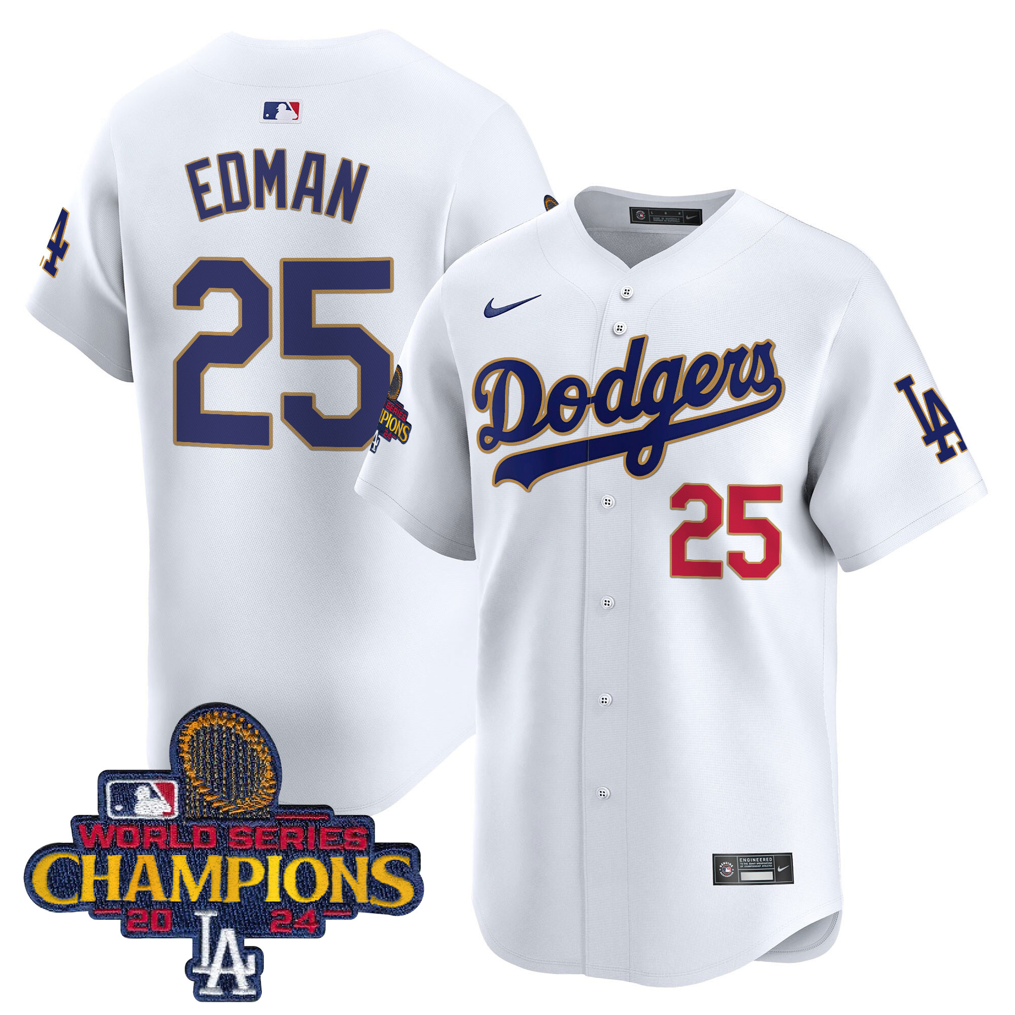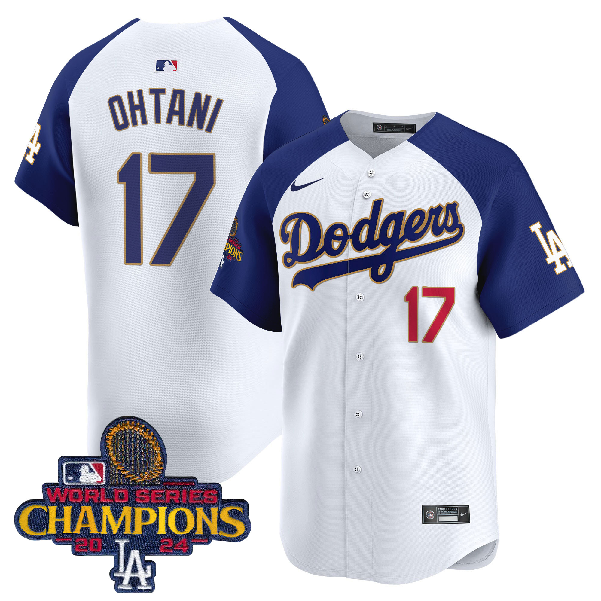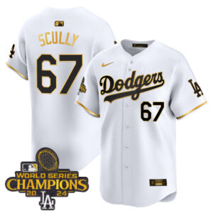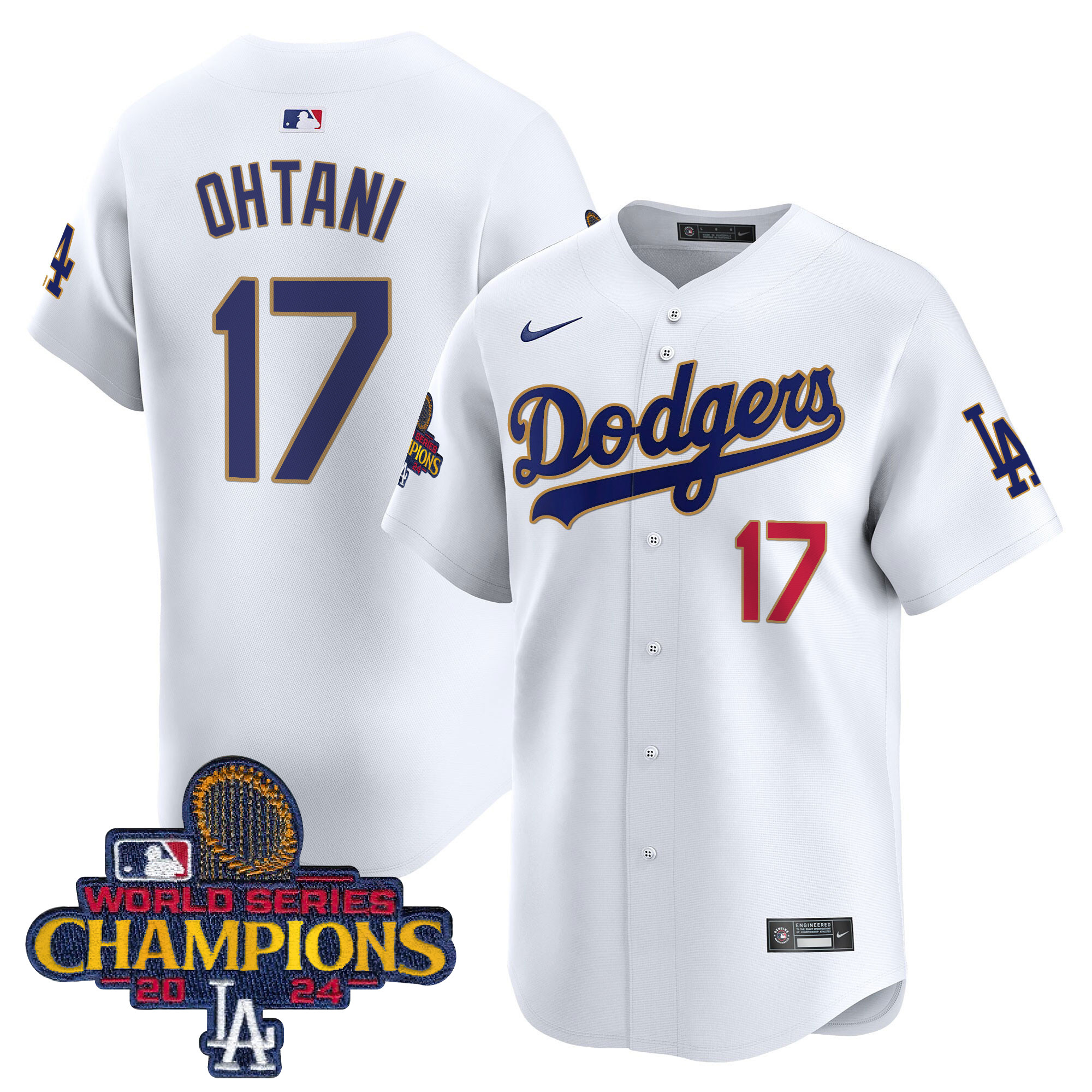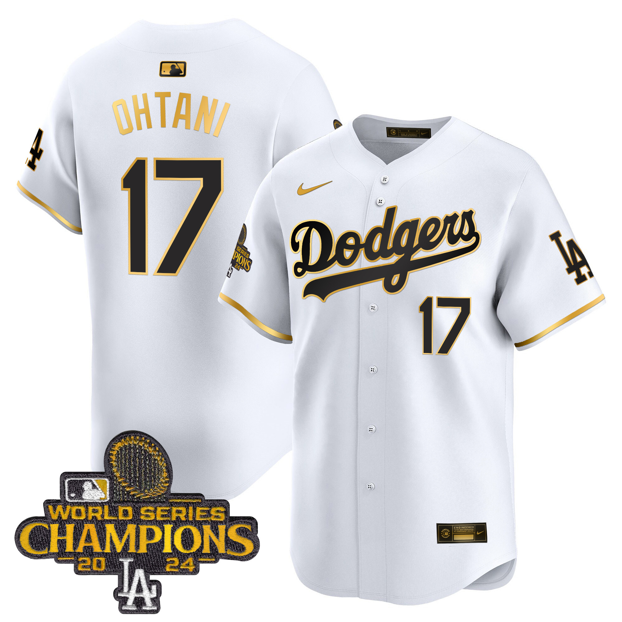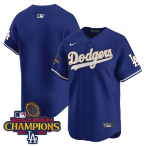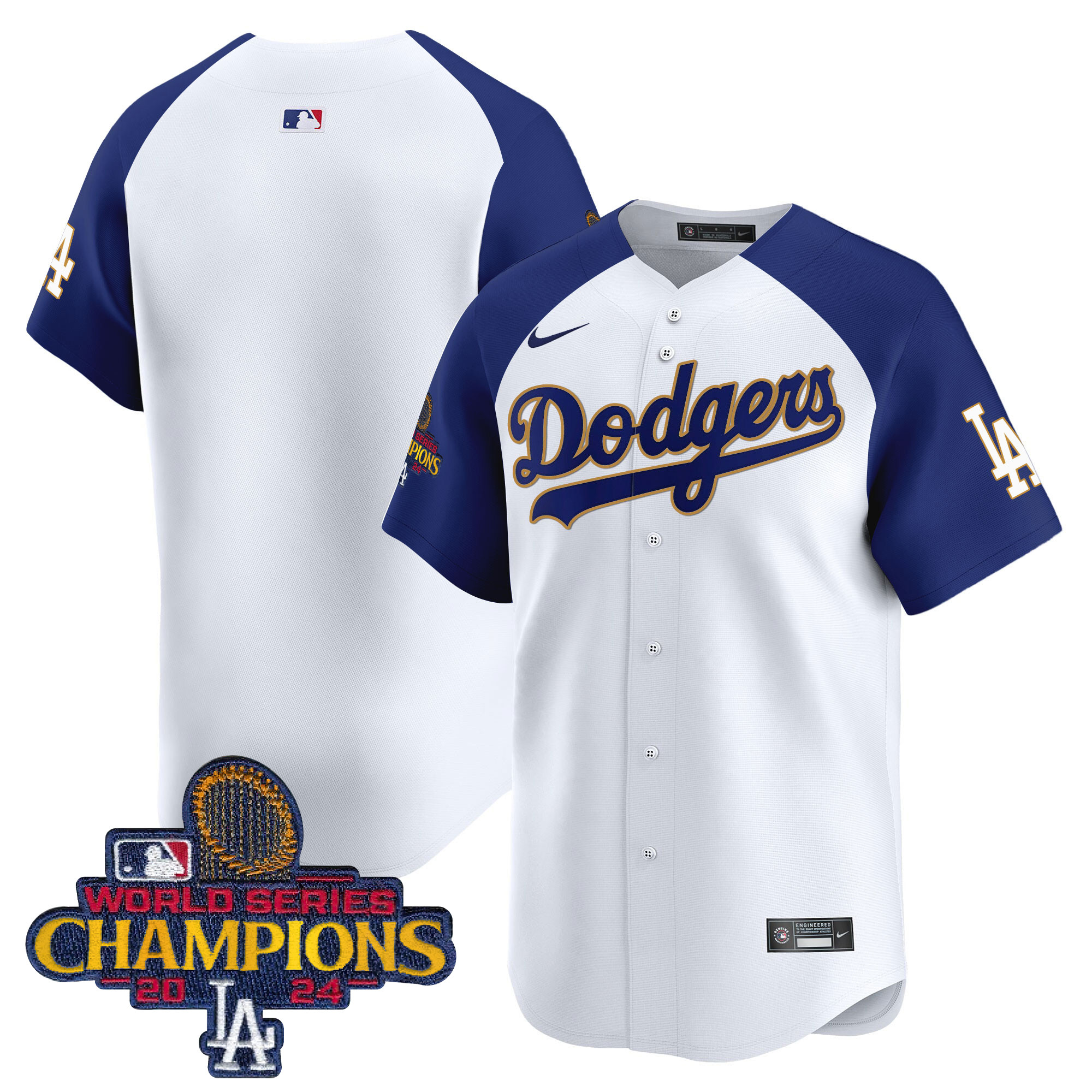 Men’s Dodgers 2024 World Series Champions Gold Trim Vapor Premier Limited Jersey – All Stitched