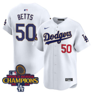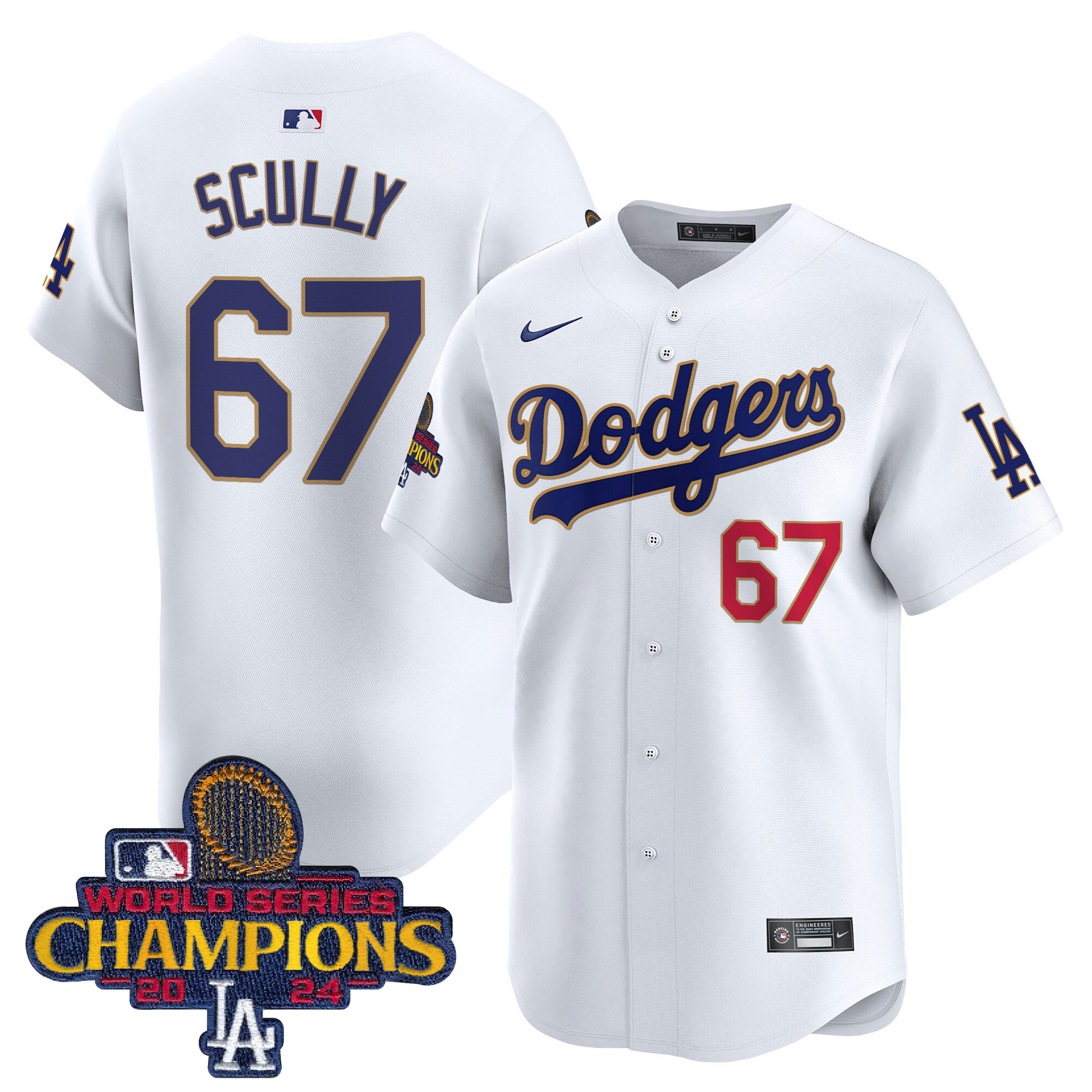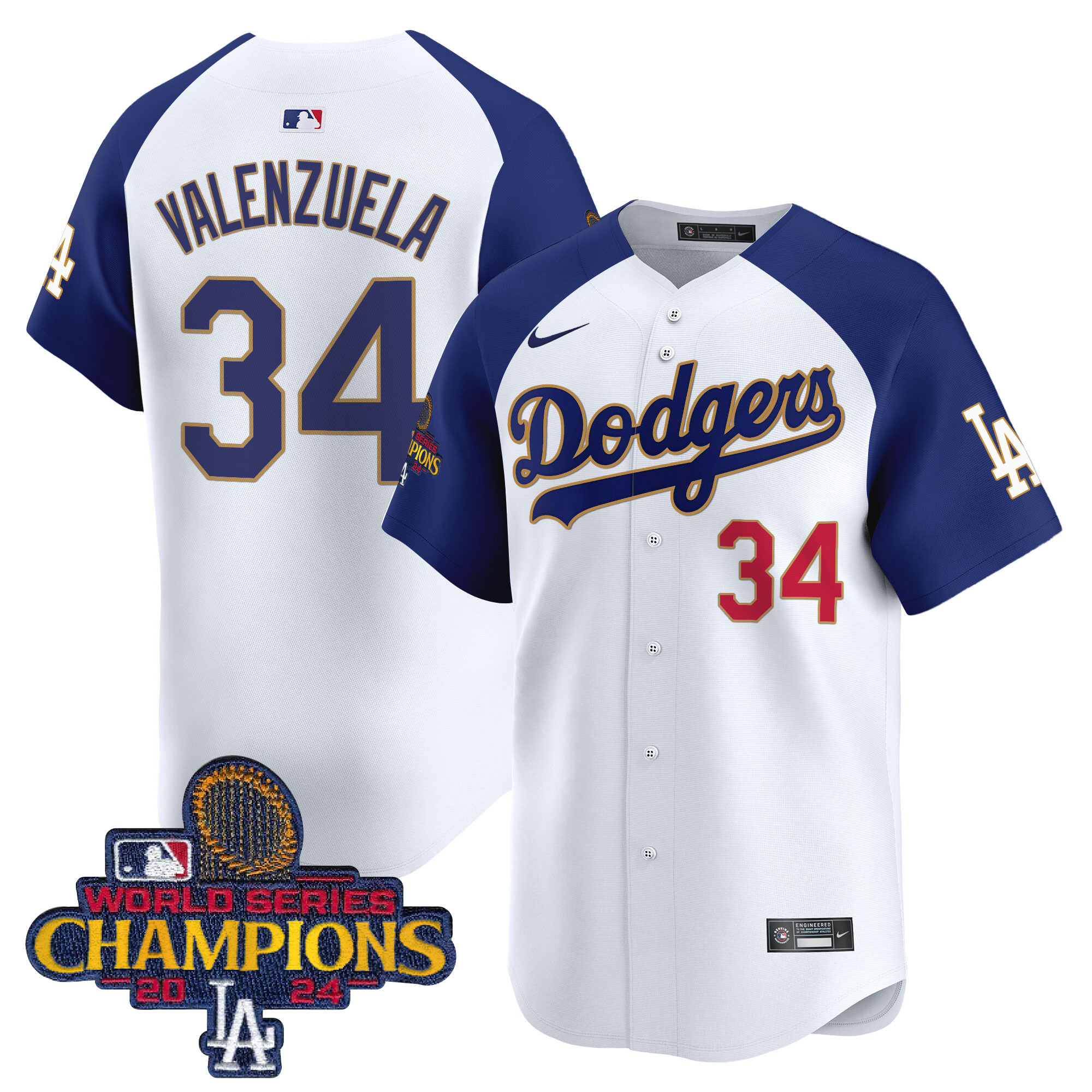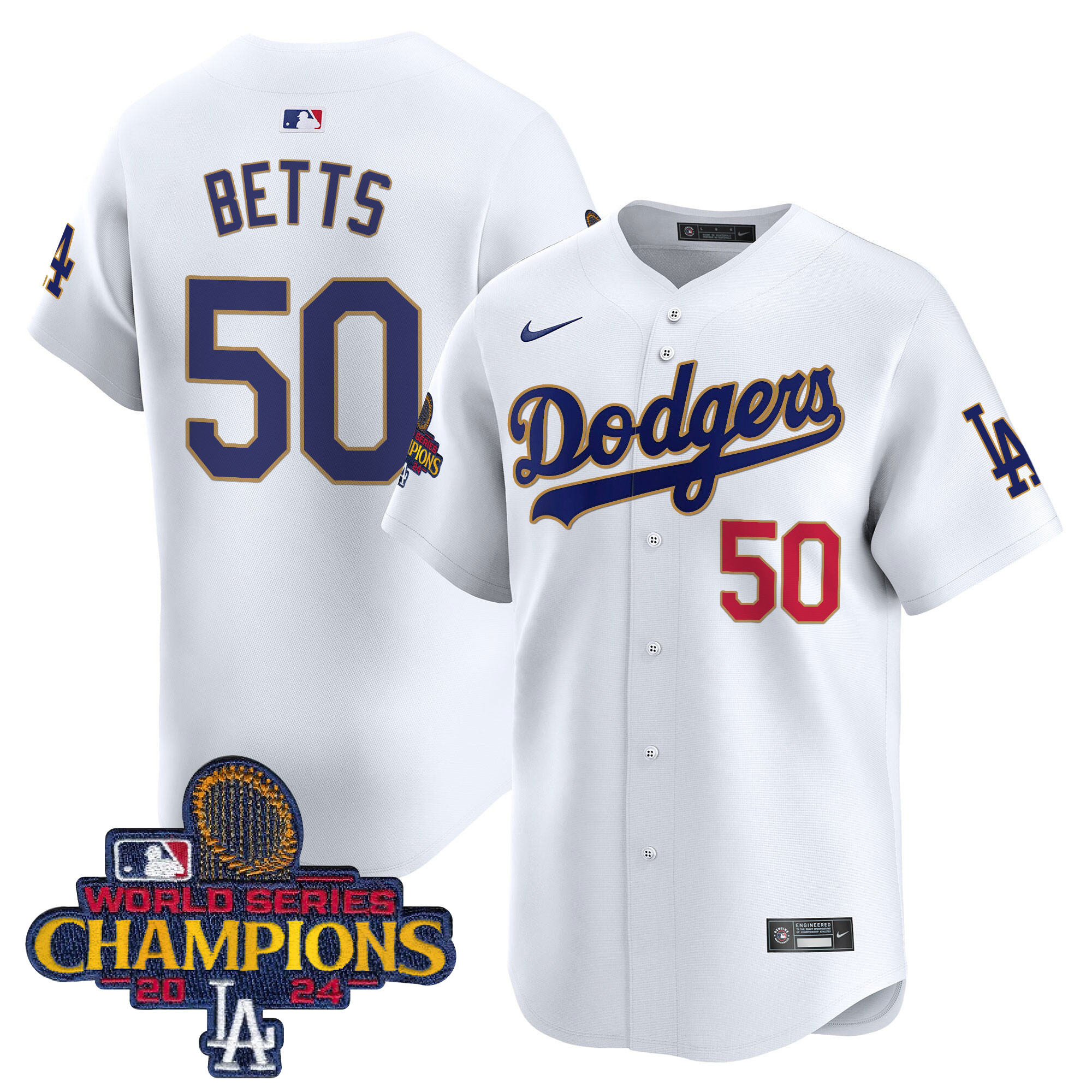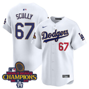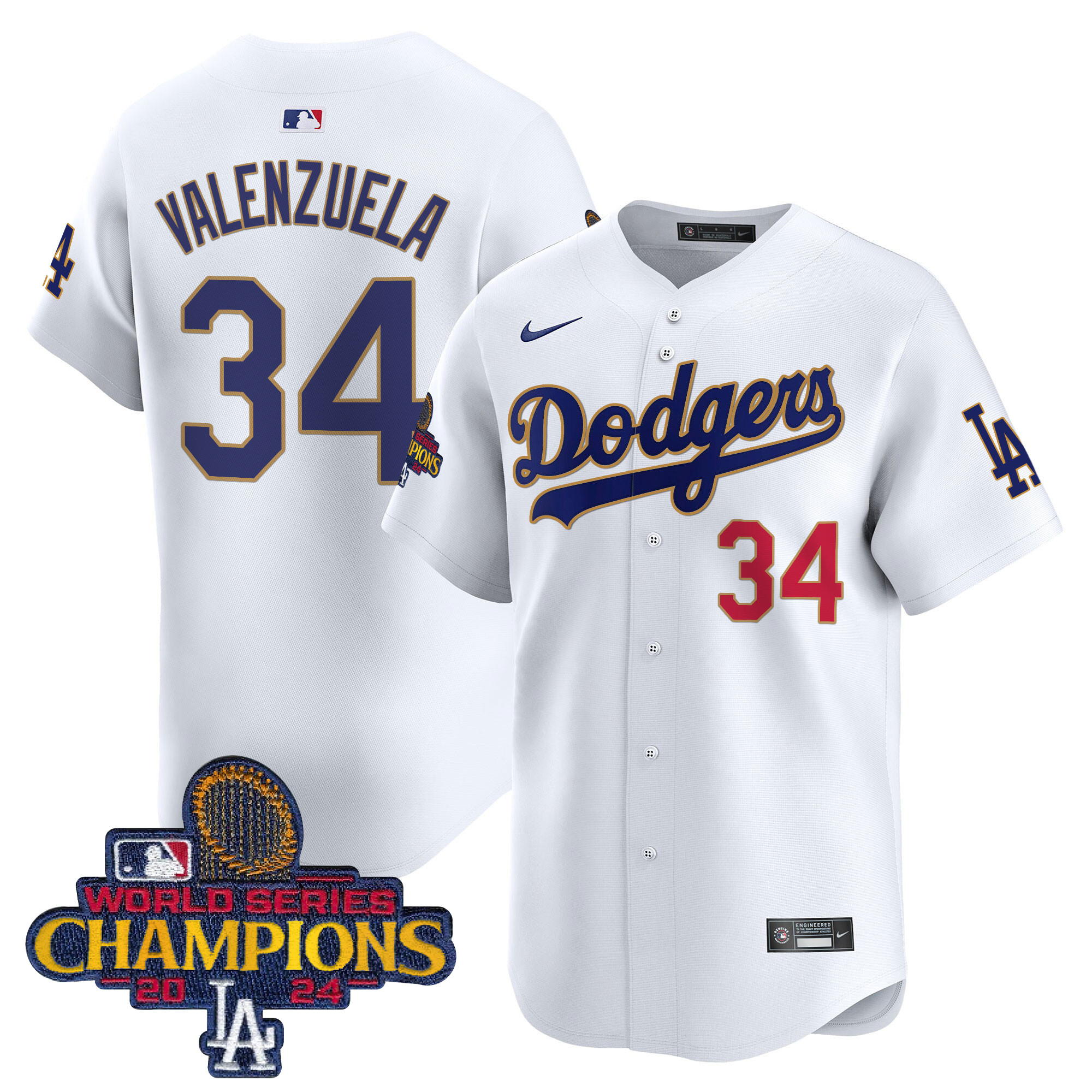 Men’s Dodgers 2024 World Series Champions Gold Trim Vapor Premier Limited Jersey – All Stitched