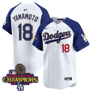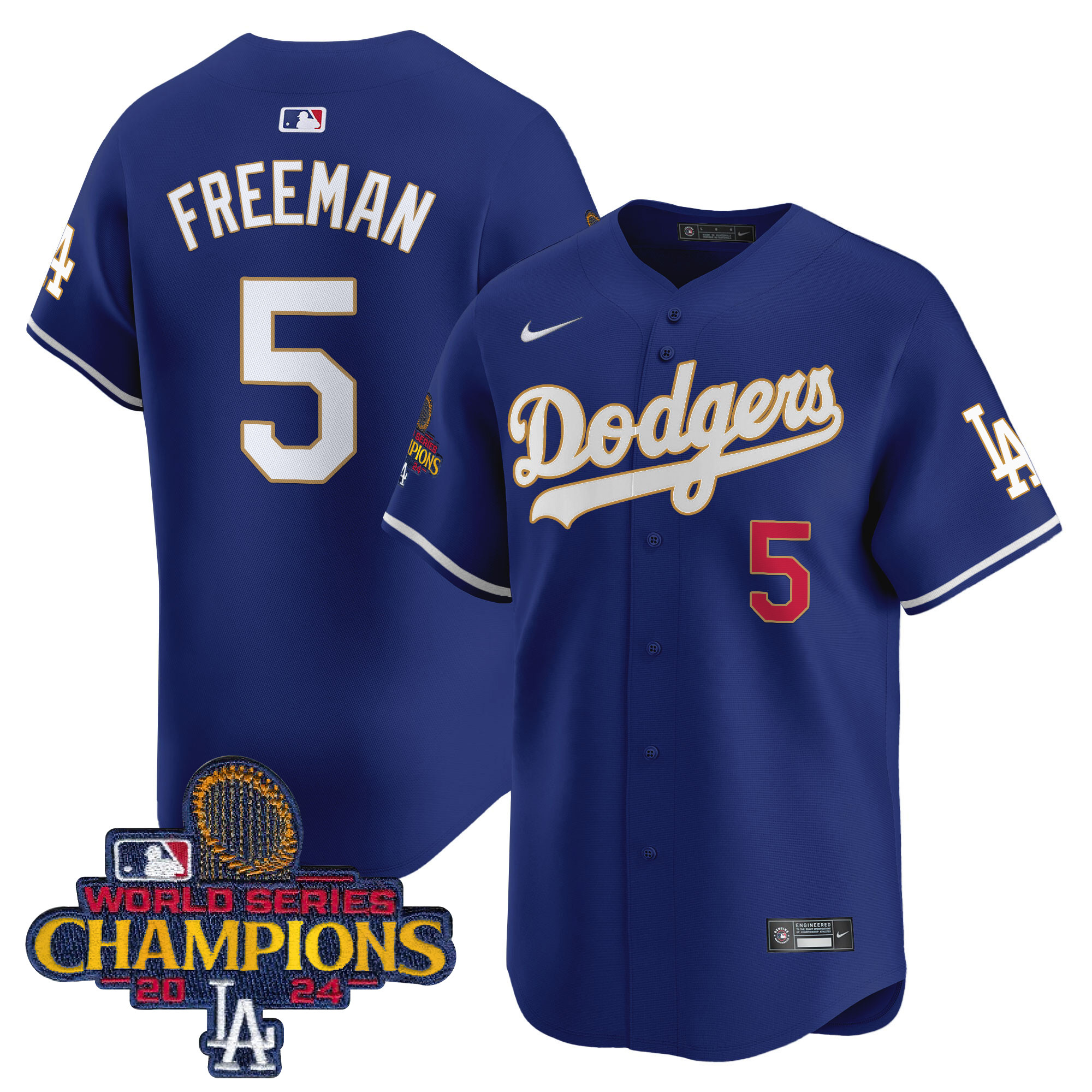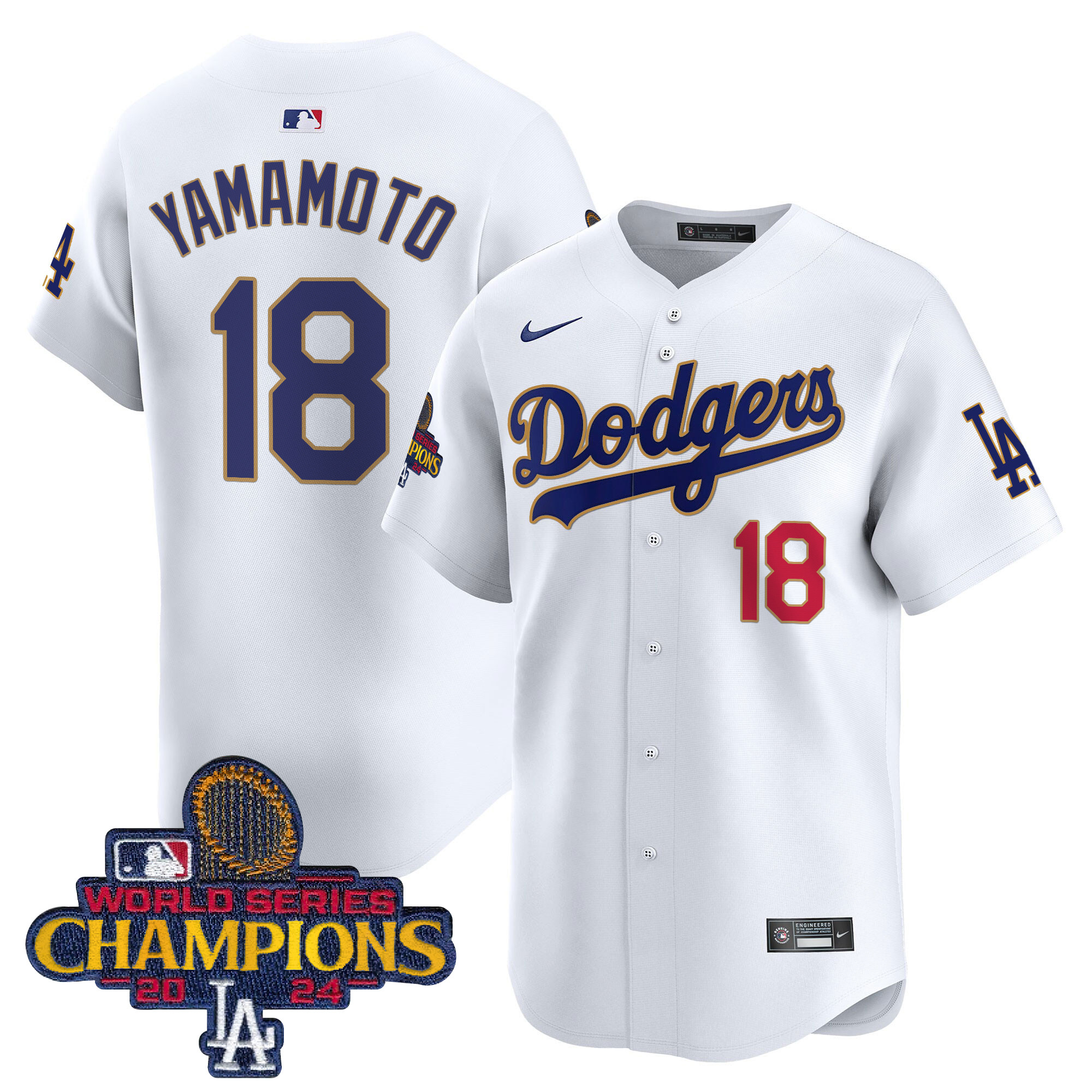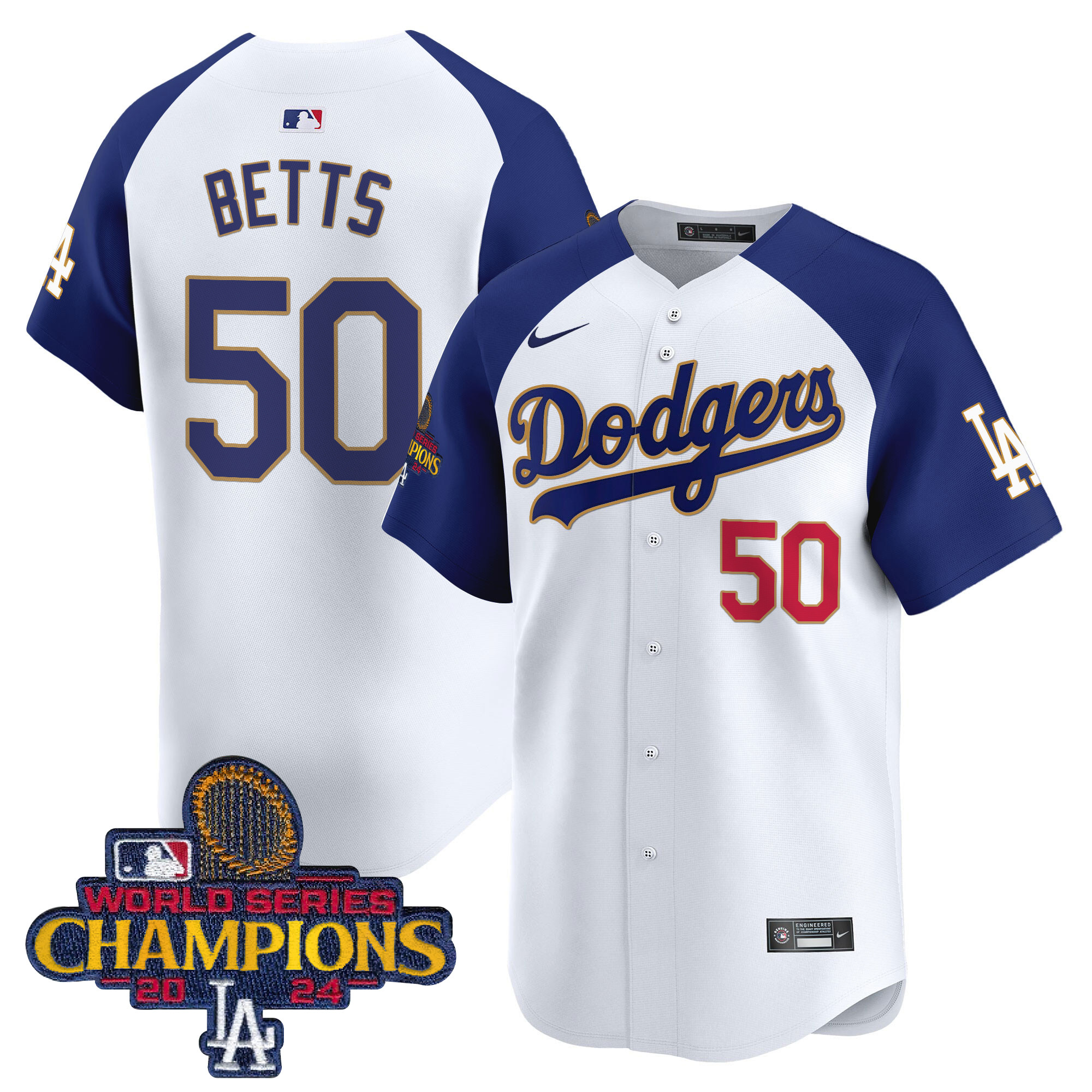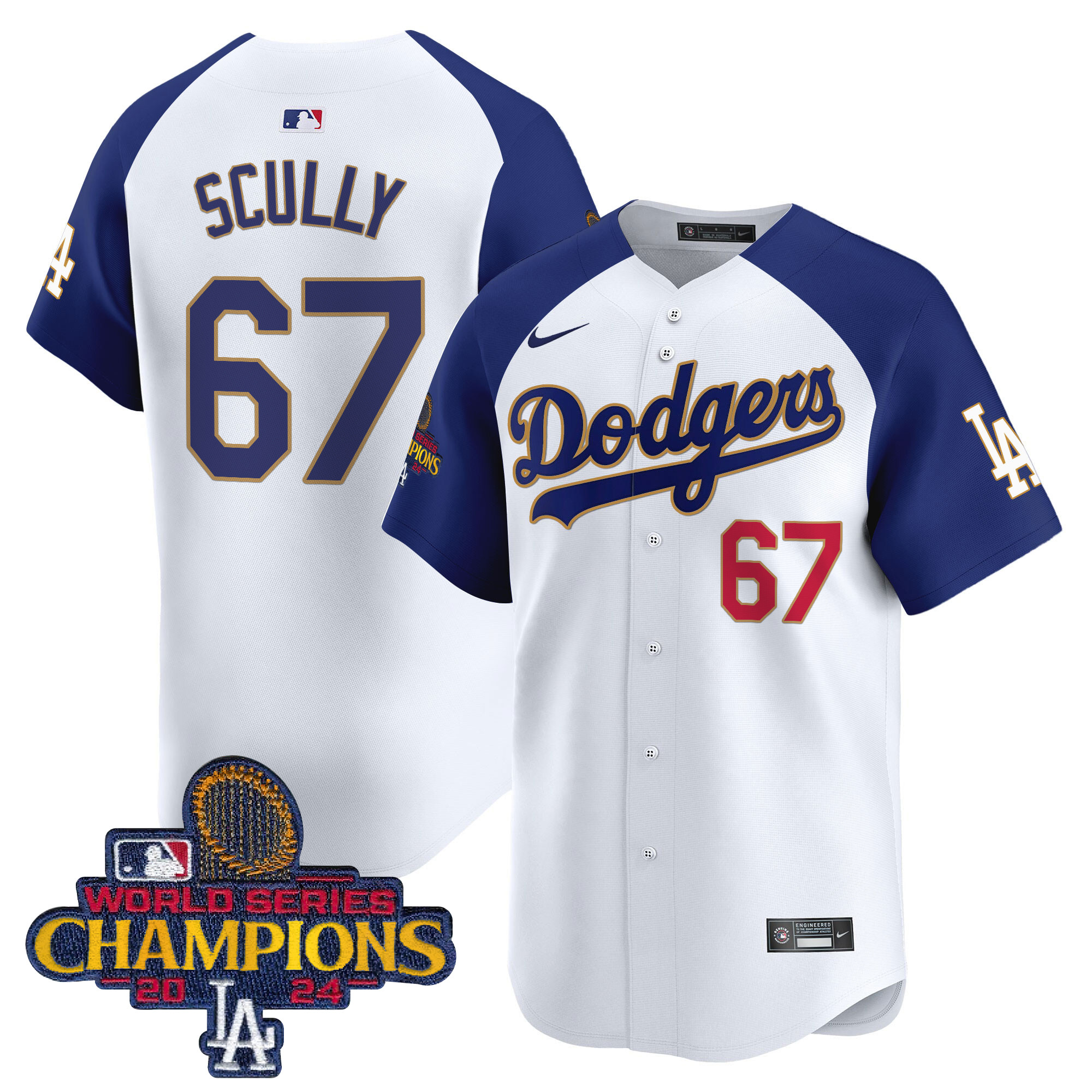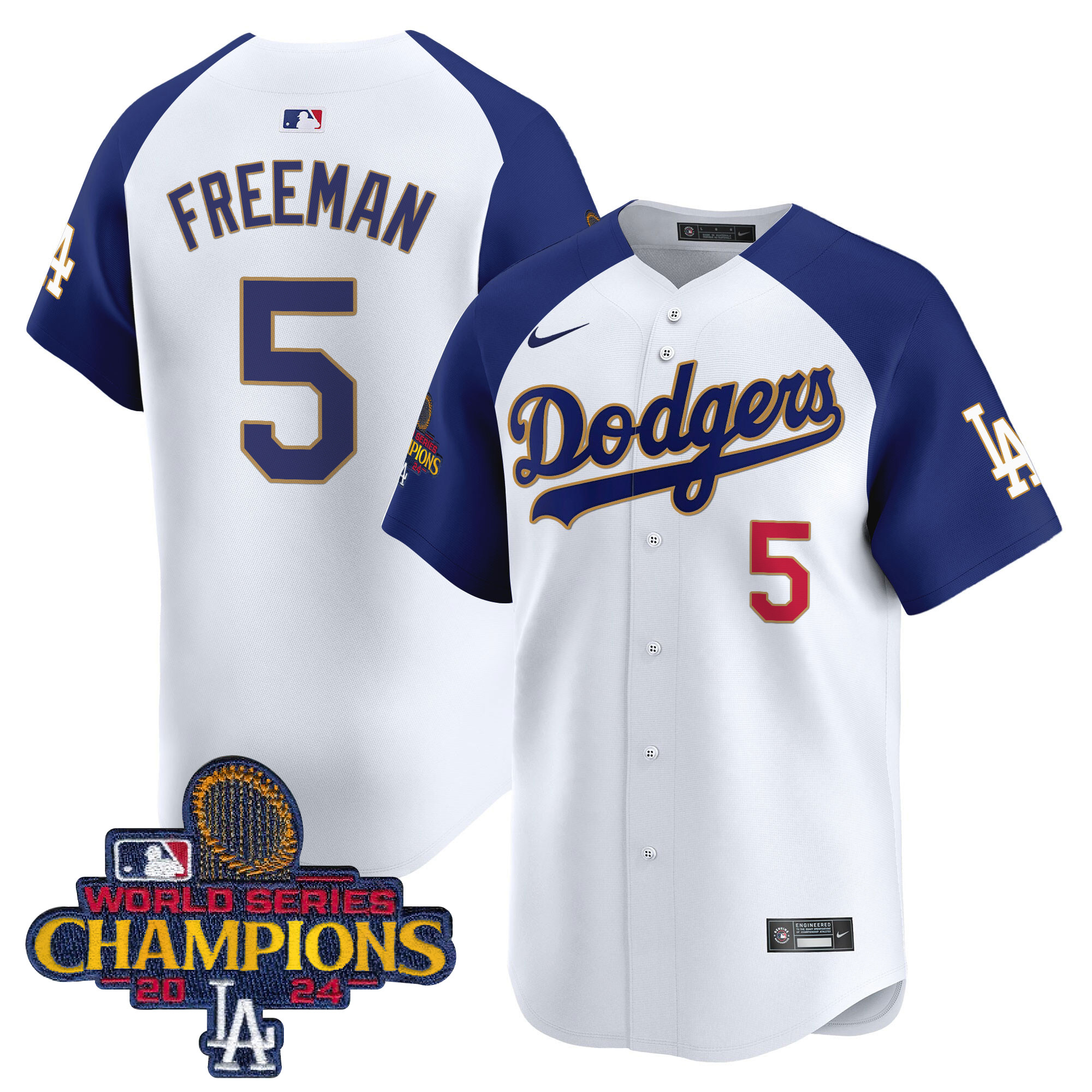 Men’s Dodgers 2024 World Series Champions Gold Trim Vapor Premier Limited Jersey – All Stitched