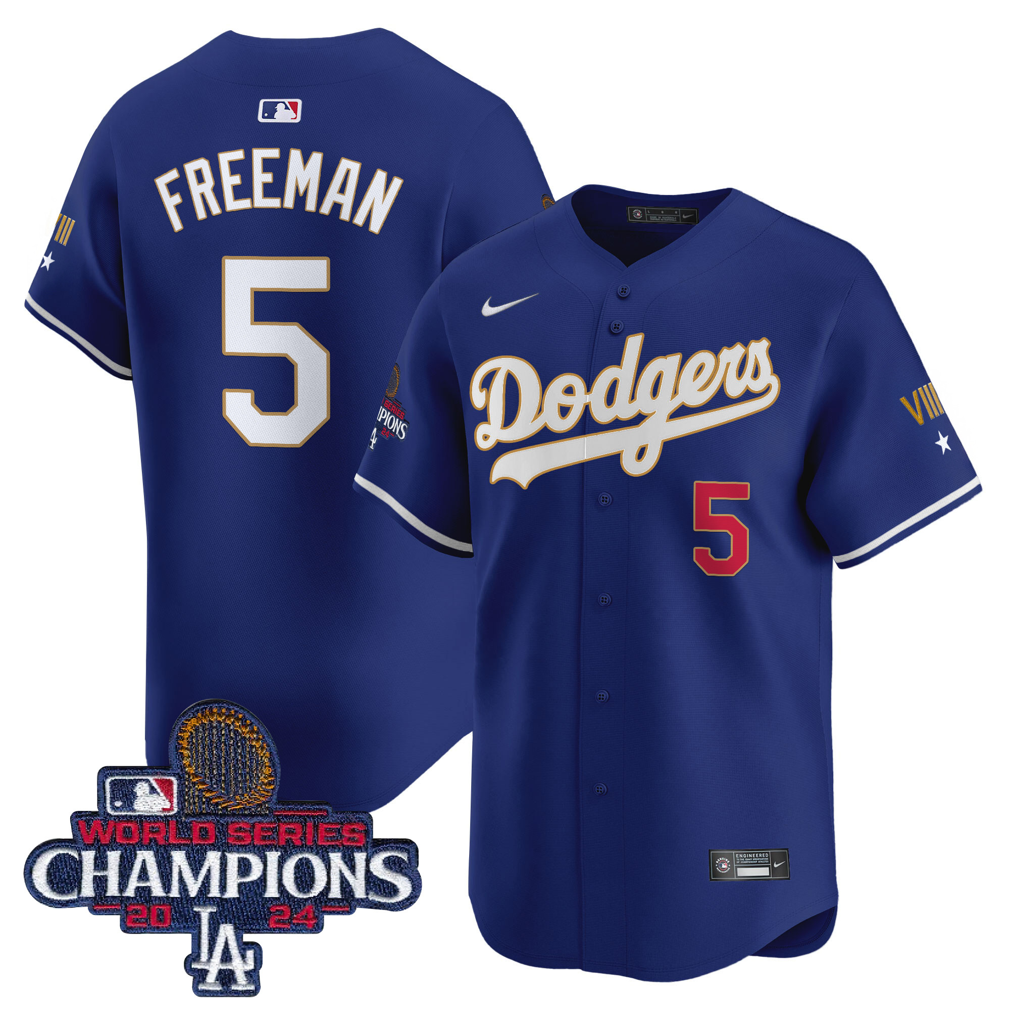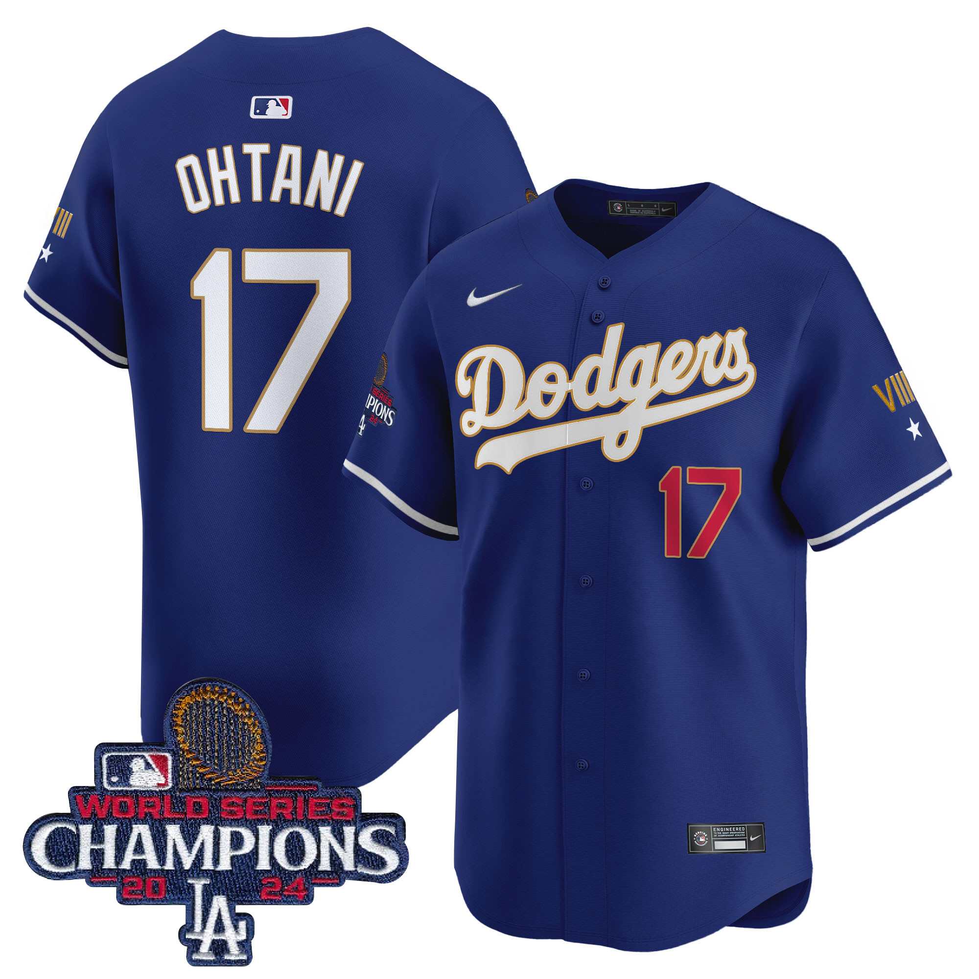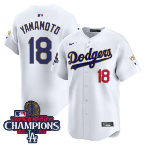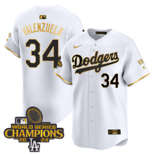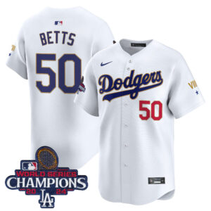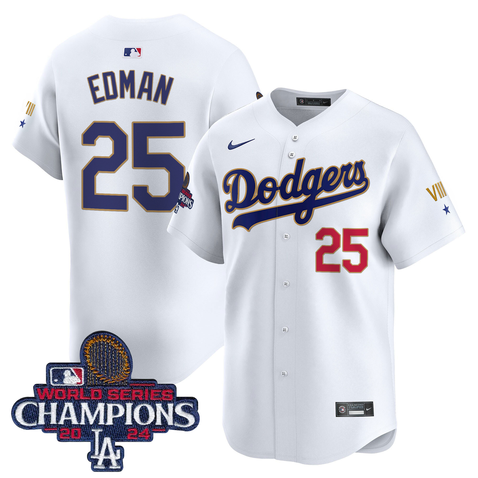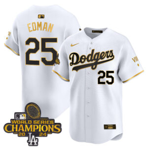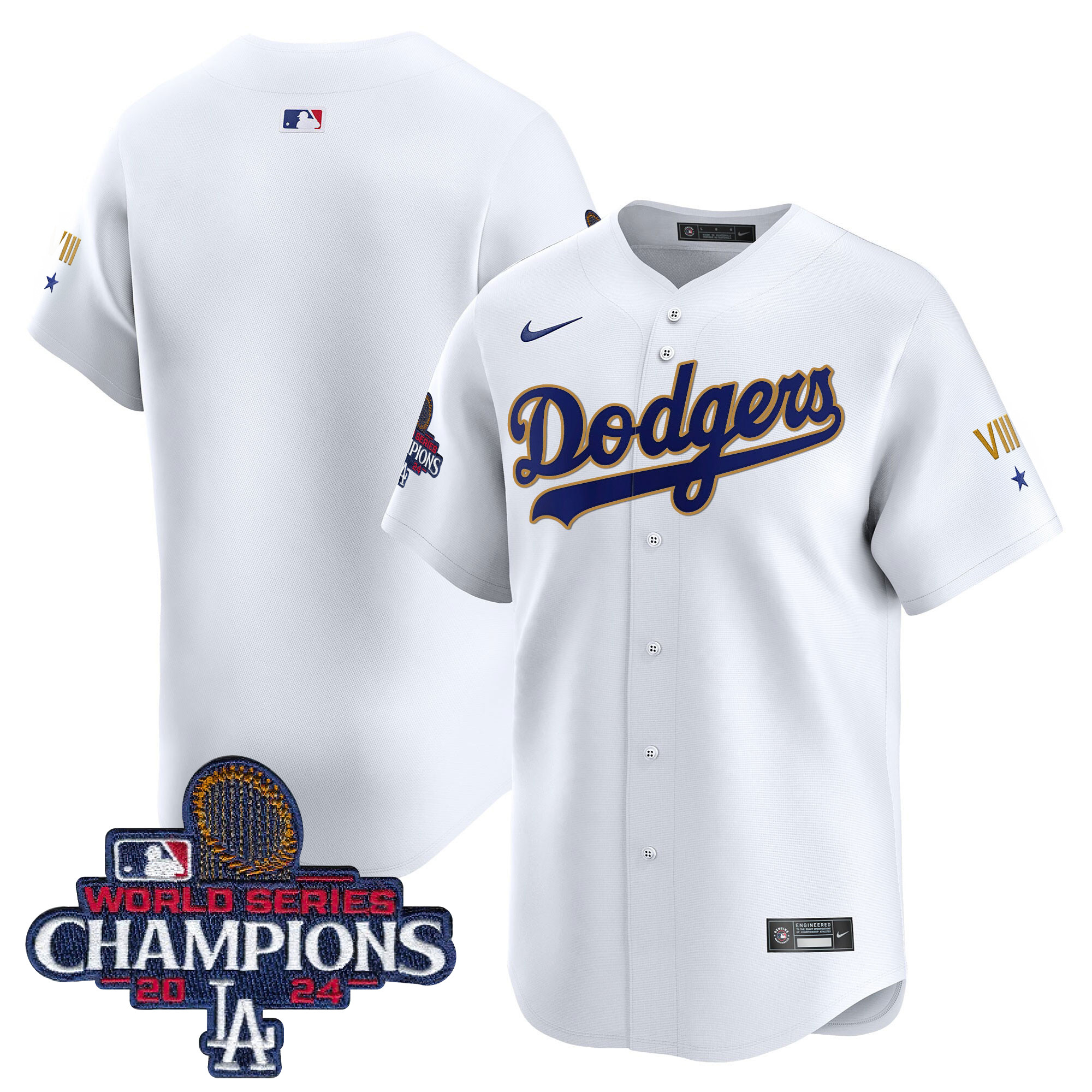 Men’s Dodgers 2024 World Series Champions Gold Trim Vapor Premier Limited Jersey – All Stitched