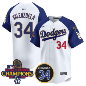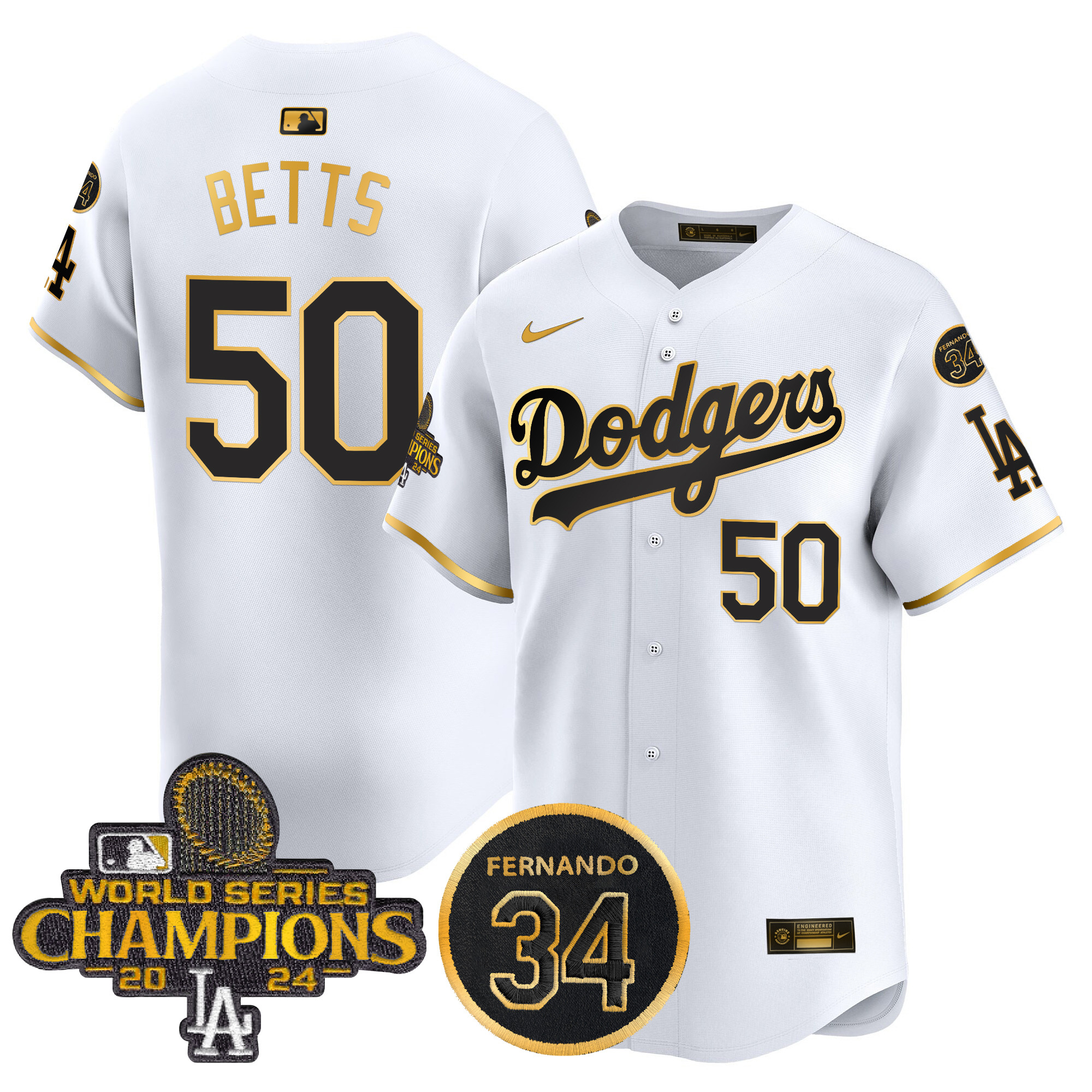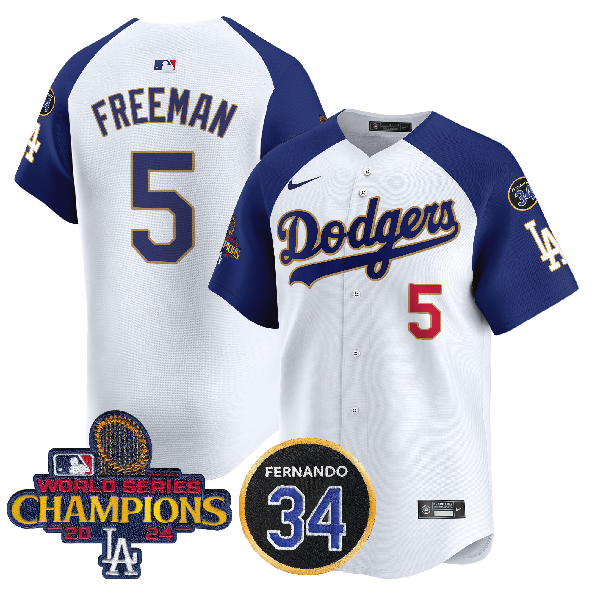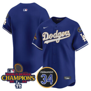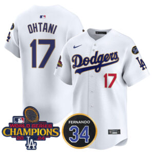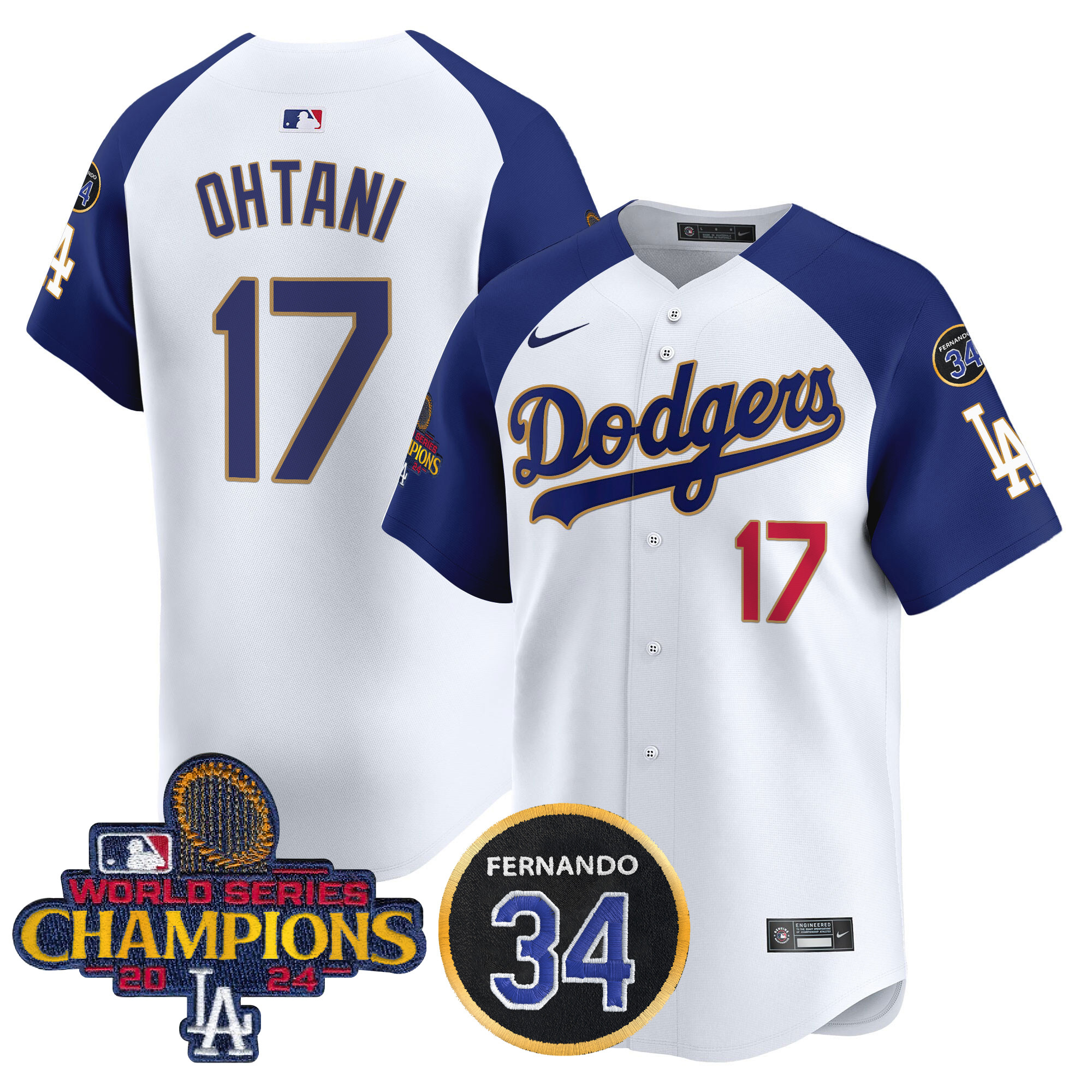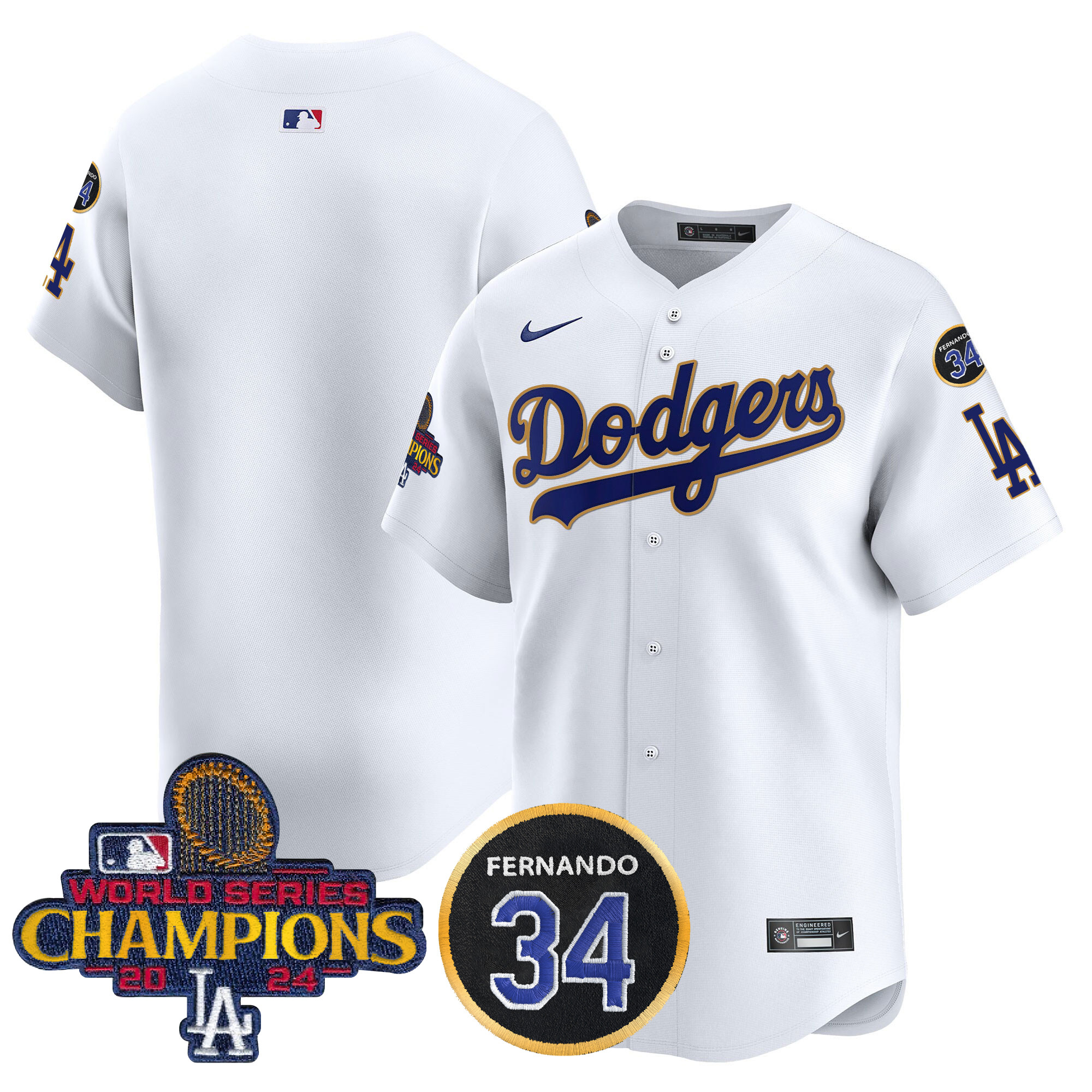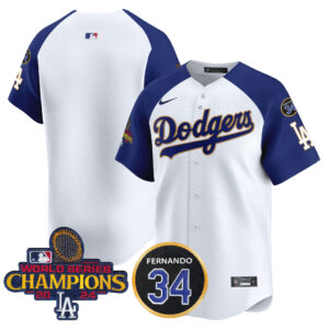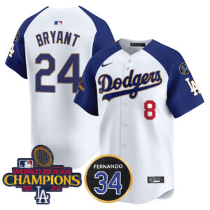 Men’s Dodgers 2024 World Series Champions Gold Trim Vapor Premier Limited Jersey V2 – All Stitched