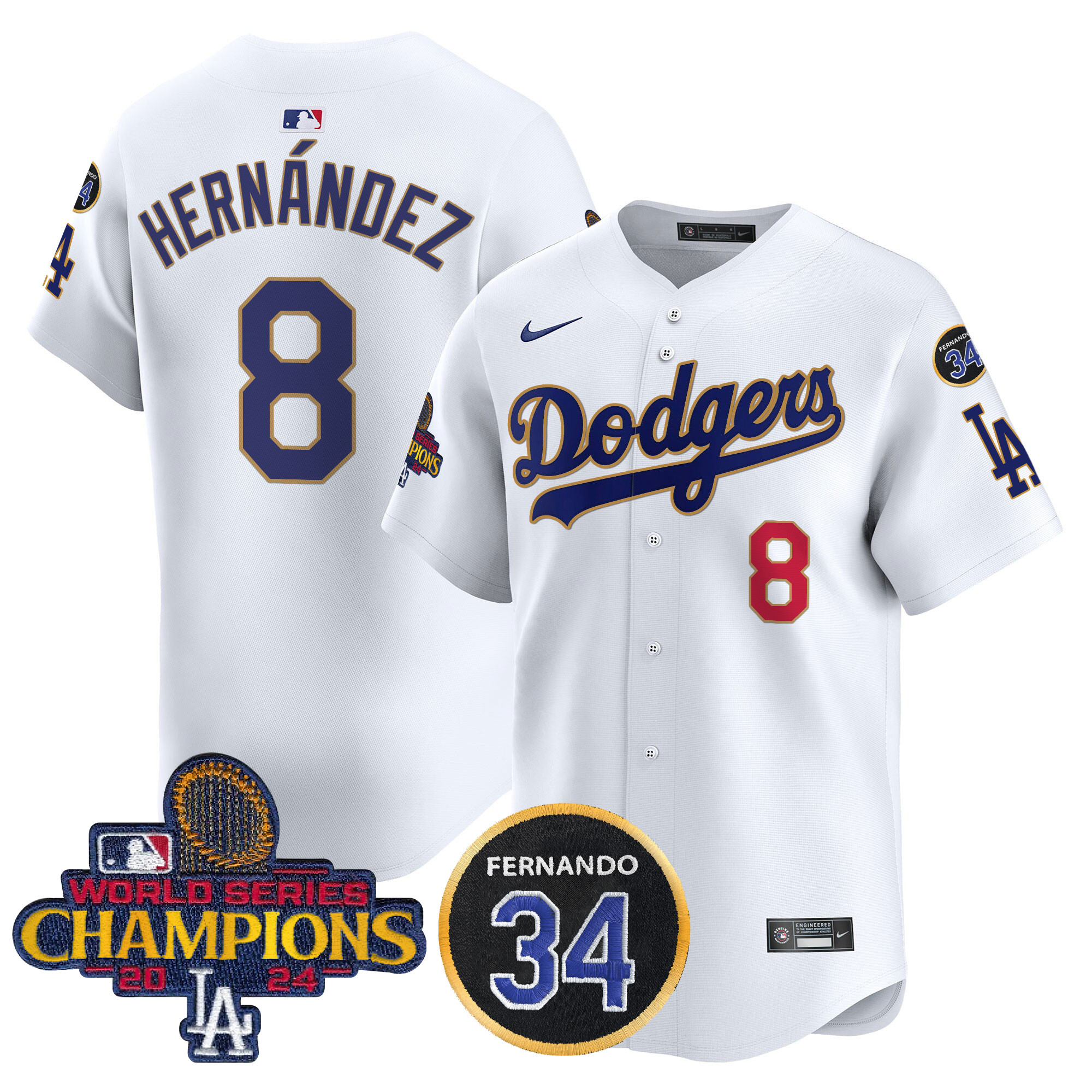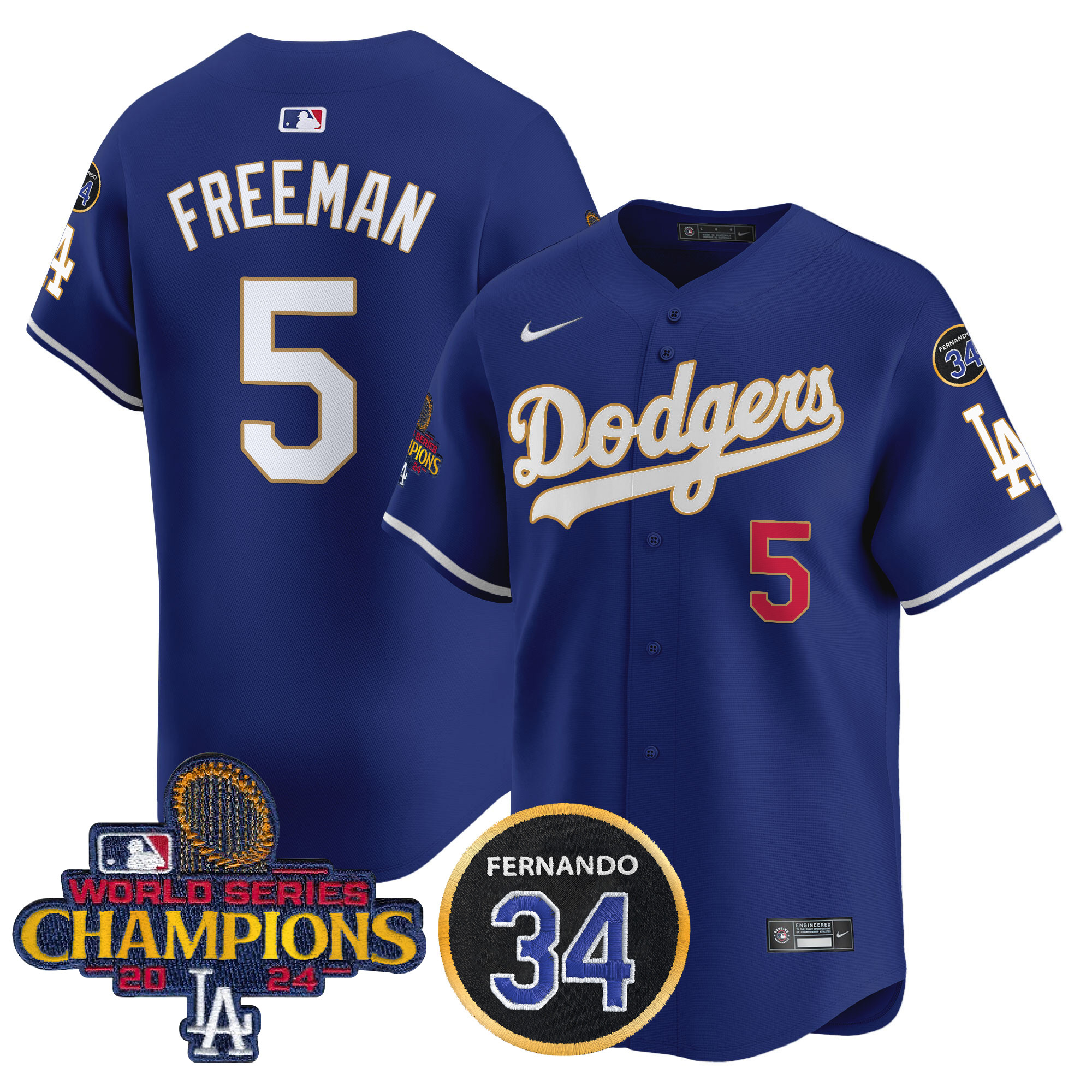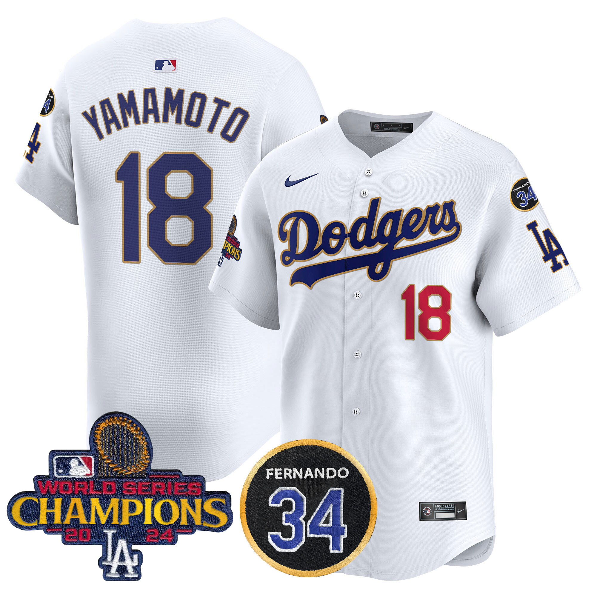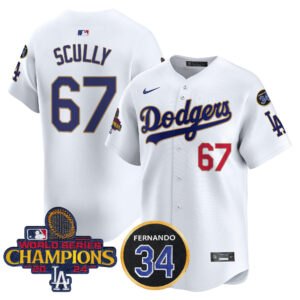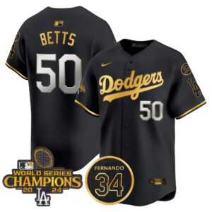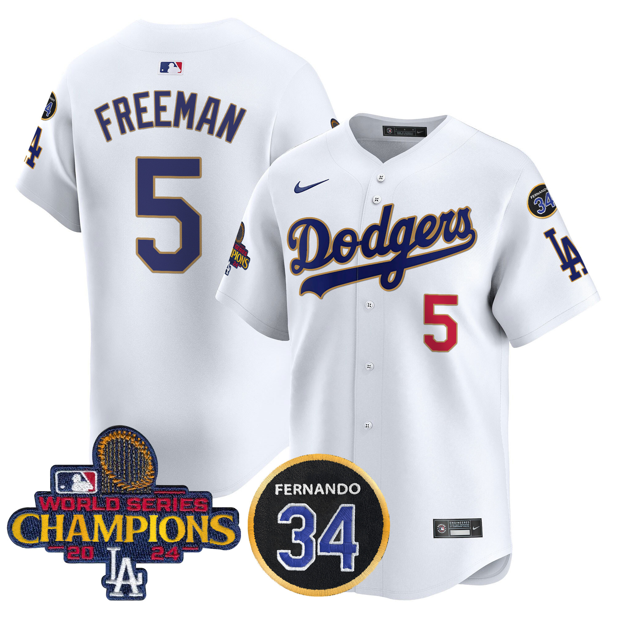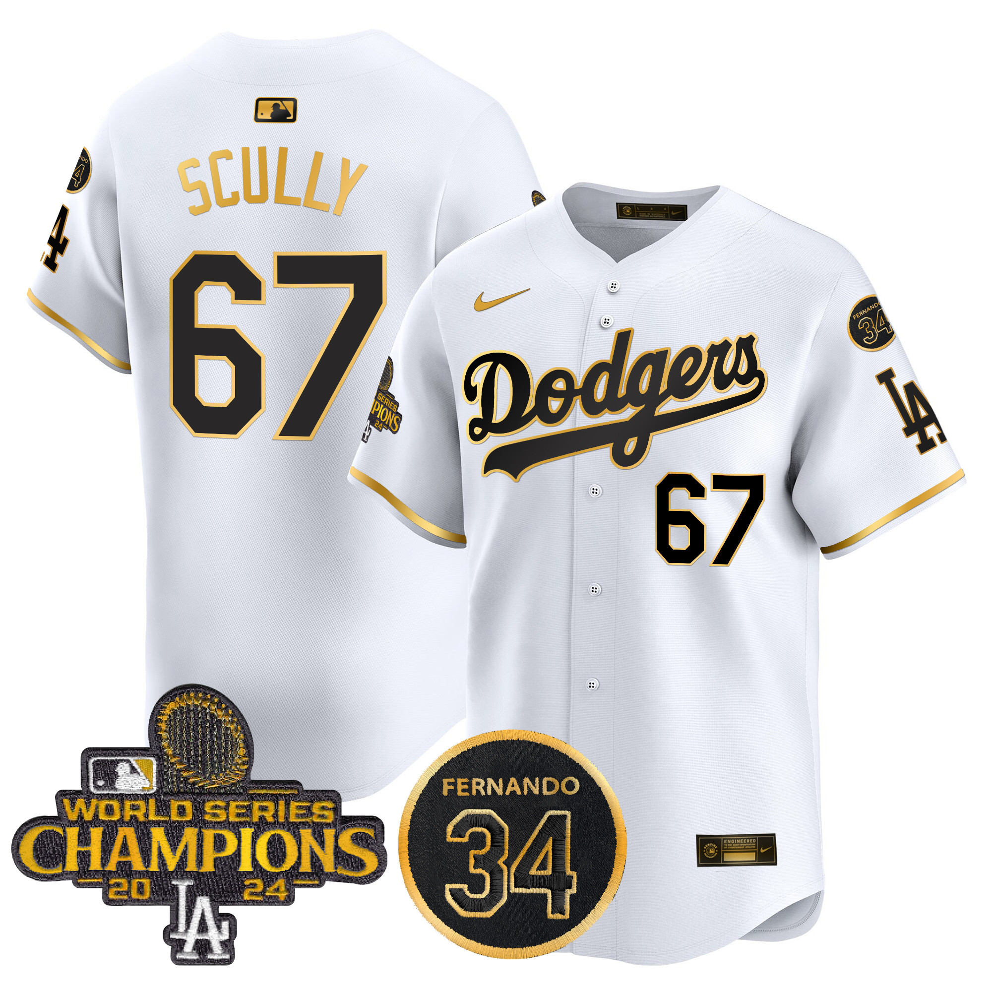 Men’s Dodgers 2024 World Series Champions Gold Trim Vapor Premier Limited Jersey V2 – All Stitched