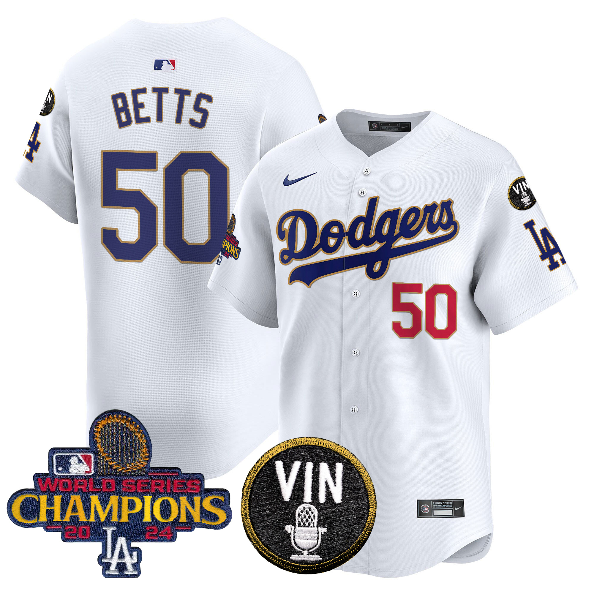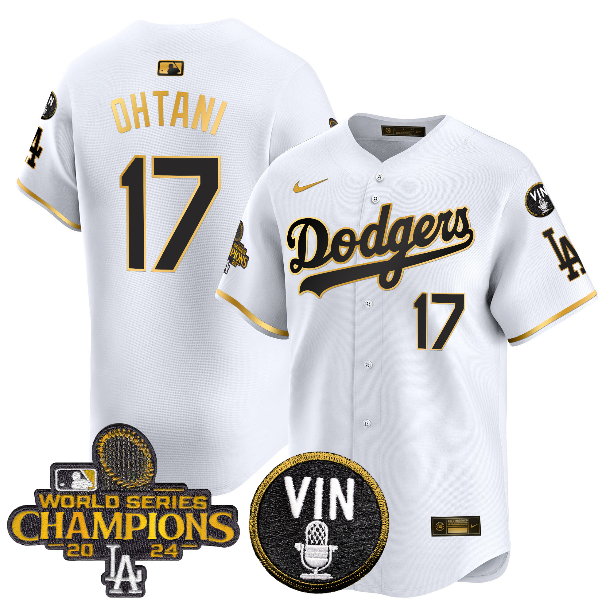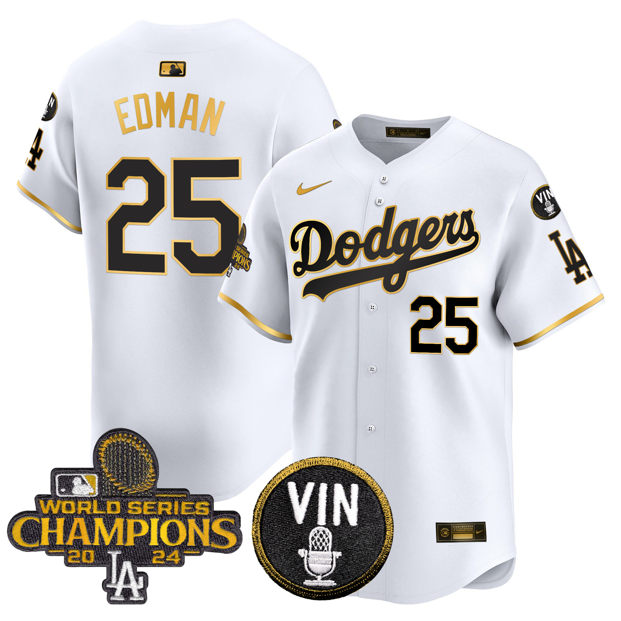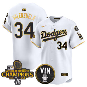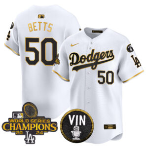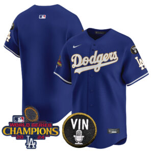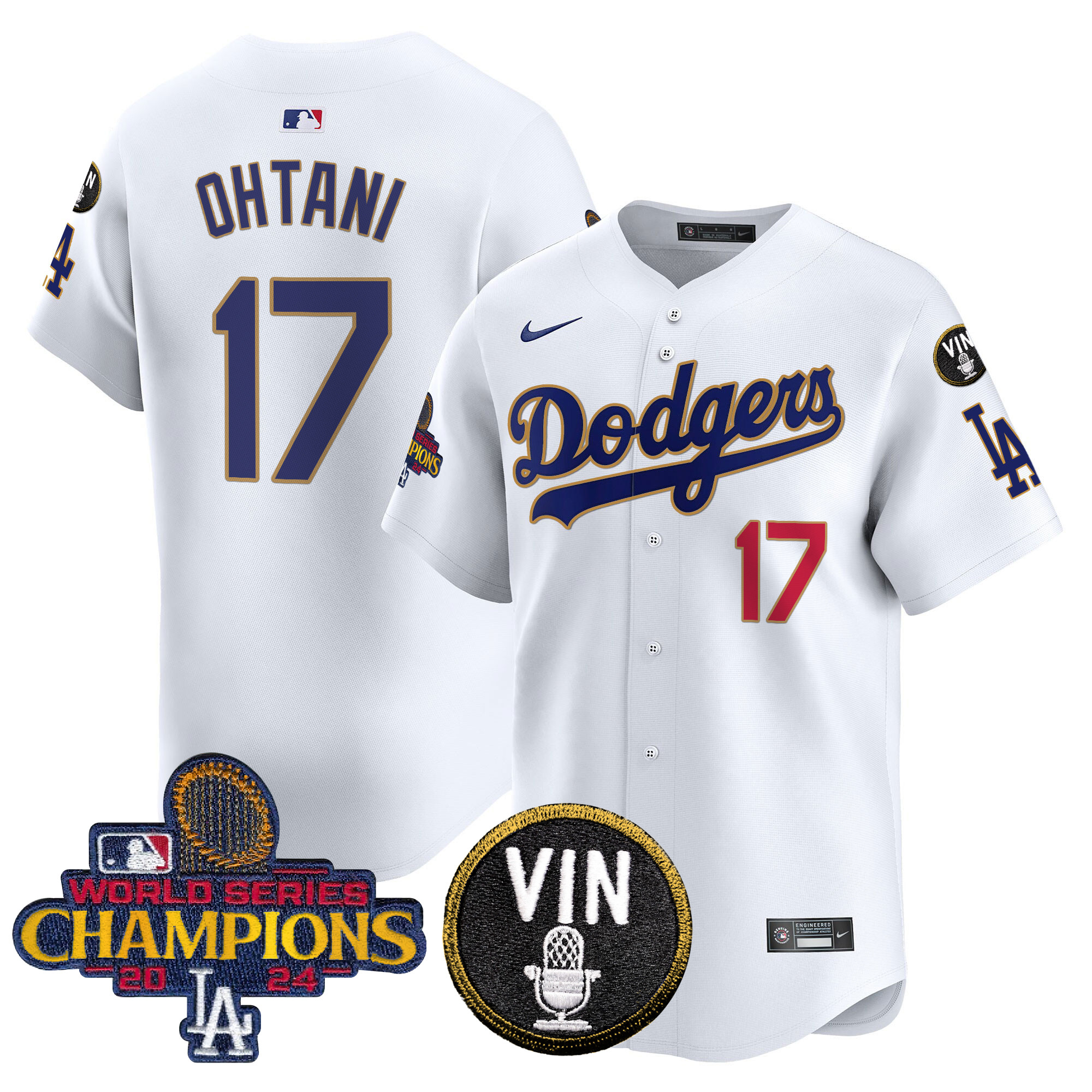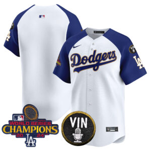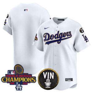 Men’s Dodgers 2024 World Series Champions Gold Trim Vapor Premier Limited Jersey V3 – All Stitched