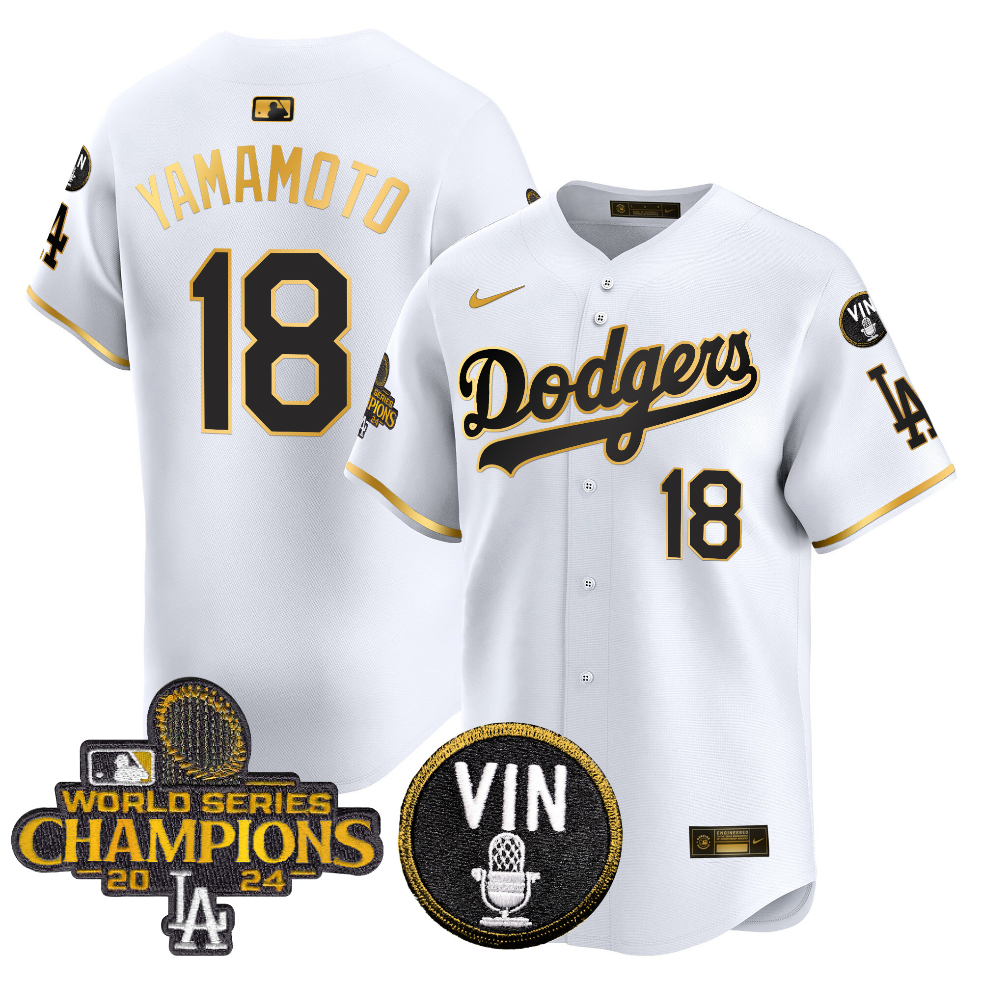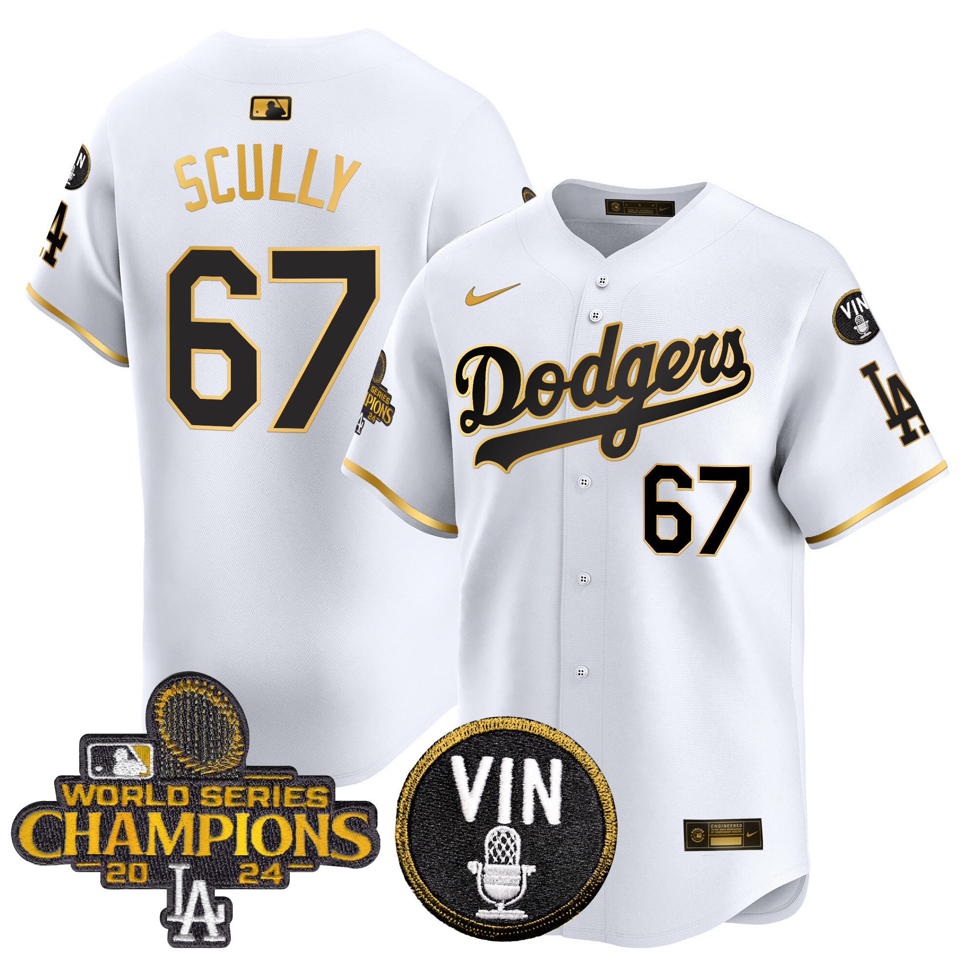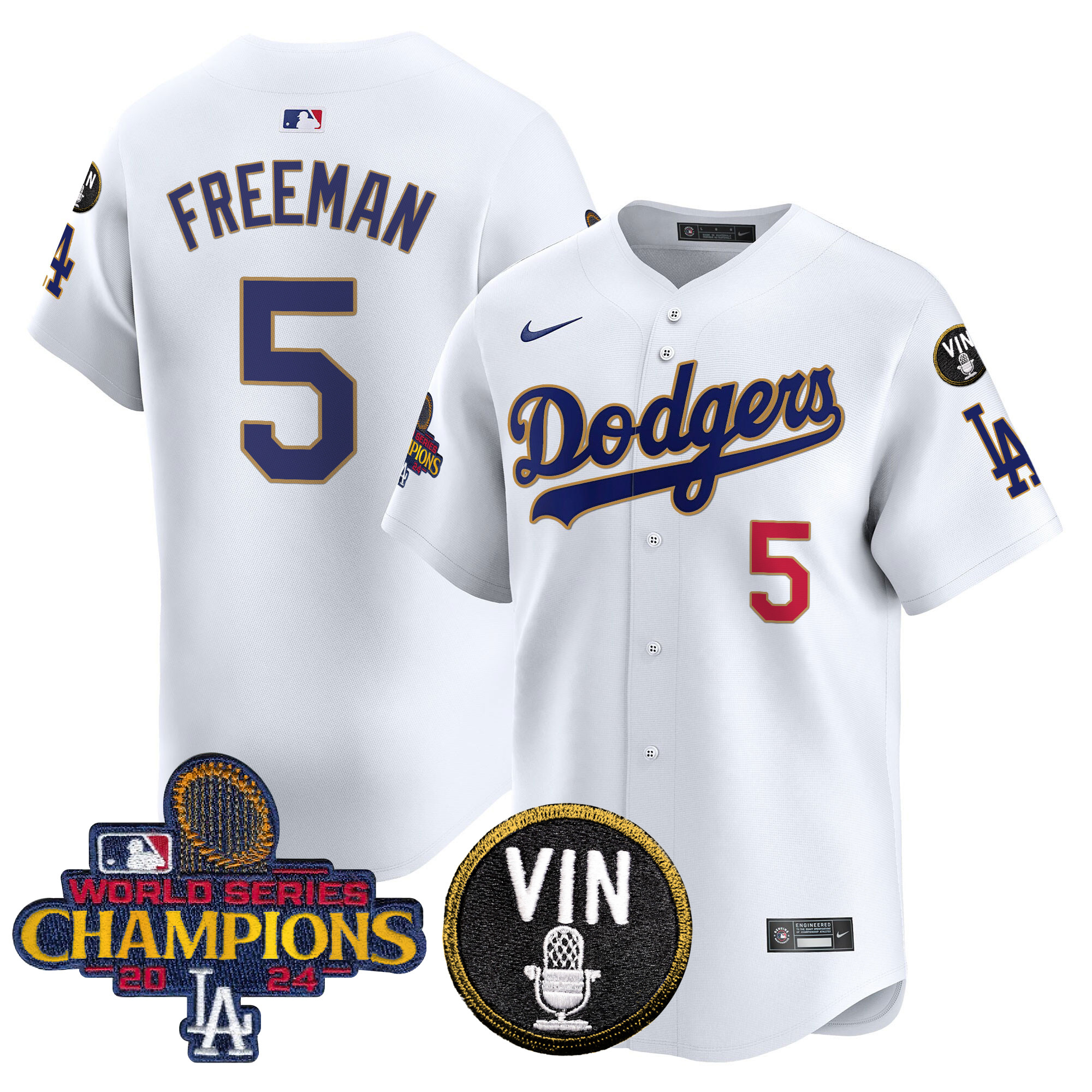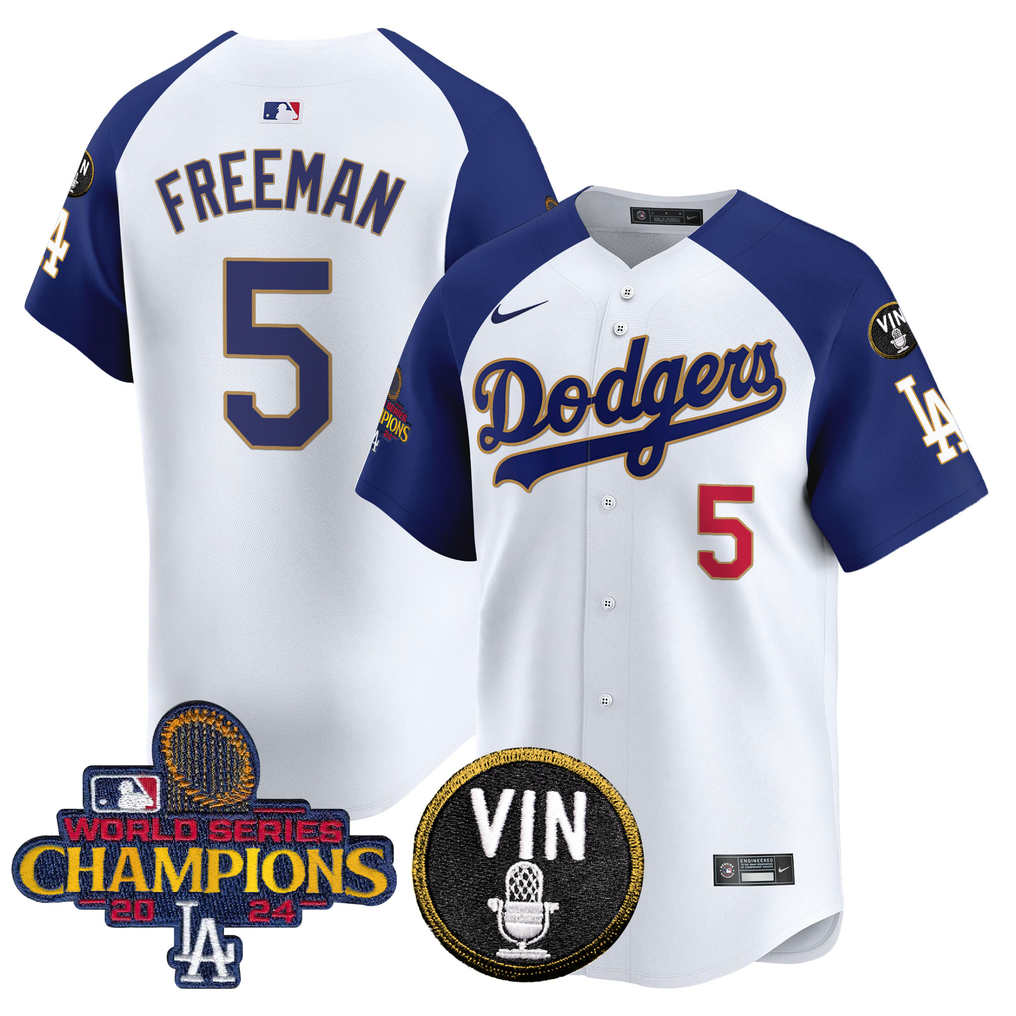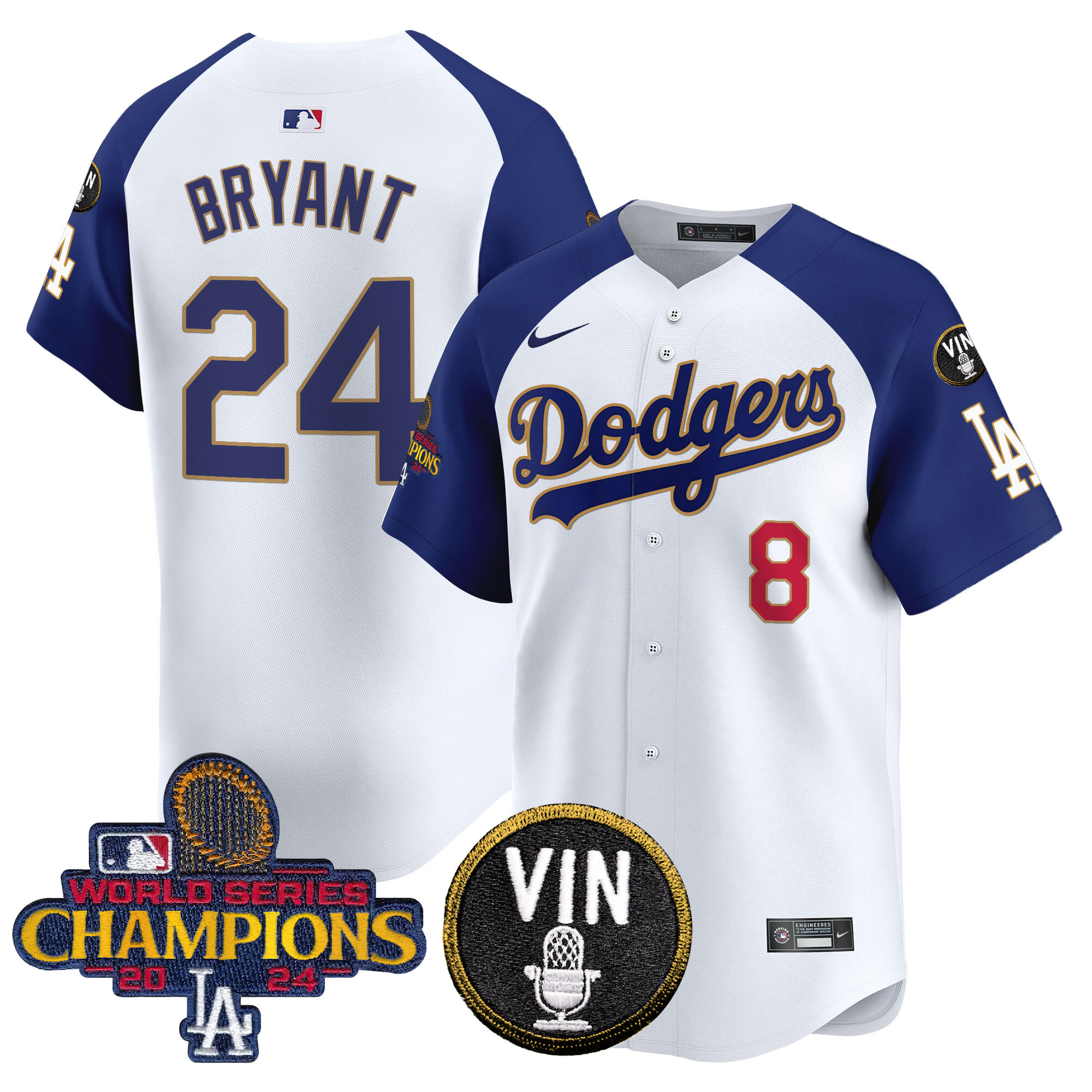 Men’s Dodgers 2024 World Series Champions Gold Trim Vapor Premier Limited Jersey V3 – All Stitched