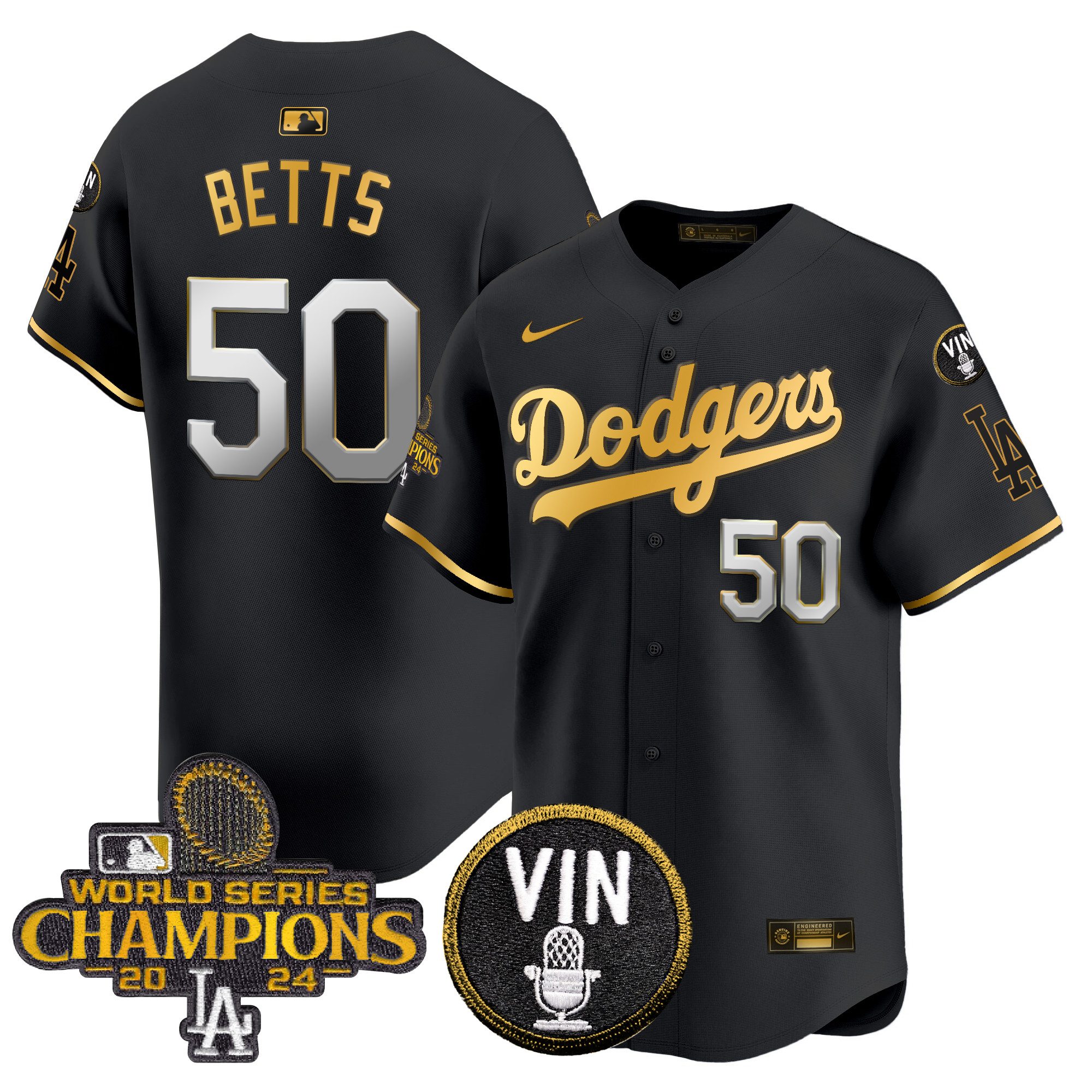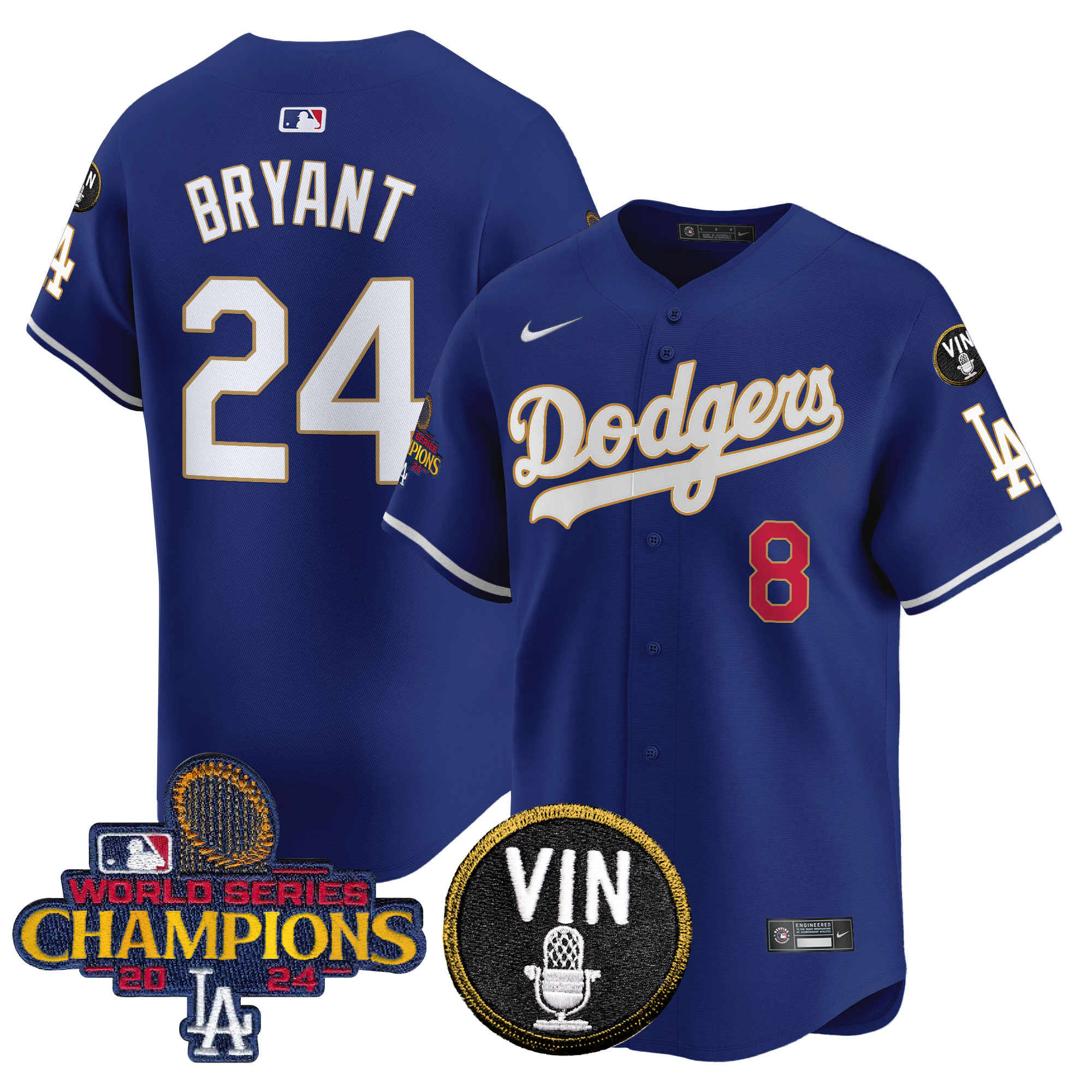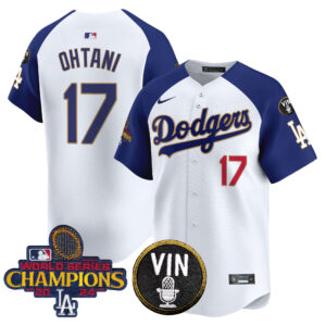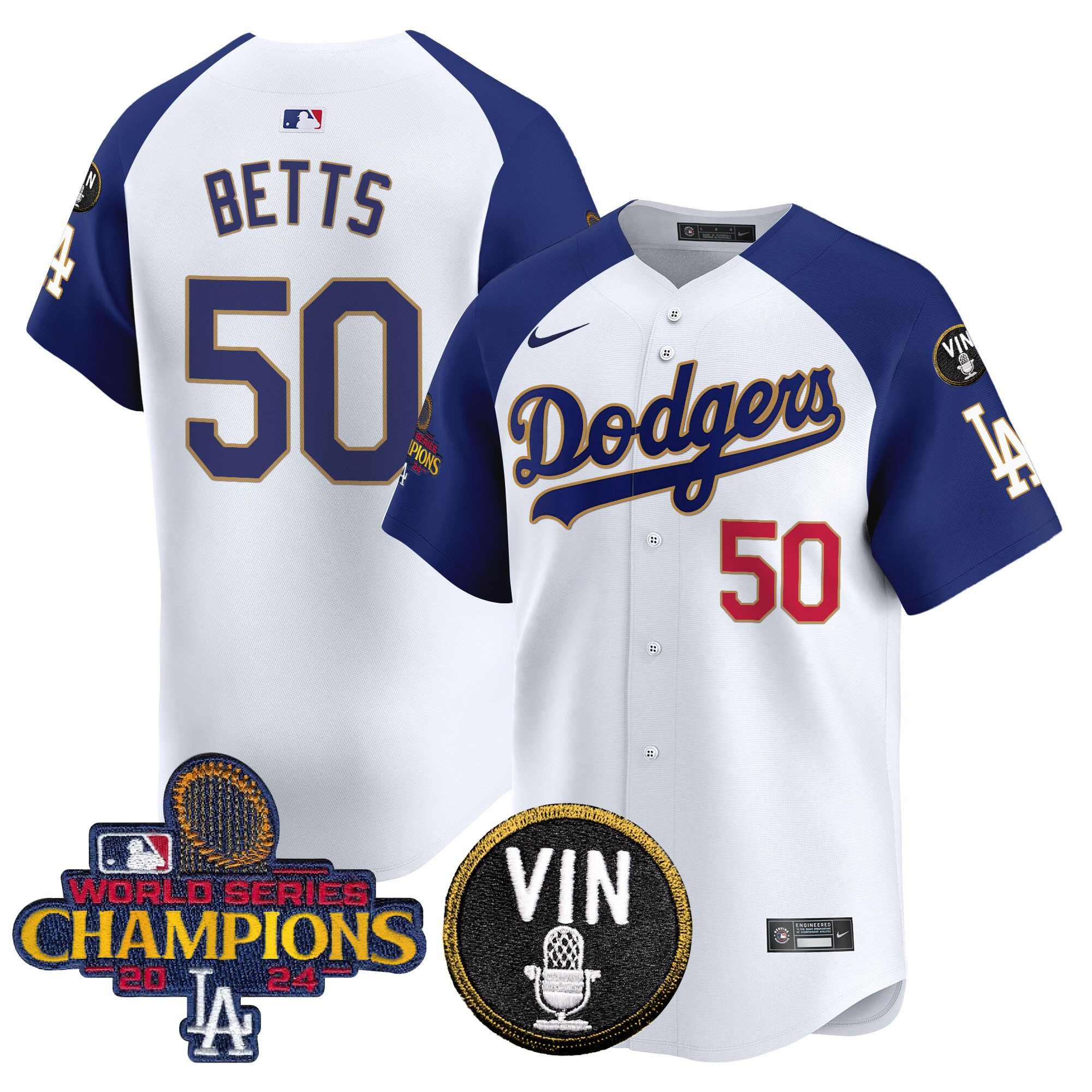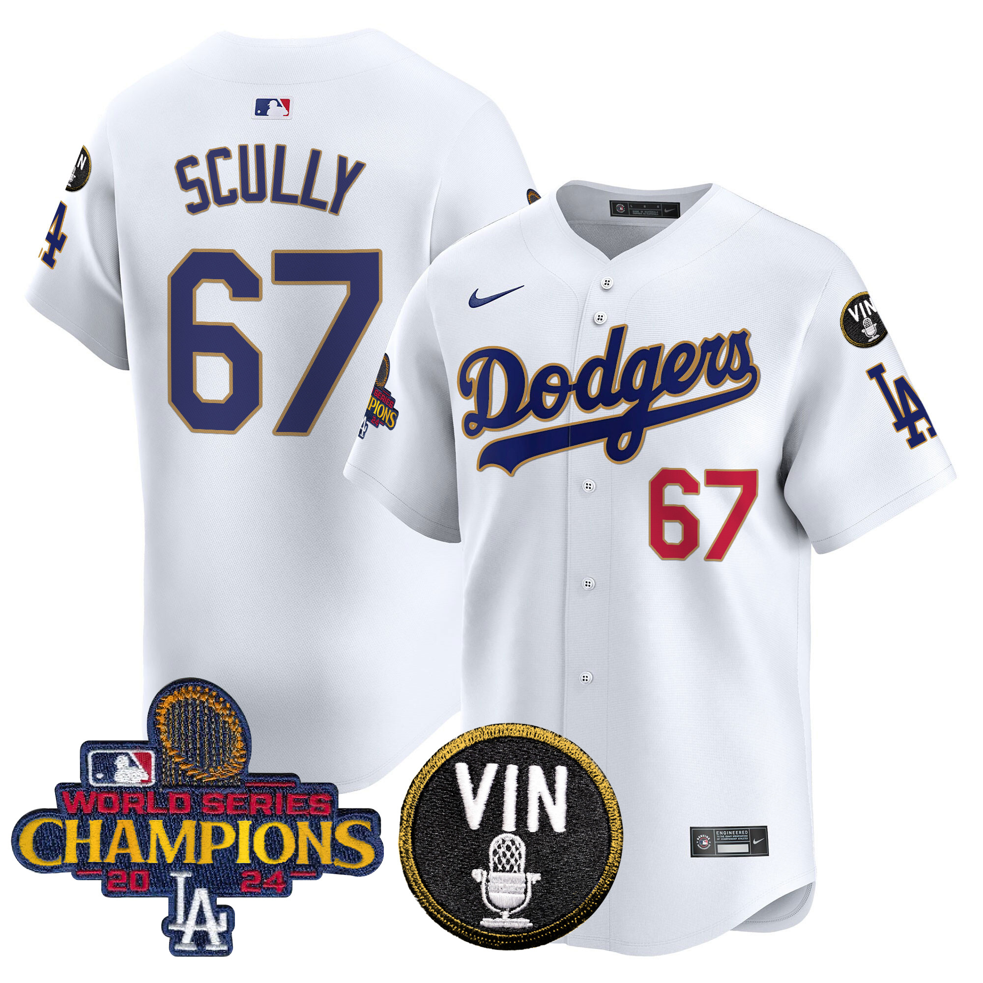 Men’s Dodgers 2024 World Series Champions Gold Trim Vapor Premier Limited Jersey V3 – All Stitched
