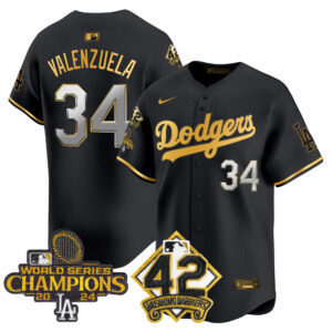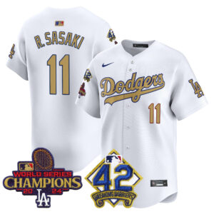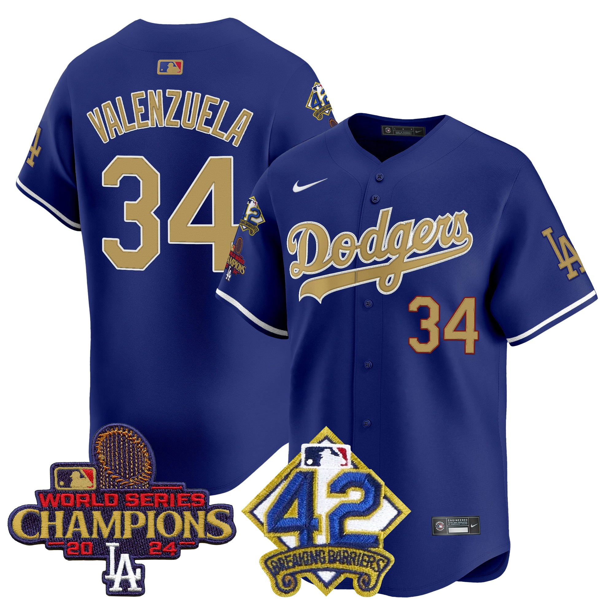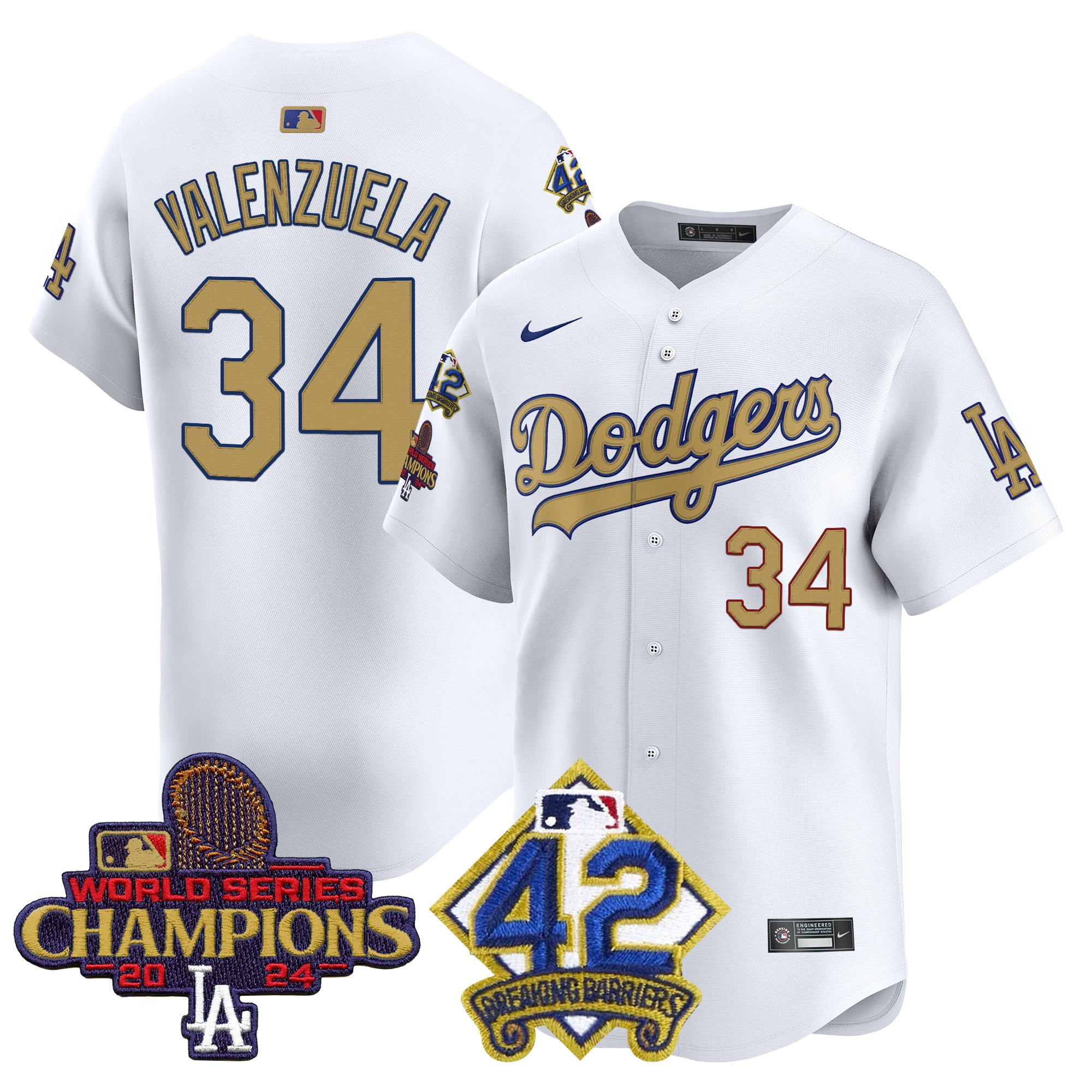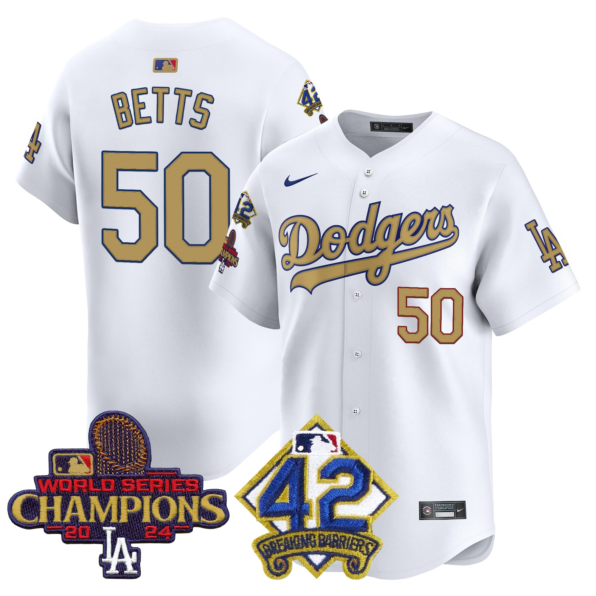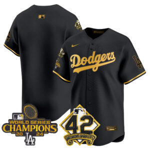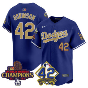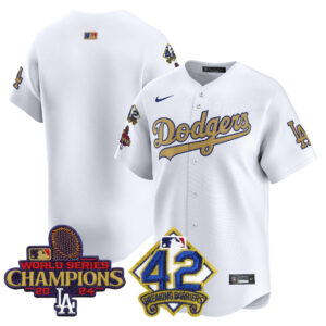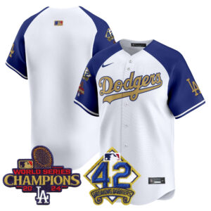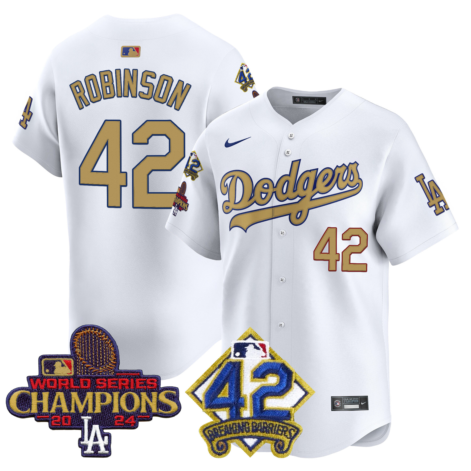 Men’s Dodgers 2024 World Series Champions & Jackie Robinson Patch Vapor Premier Limited Jersey – All Stitched