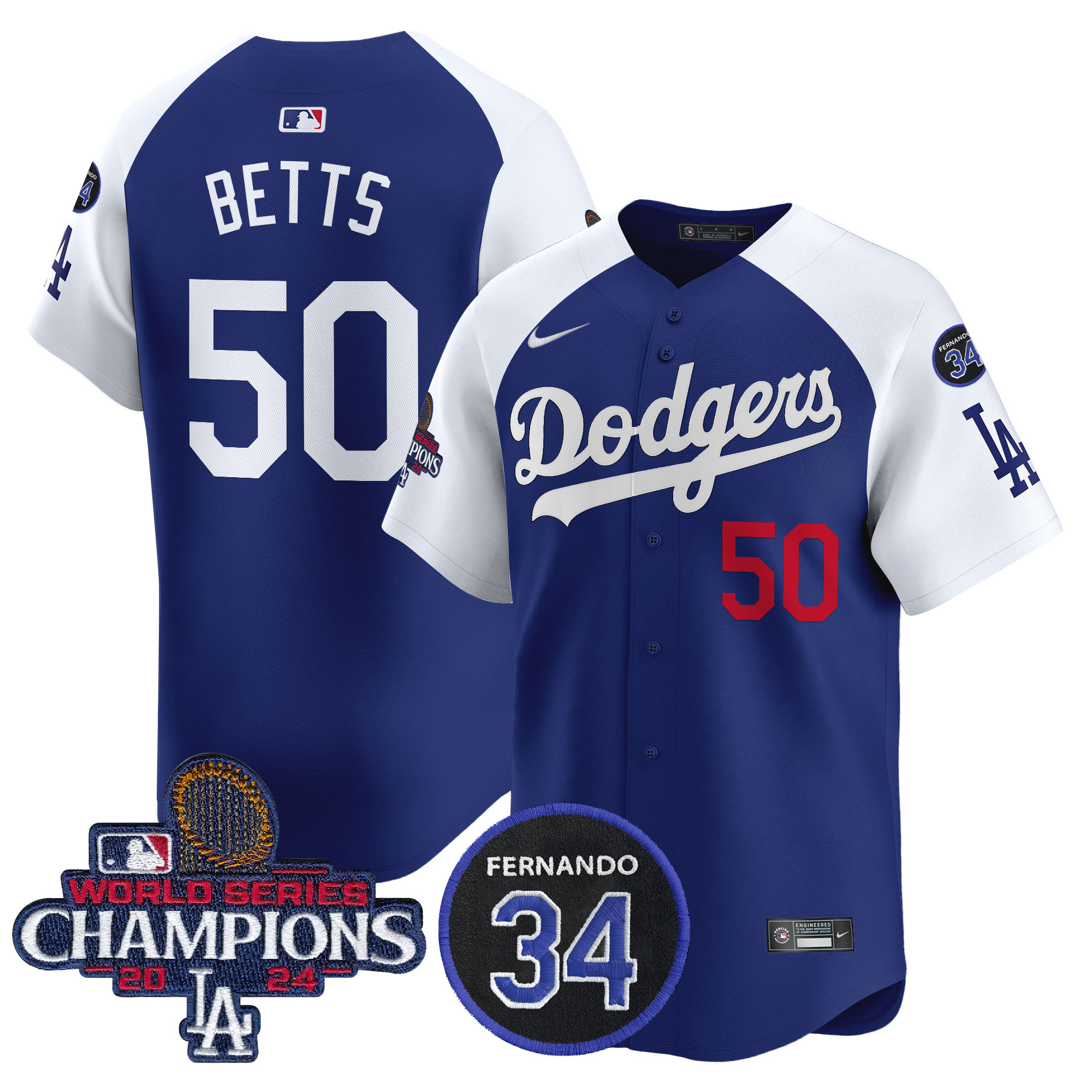 Men’s Dodgers 2024 World Series Champions Patch Vapor Premier Limited Jersey V2 – All Stitched