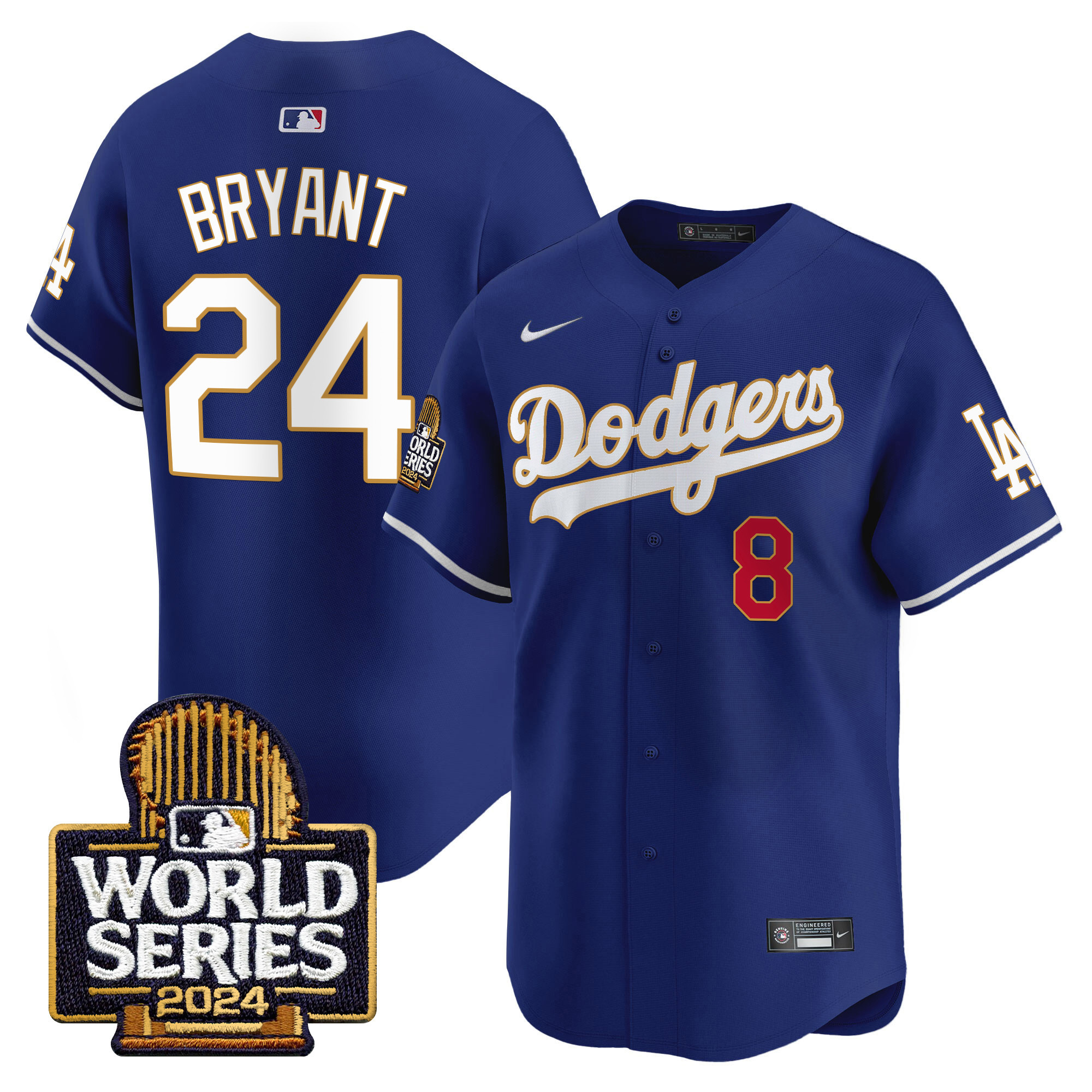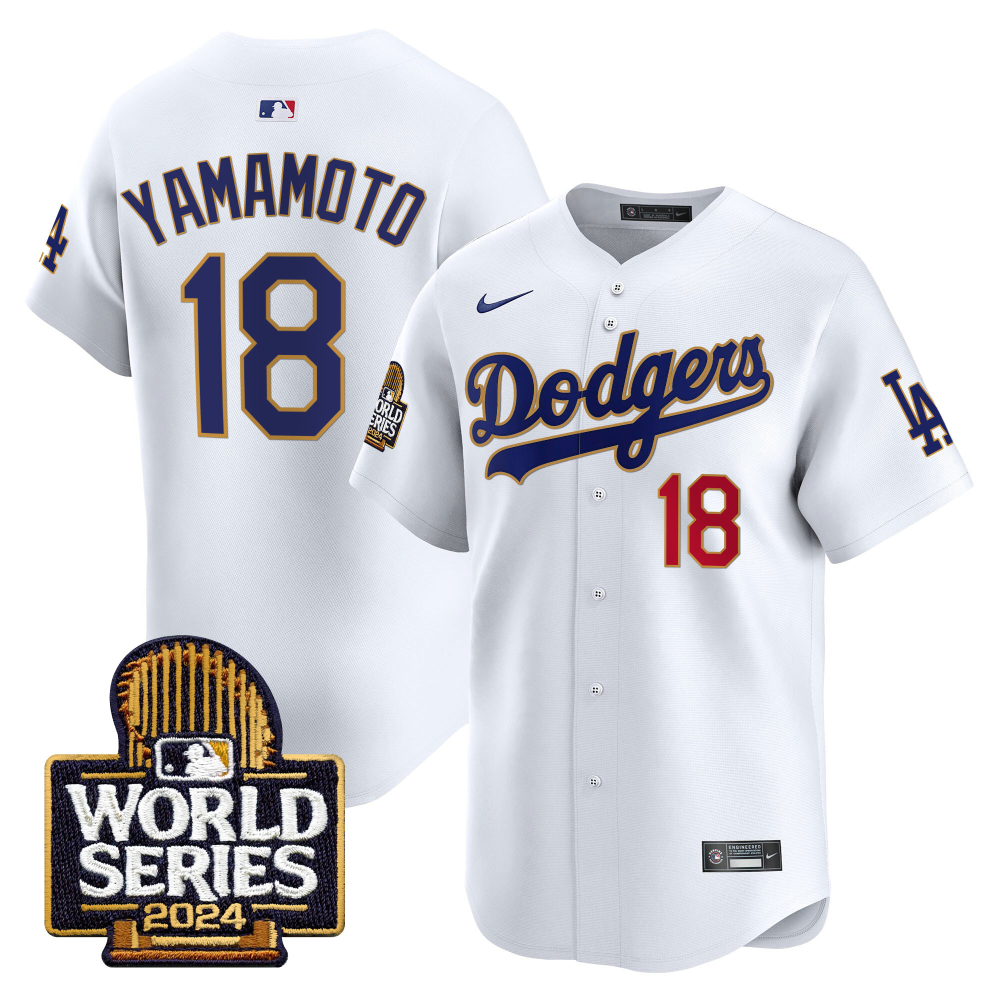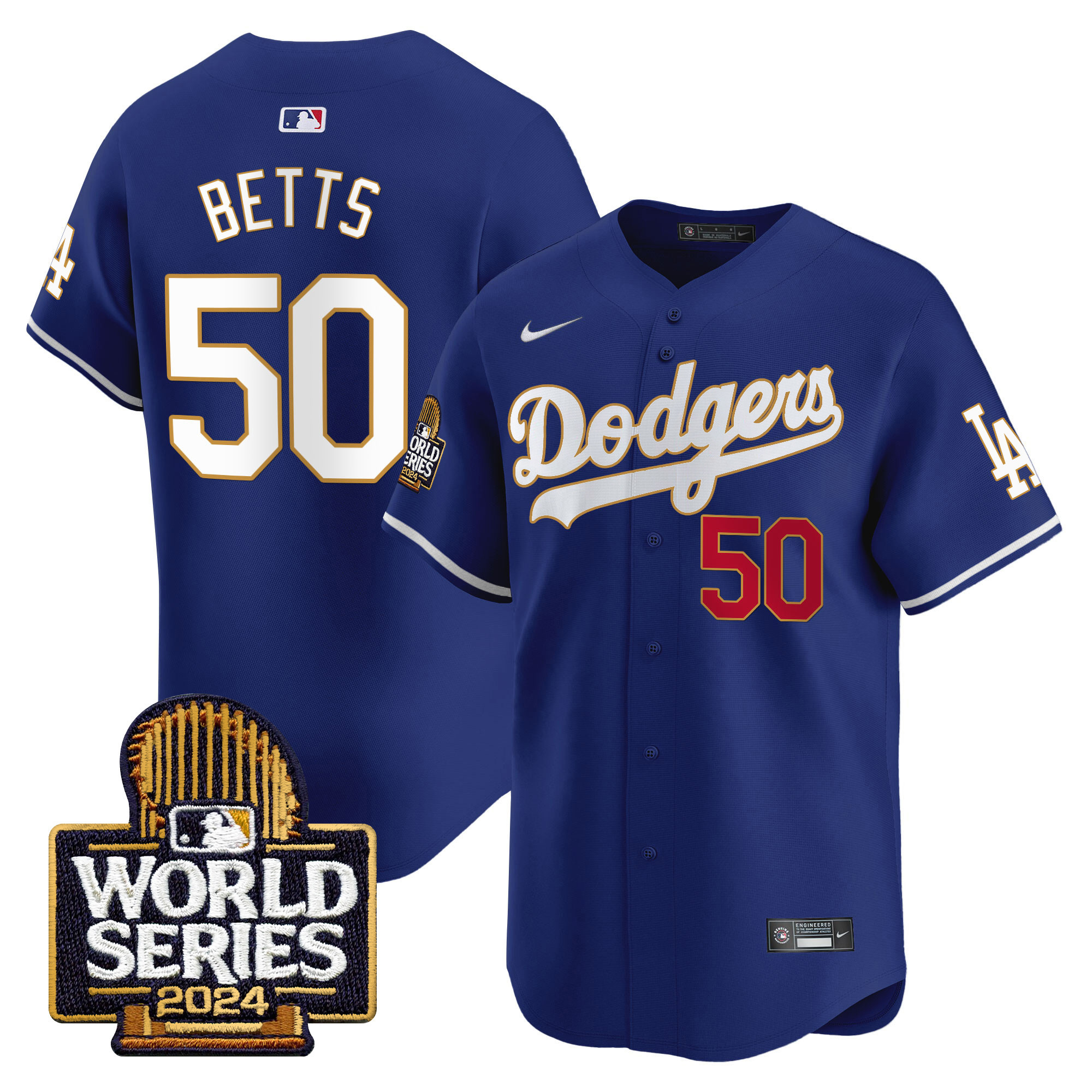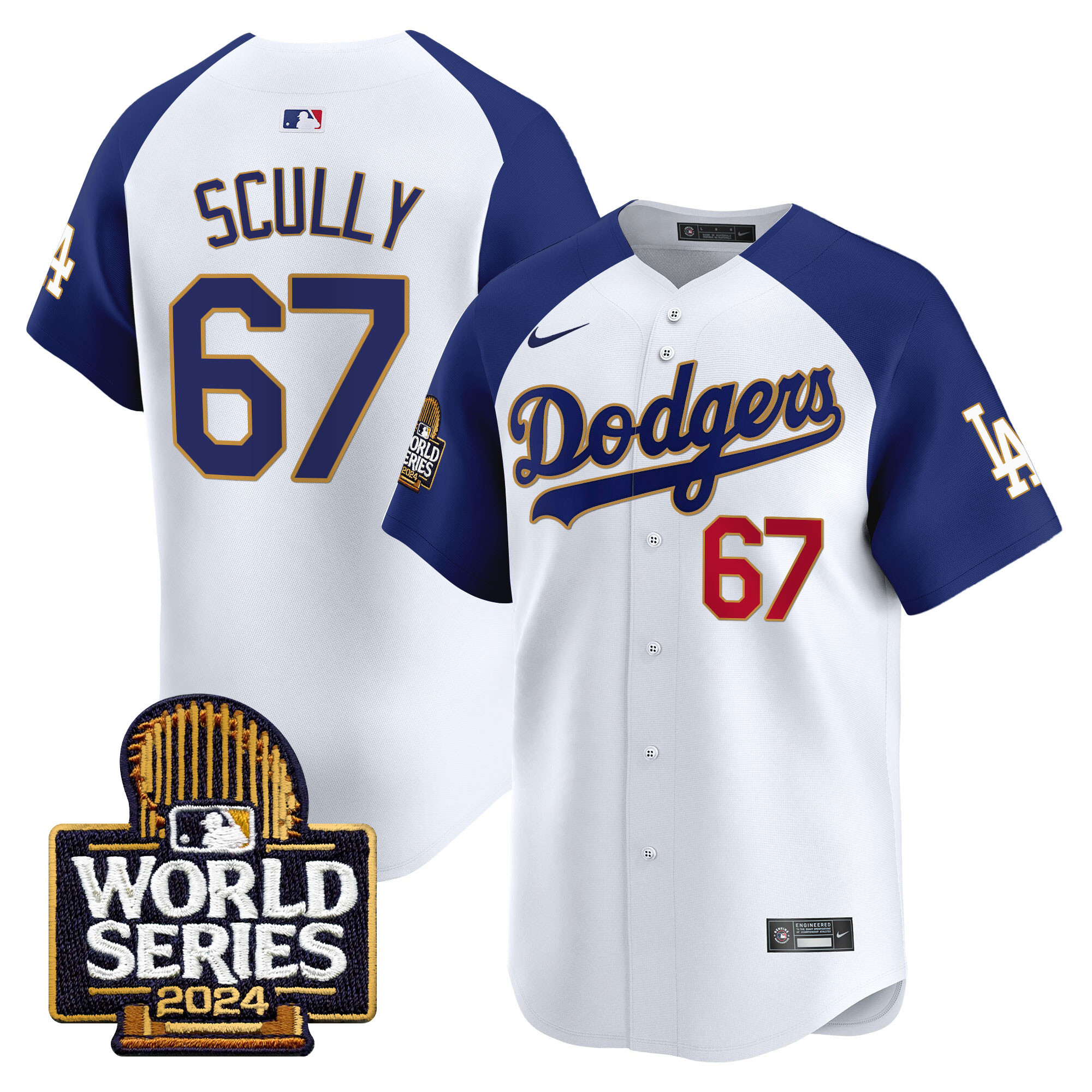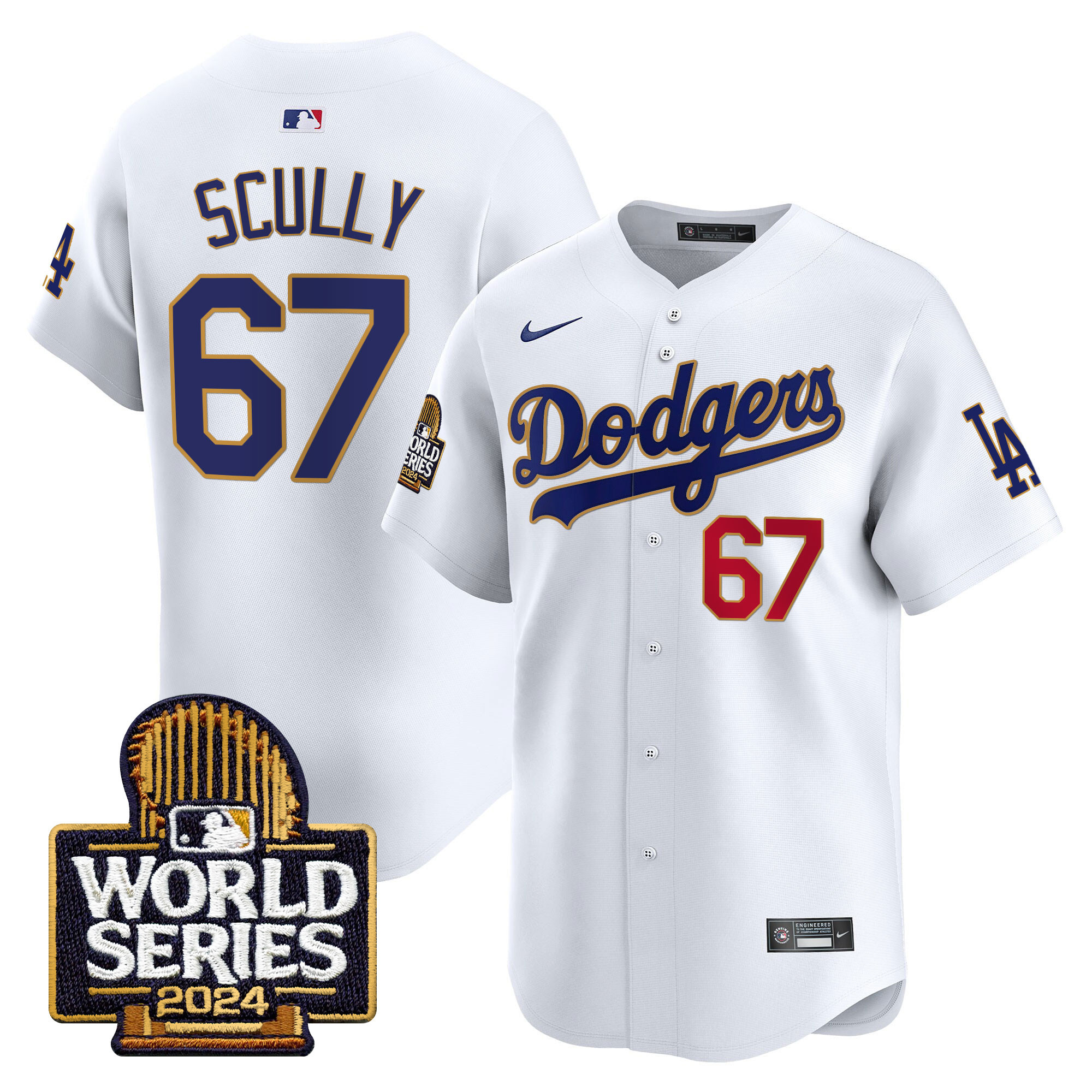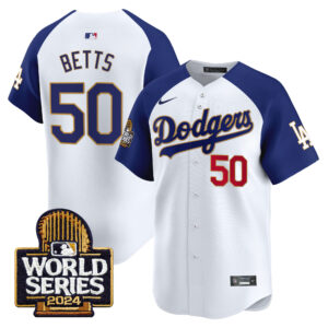 Men’s Dodgers 2024 World Series Gold Trim Vapor Premier Limited Jersey – All Stitched