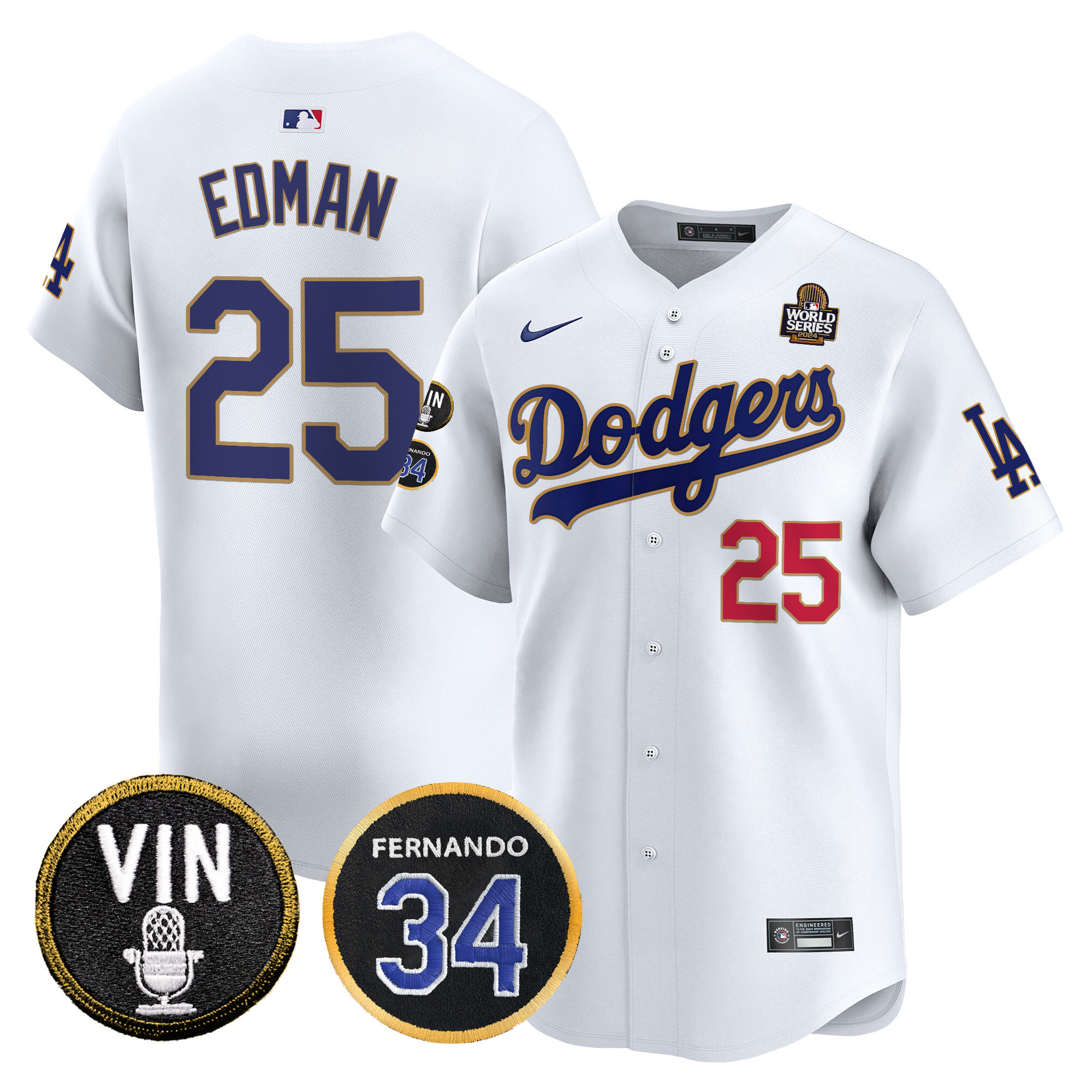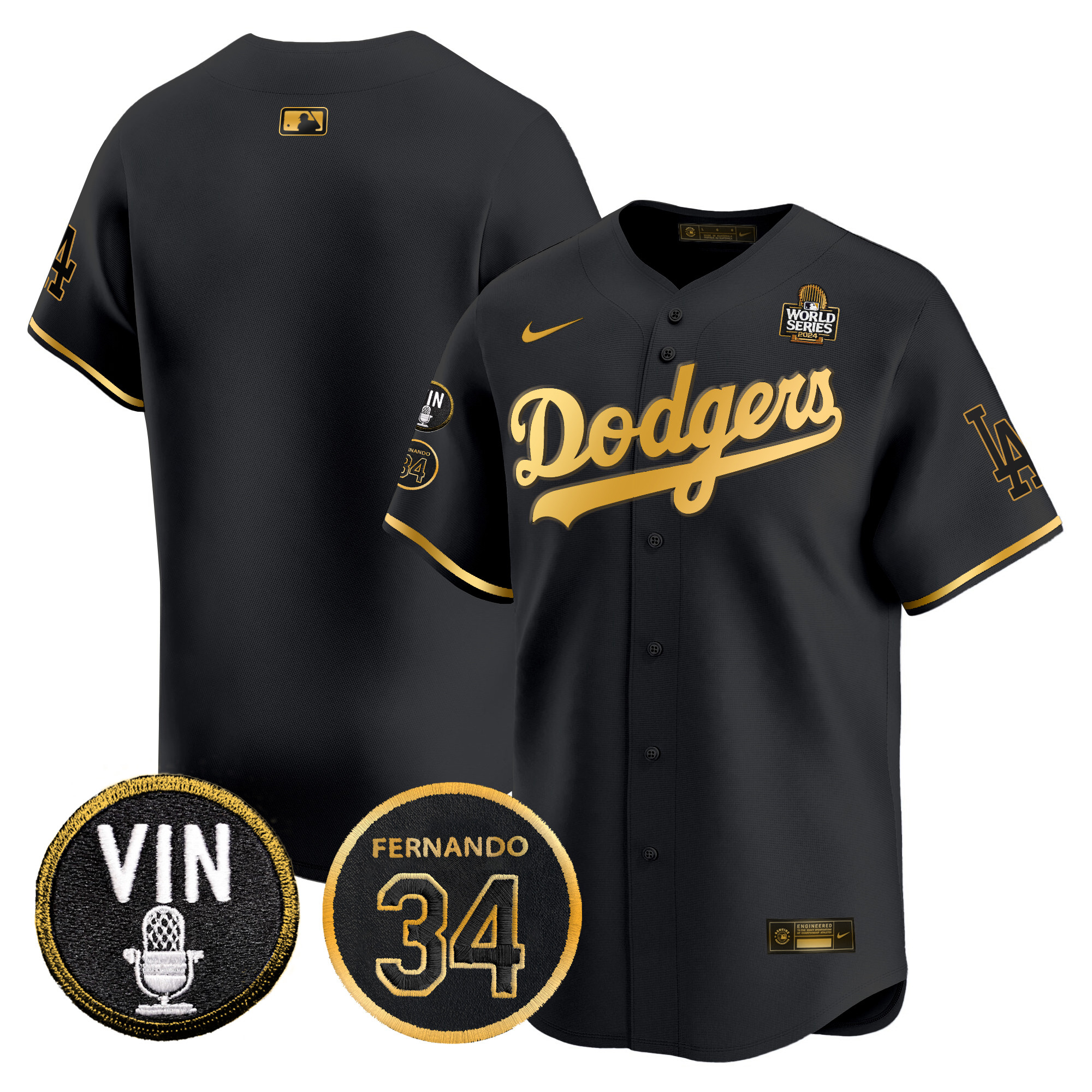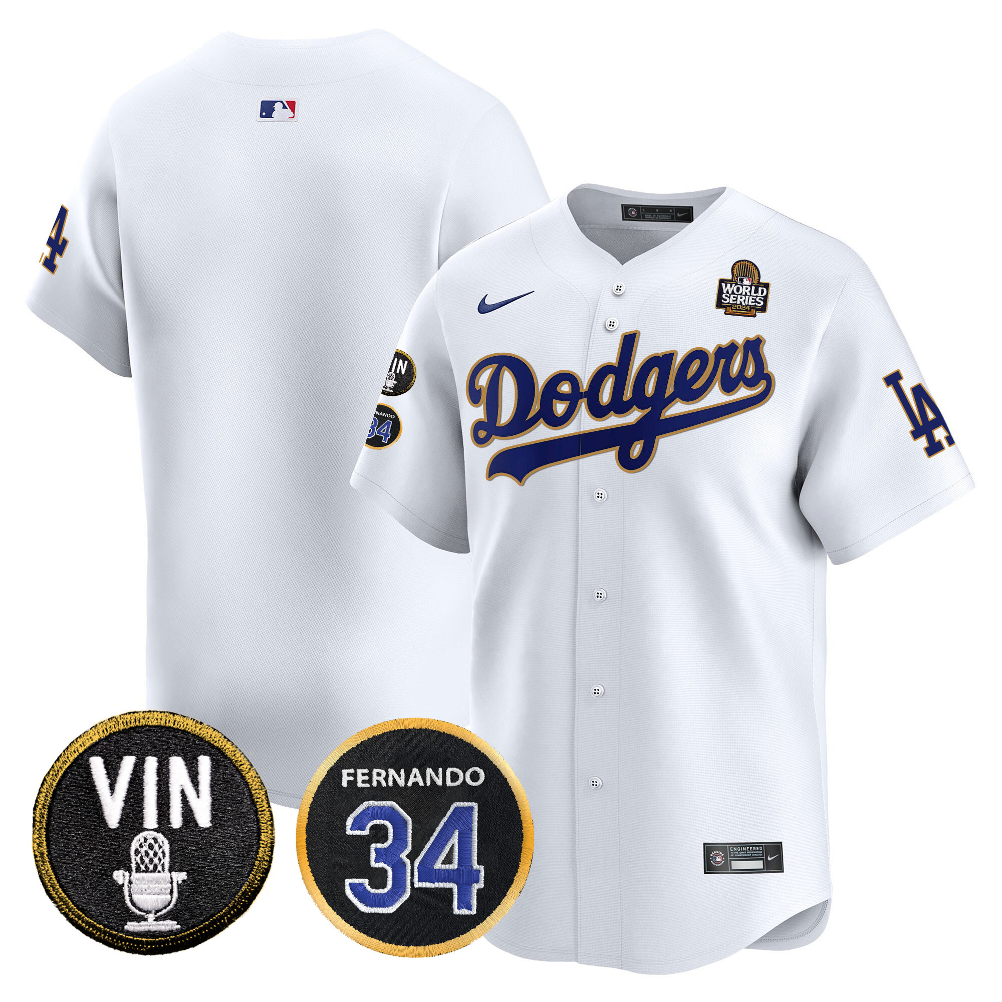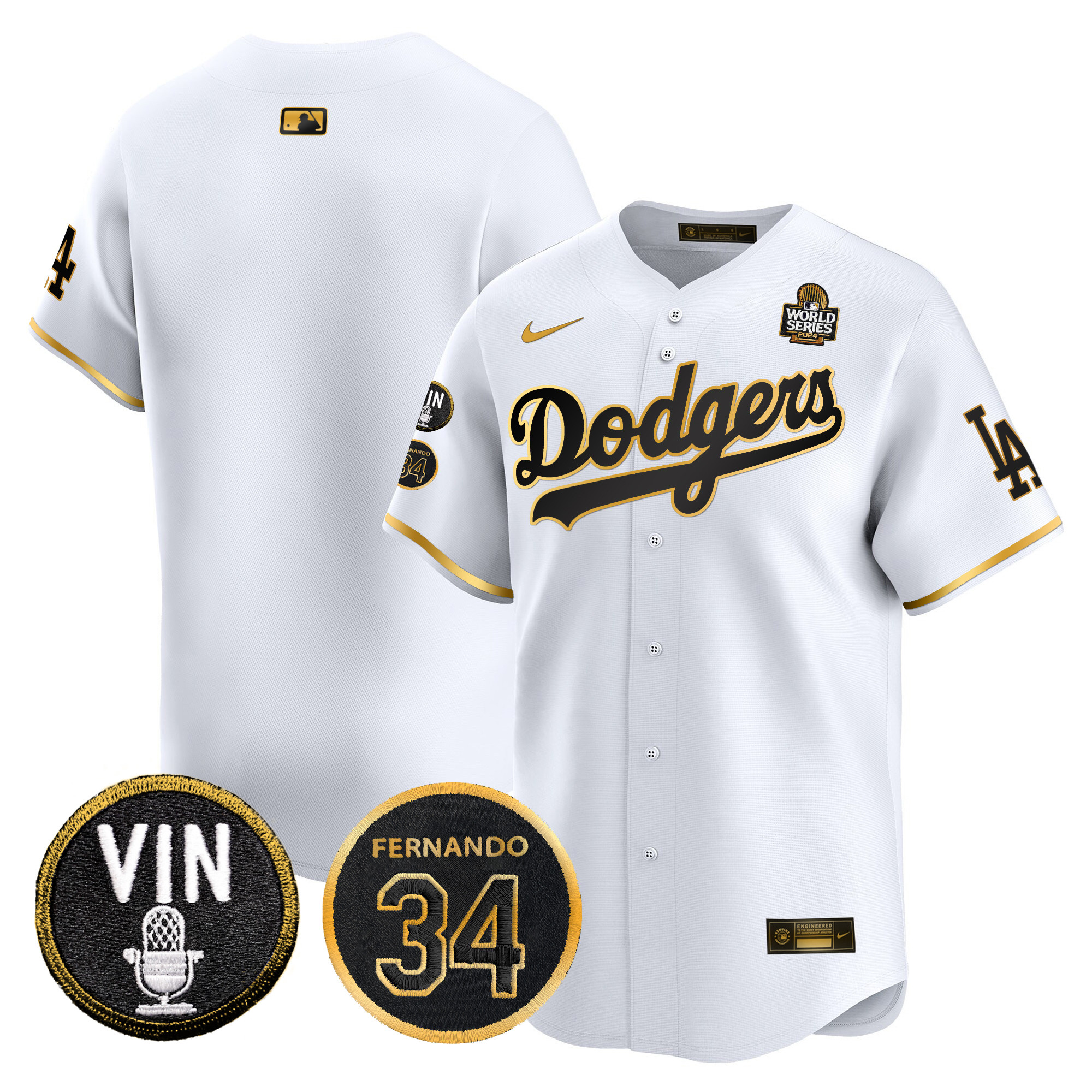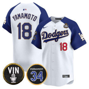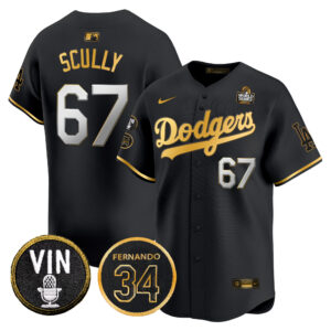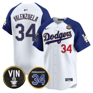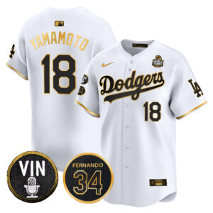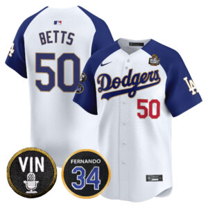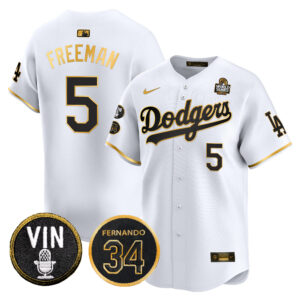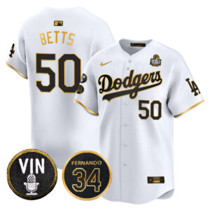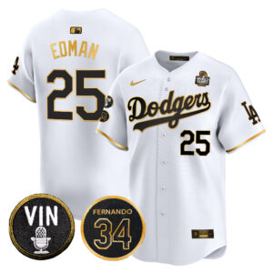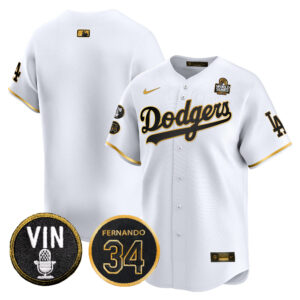 Men’s Dodgers 2024 World Series Gold Trim Vapor Premier Limited Jersey V3 – All Stitched