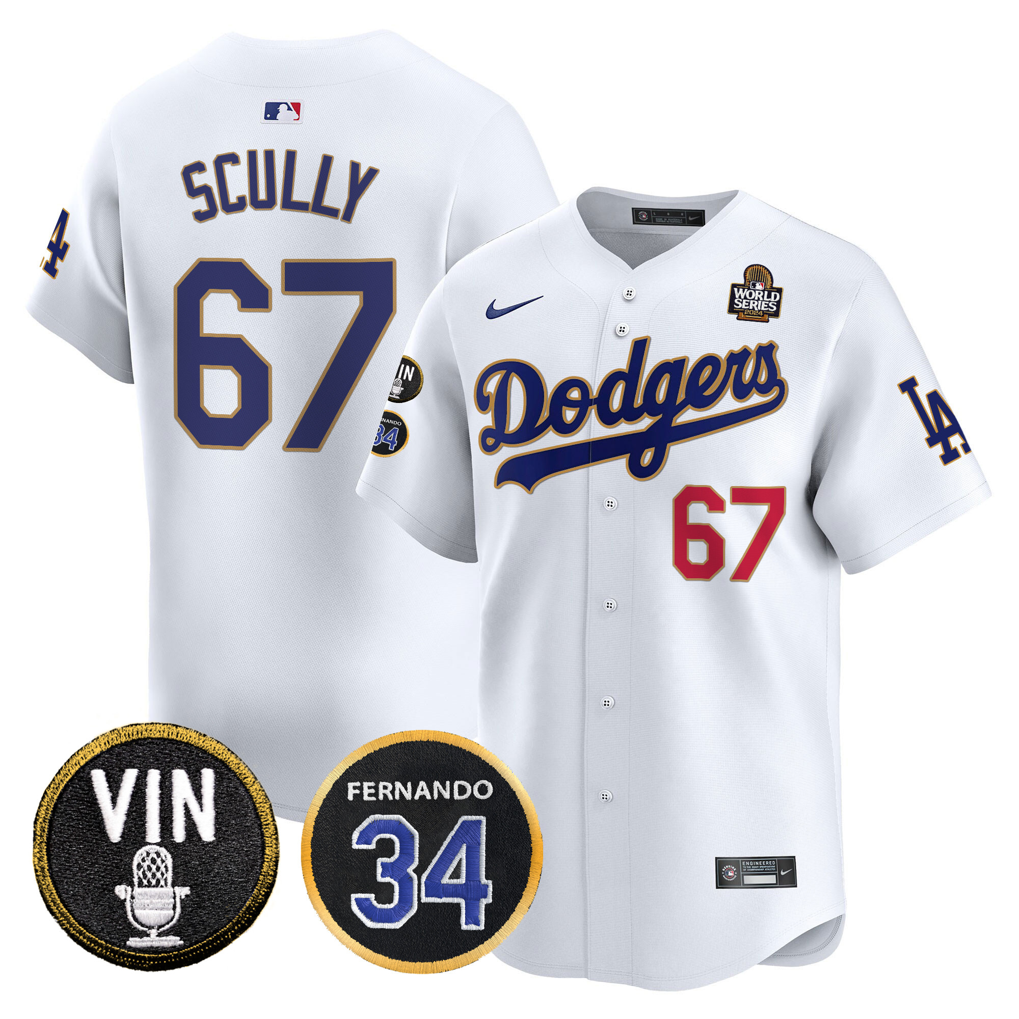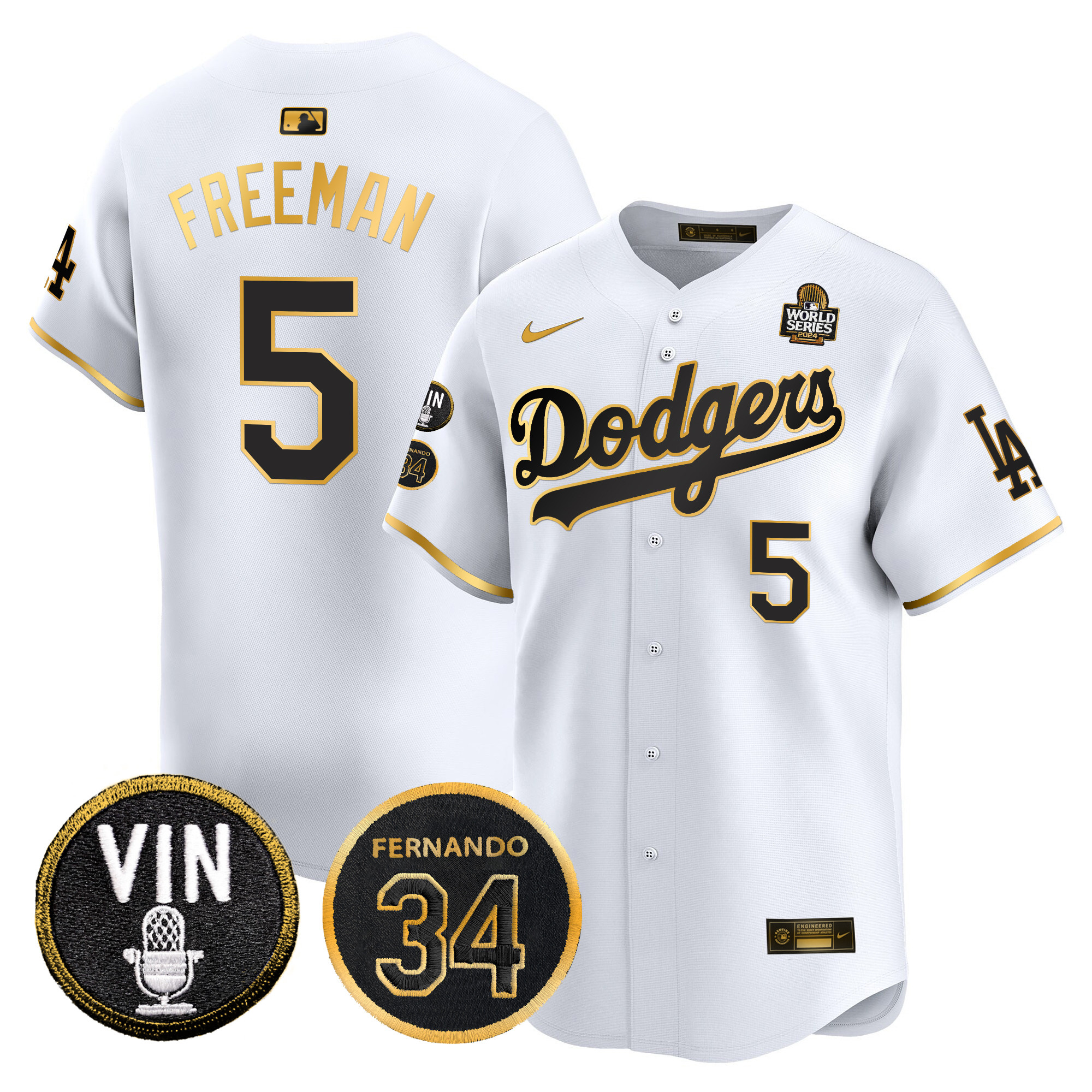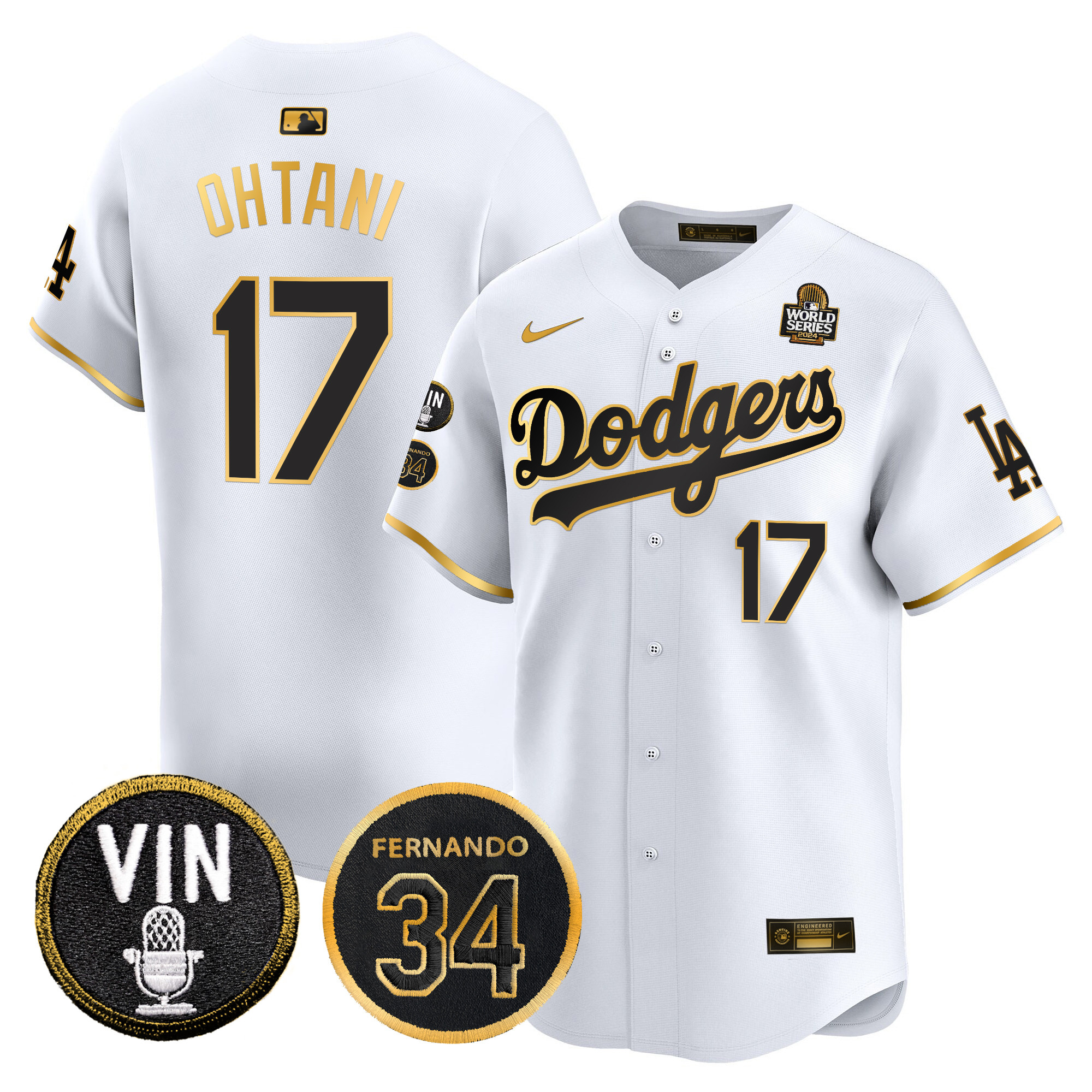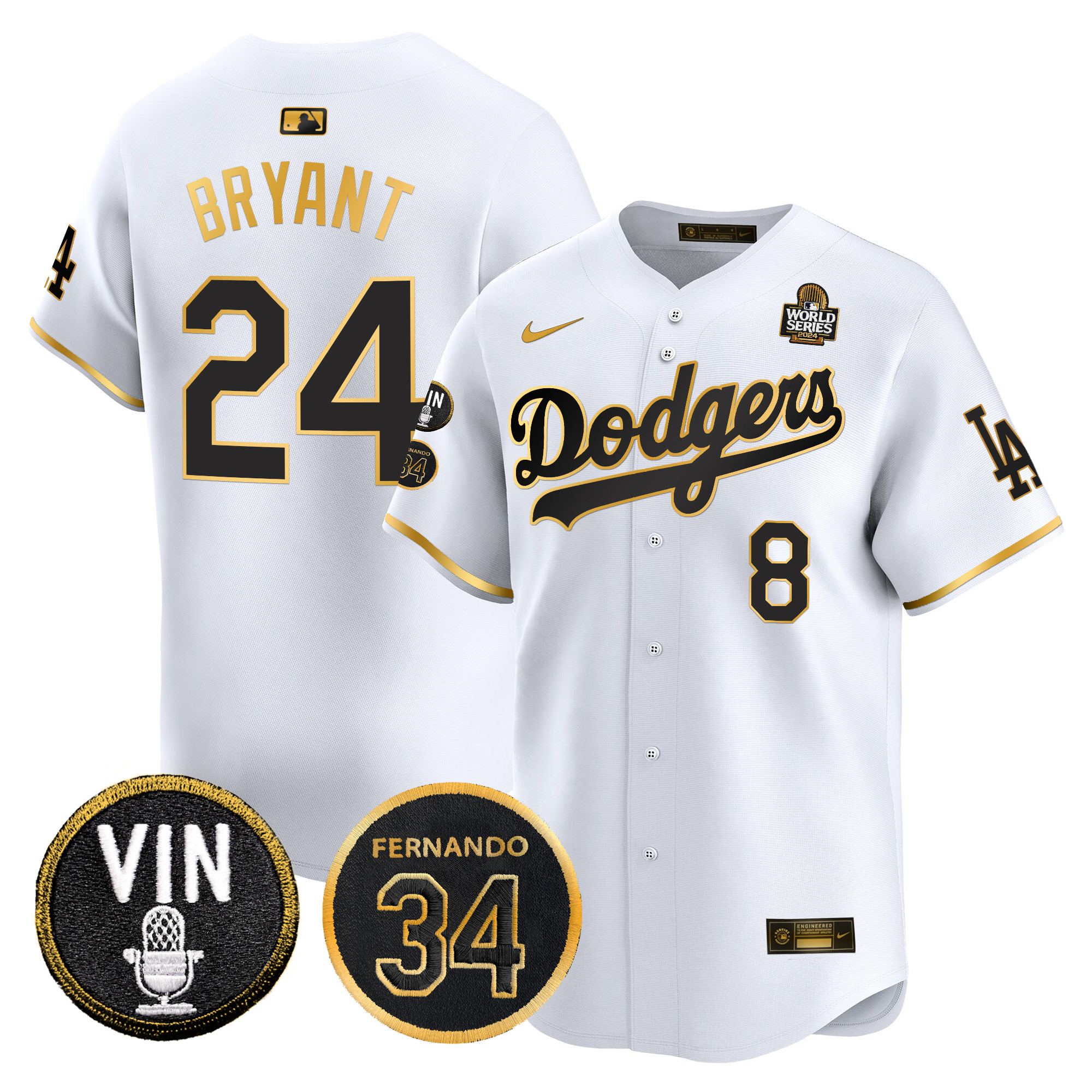Men’s Dodgers 2024 World Series Gold Trim Vapor Premier Limited Jersey V3 – All Stitched
