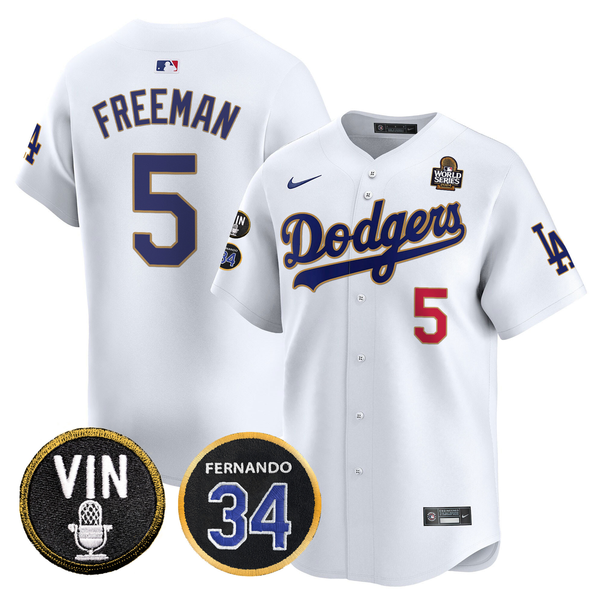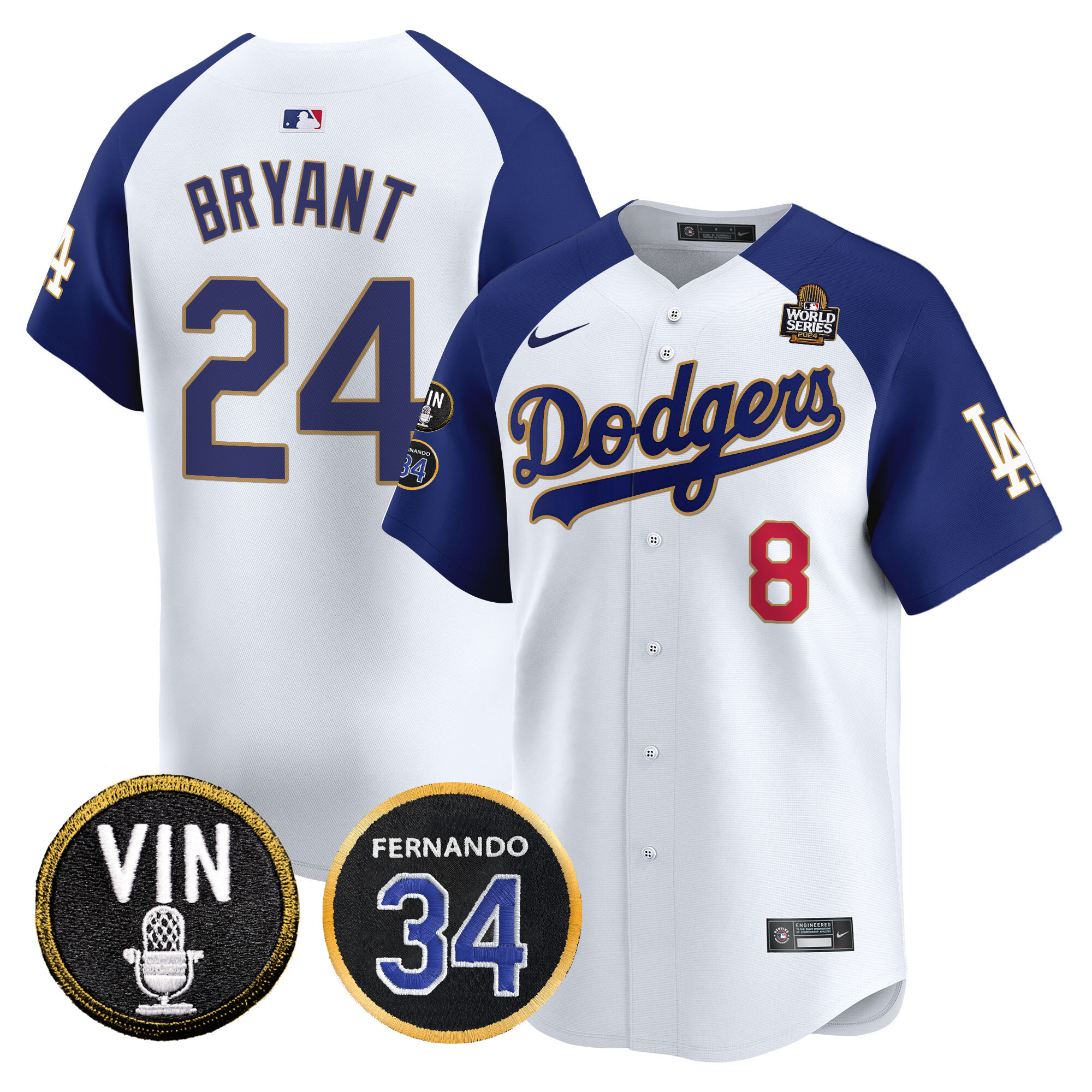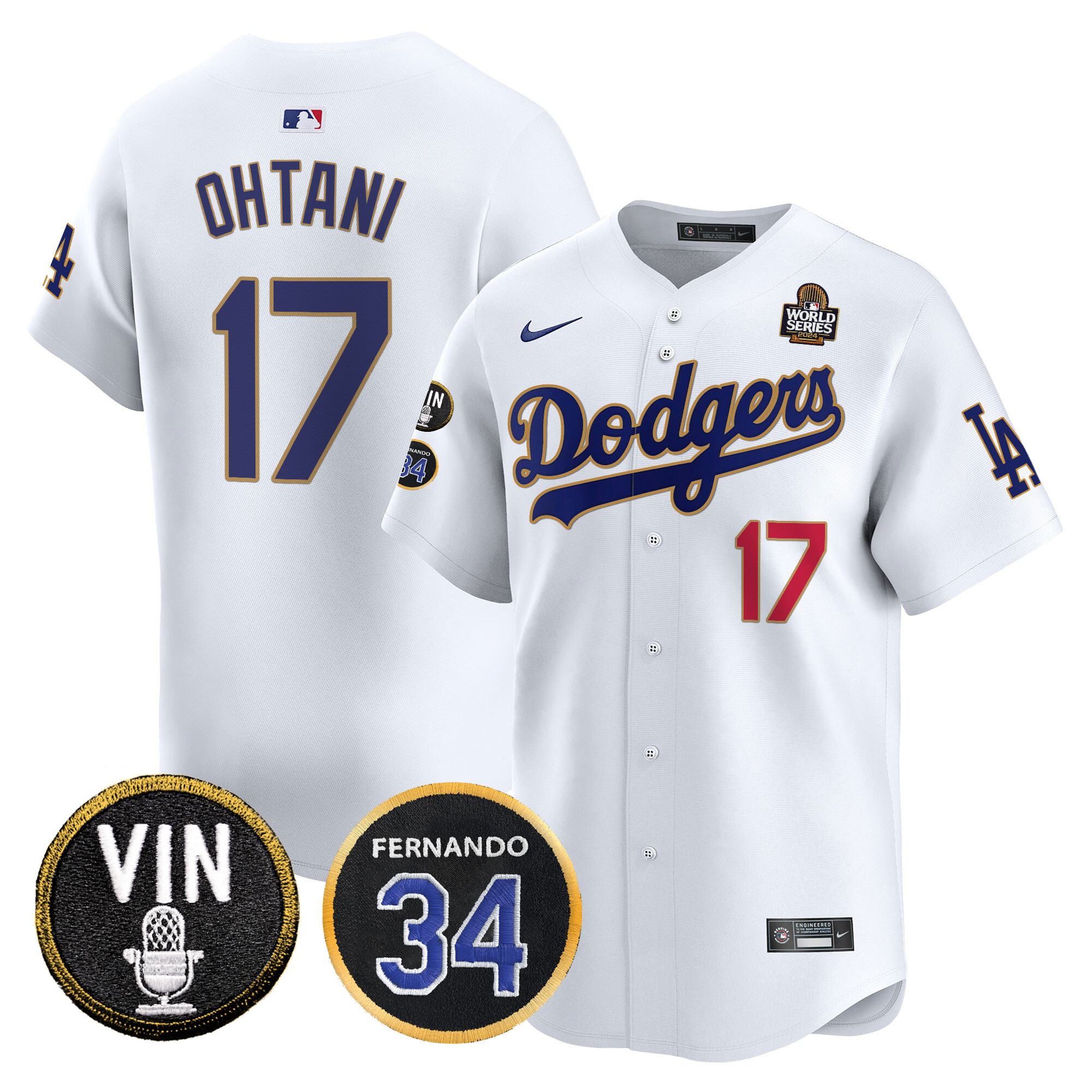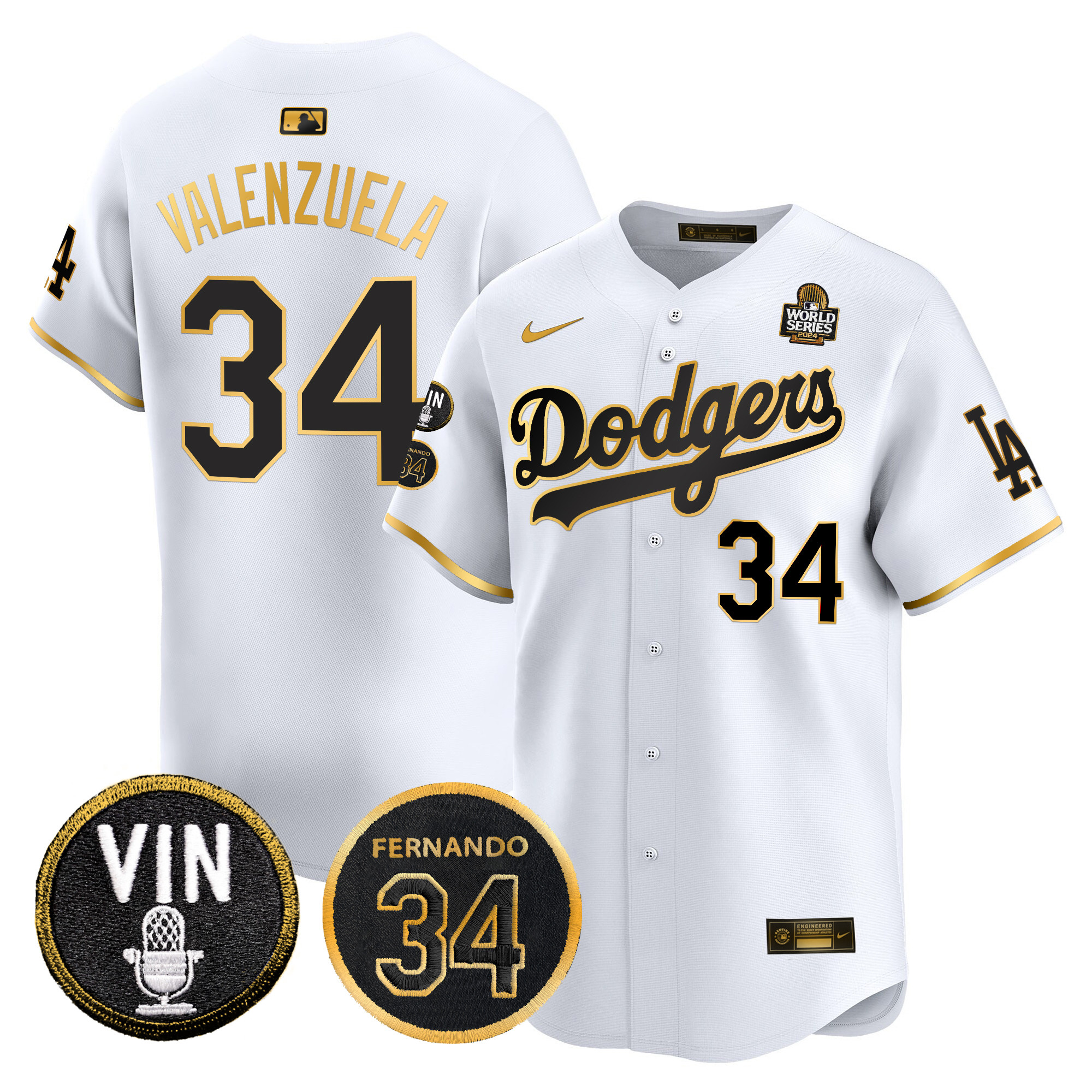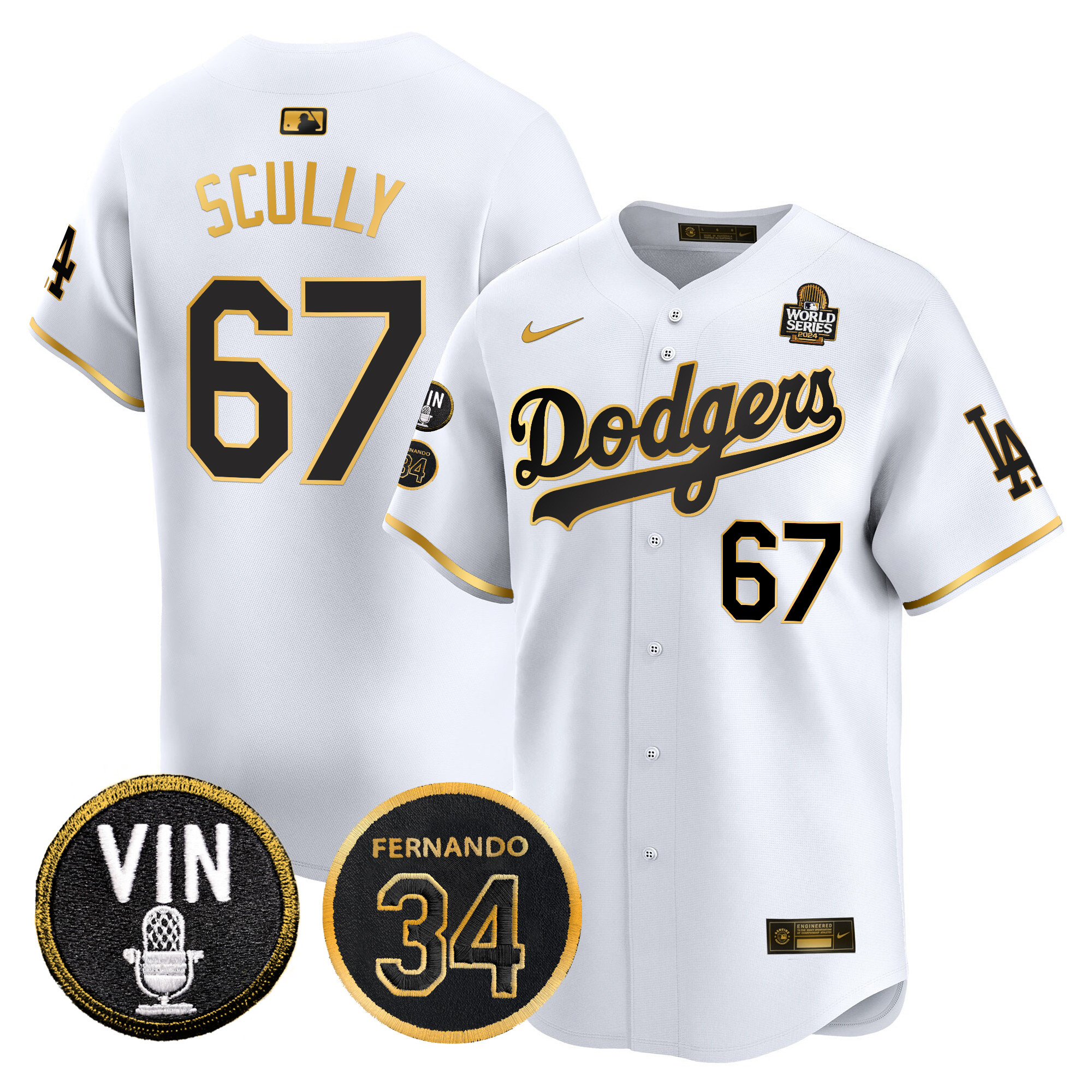 Men’s Dodgers 2024 World Series Gold Trim Vapor Premier Limited Jersey V3 – All Stitched